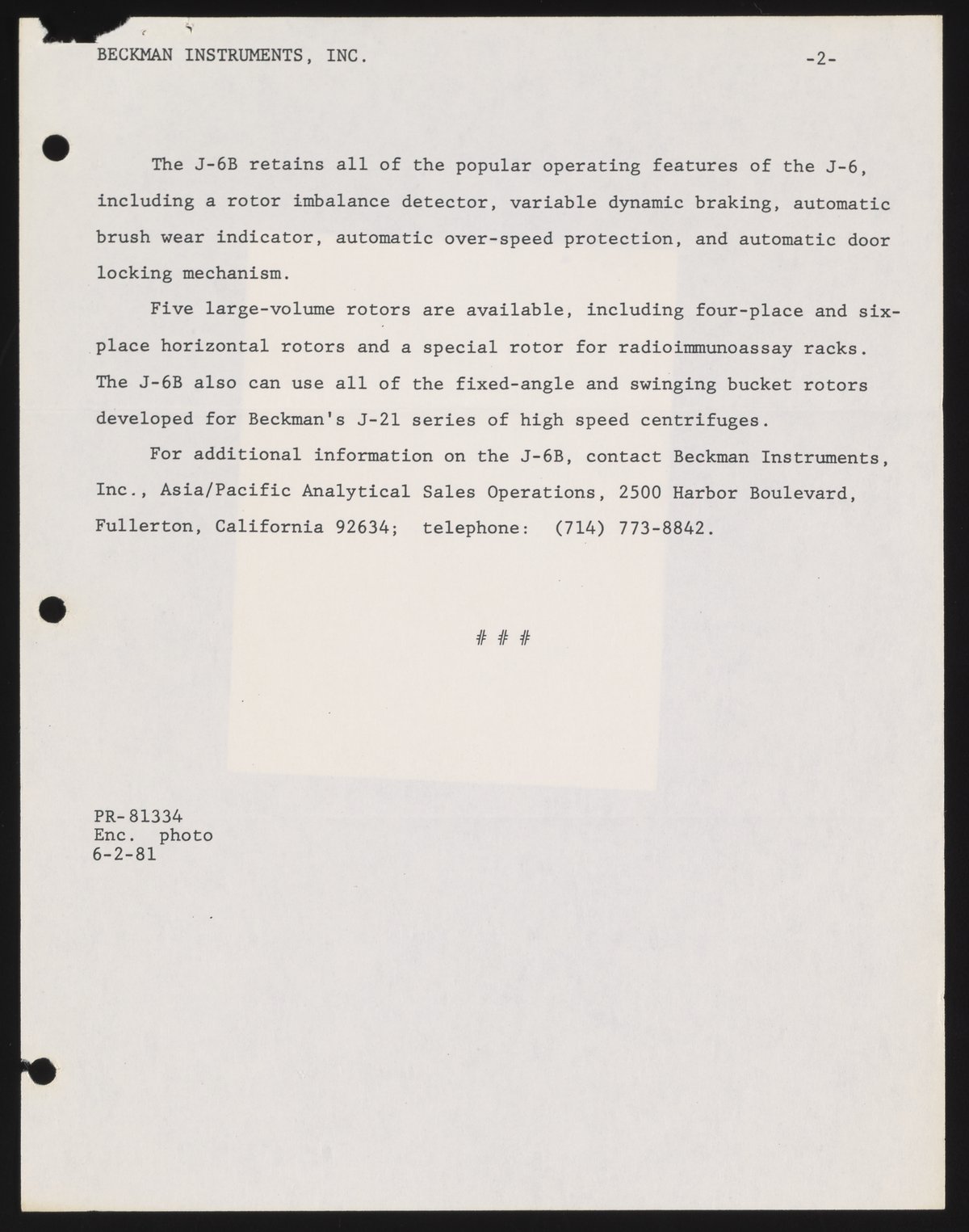 Small JPG1200 x 1523px — 222 KBFull-sized JPG2768 x 3514px — 880 KBOriginal fileTIFF — 2768 x 3514px — 27.9 MBThe press release touts the virtues of the J-6 refrigerated ultracentrifuge and the quieter model, the J-6B.