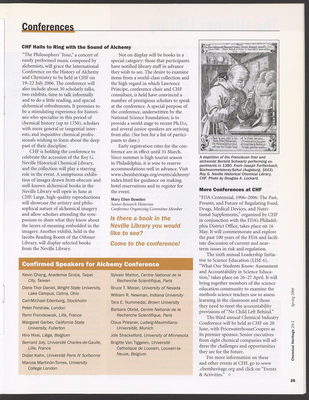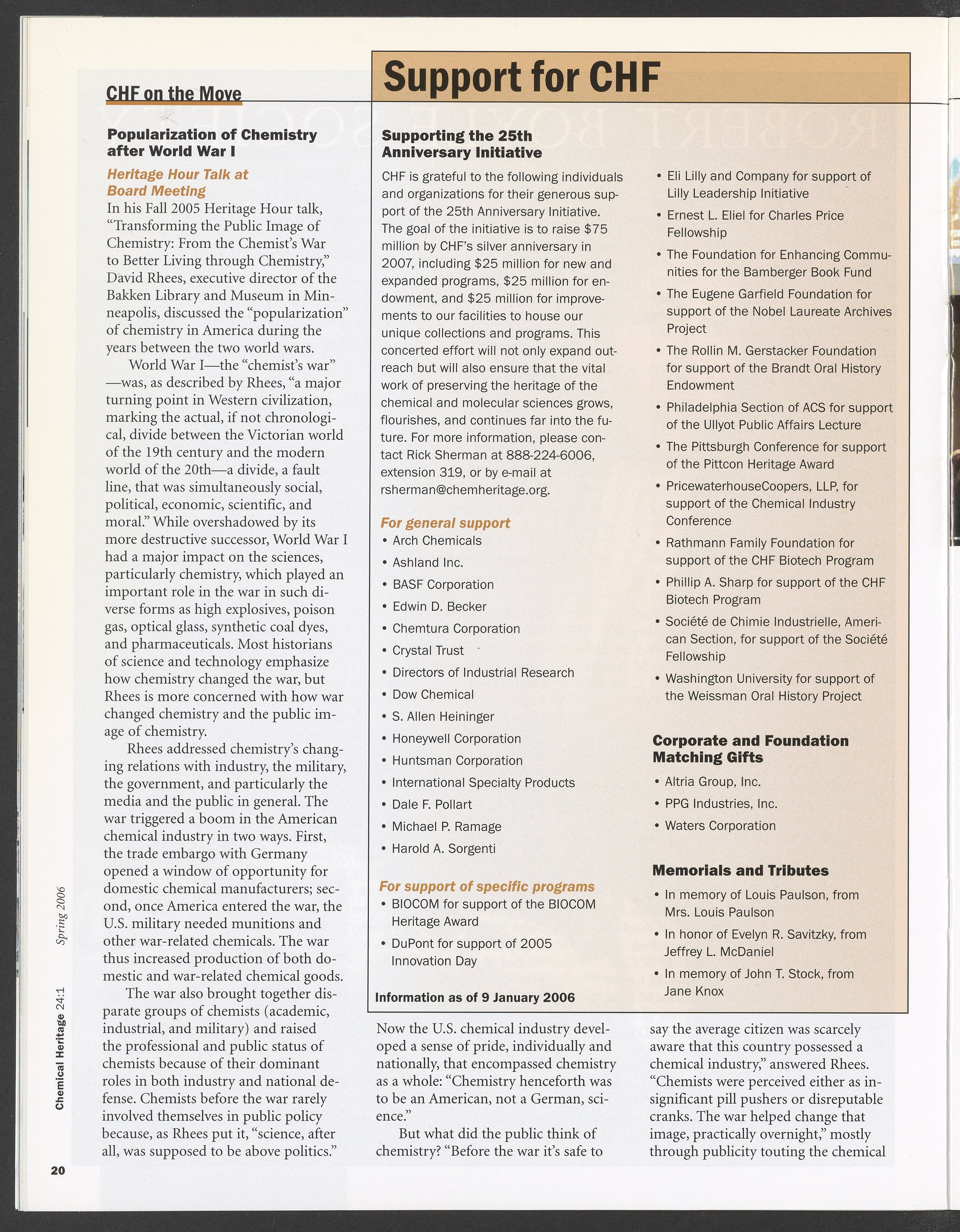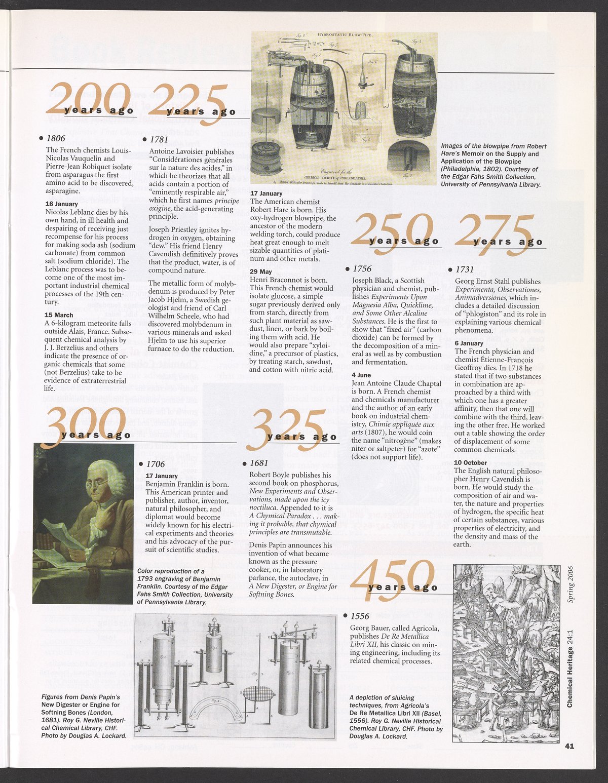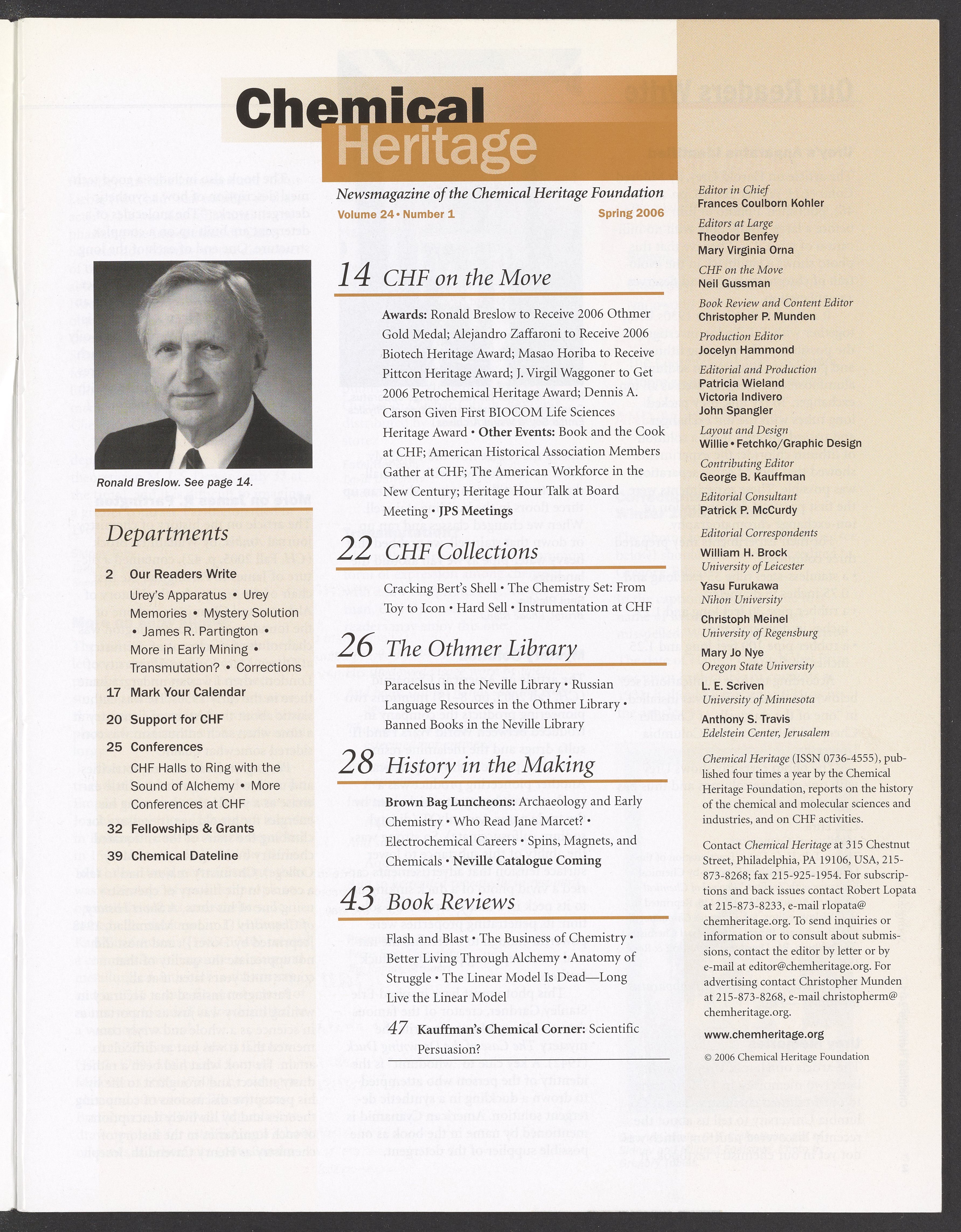 “Chemical Heritage, Volume 24 Number 1.” Philadelphia, Pennsylvania: Chemical Heritage Foundation, 2006. 099C001. Science History Institute. Philadelphia. https://digital.sciencehistory.org/works/bhh3qki.