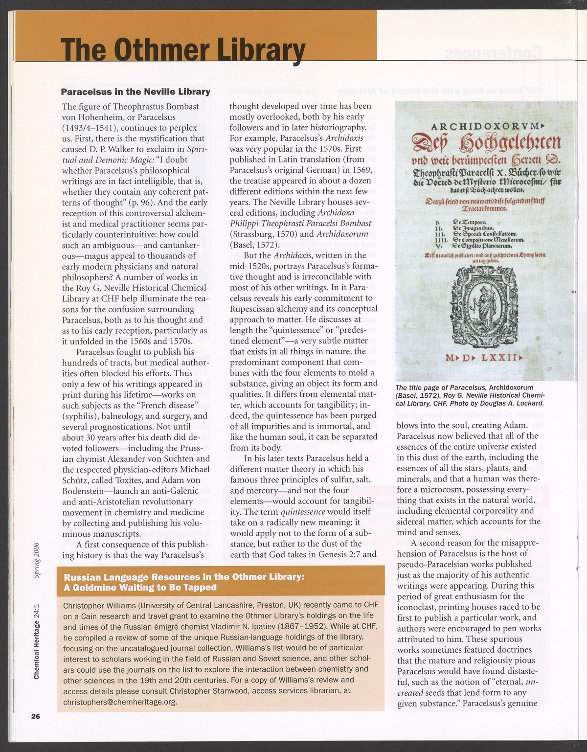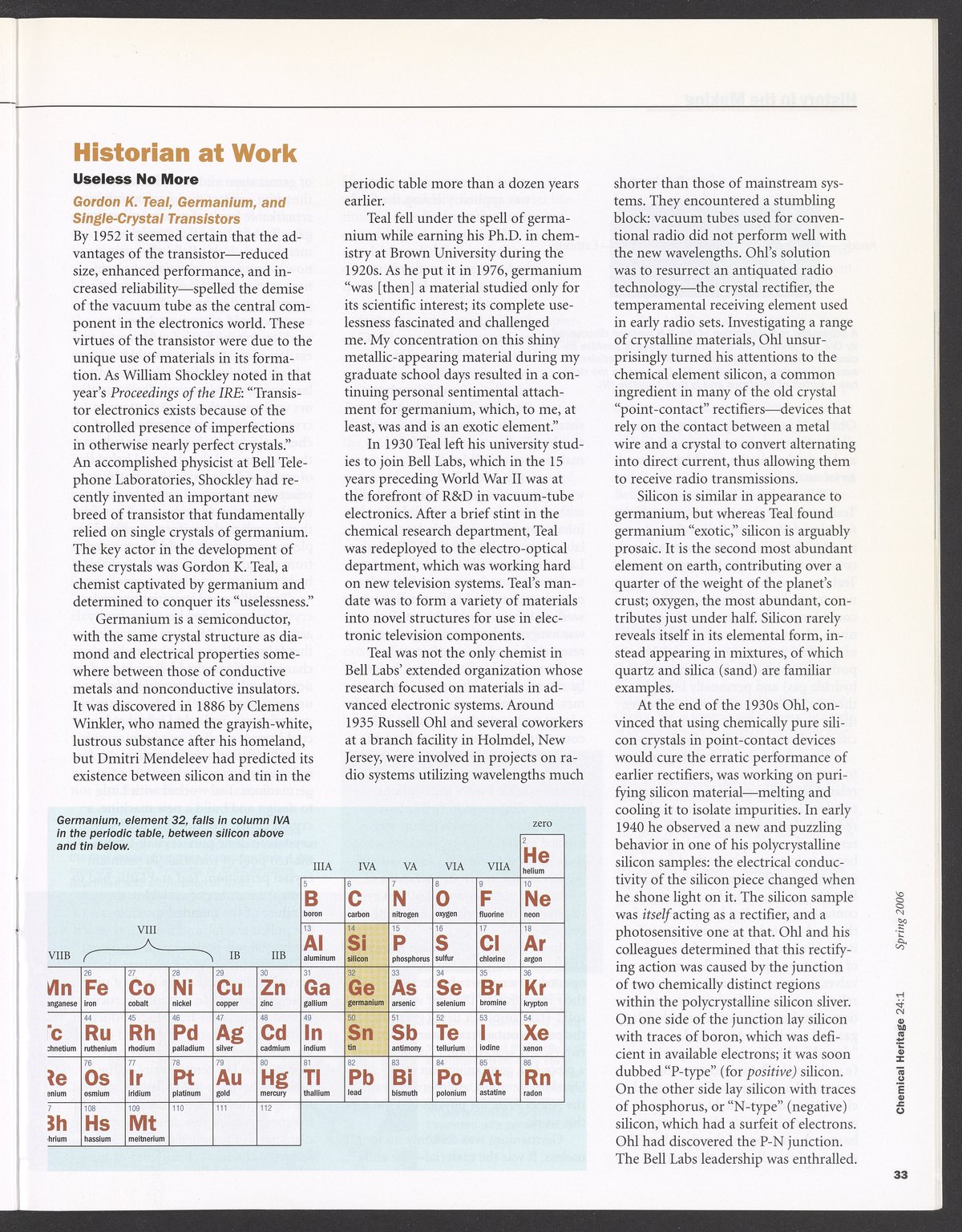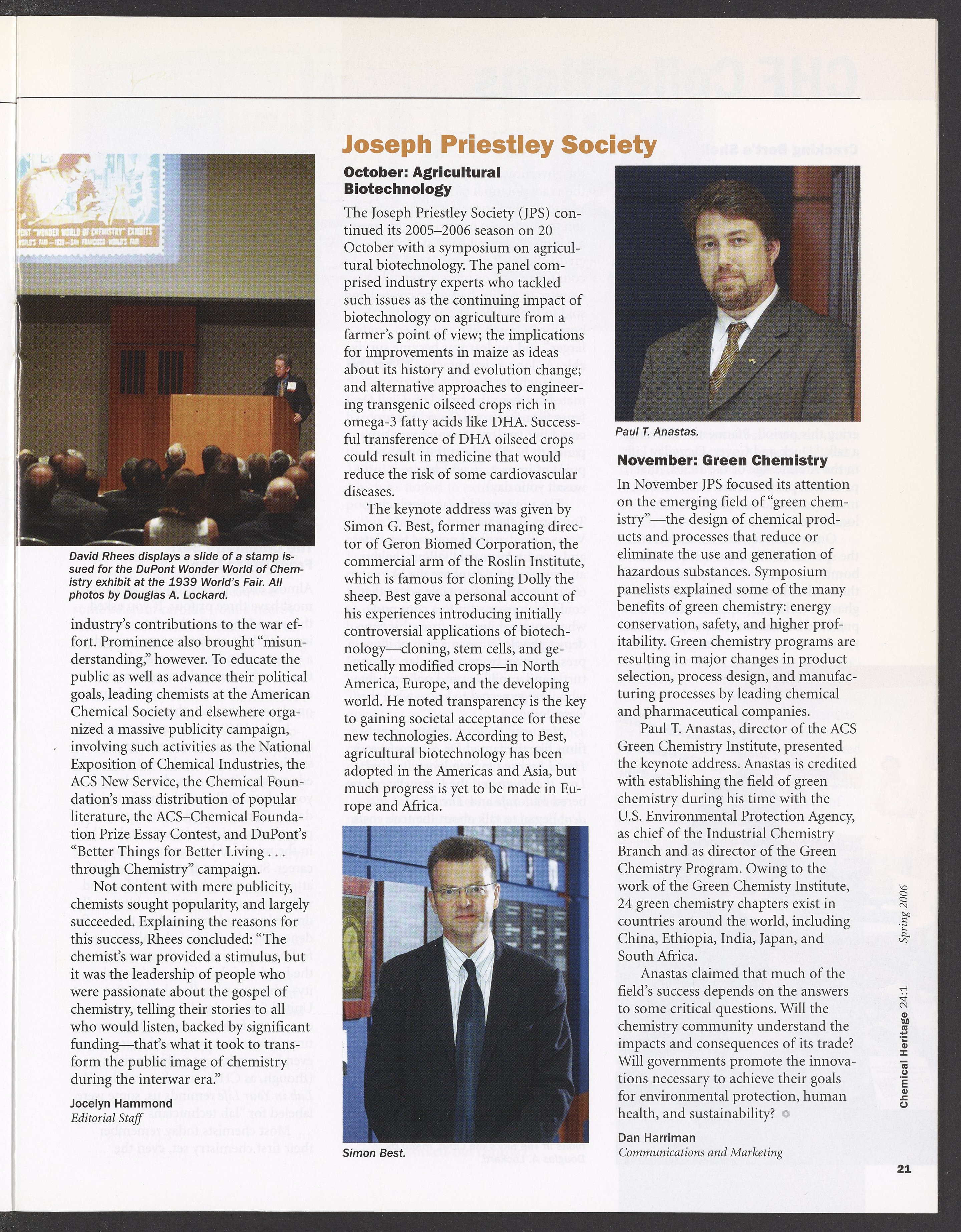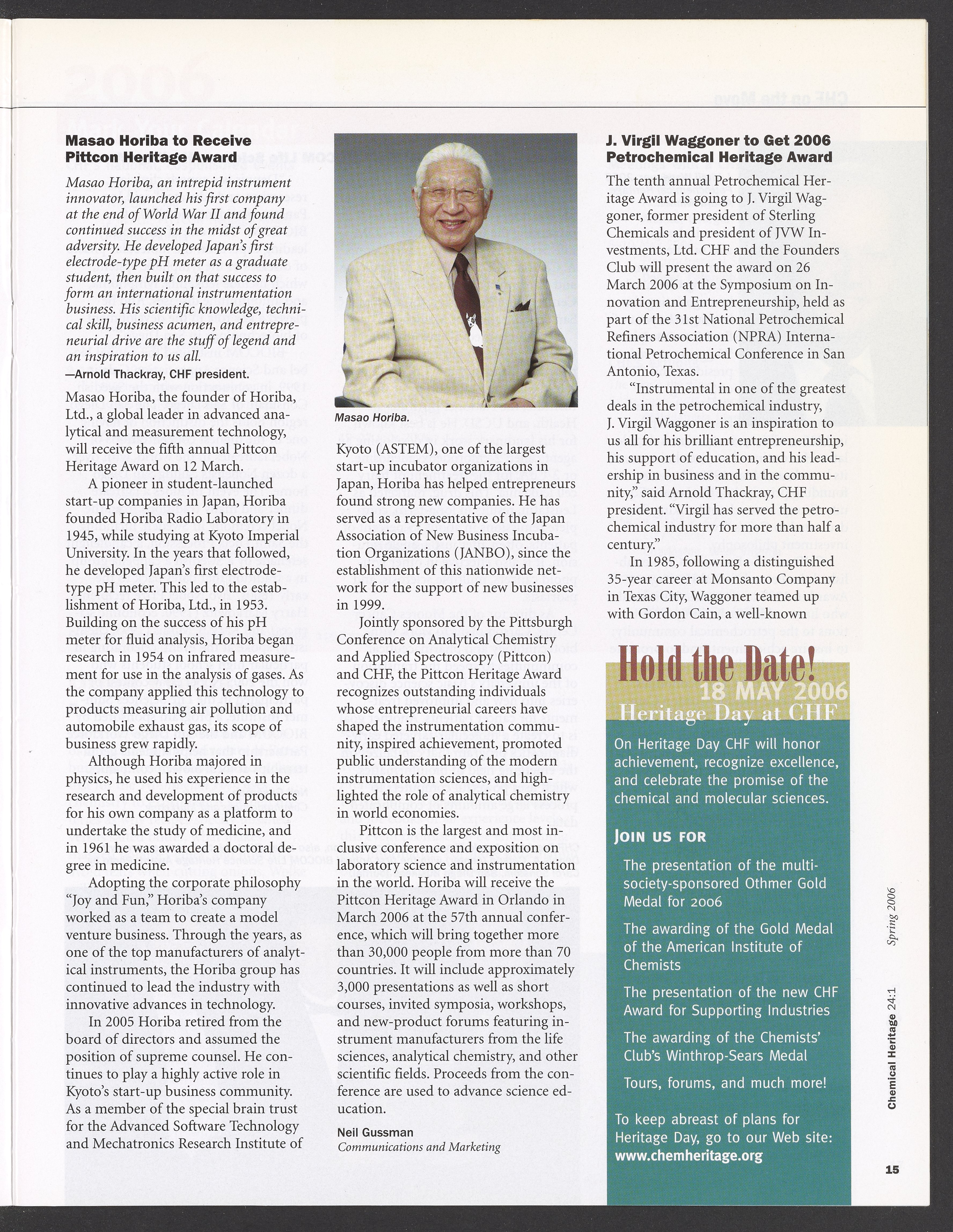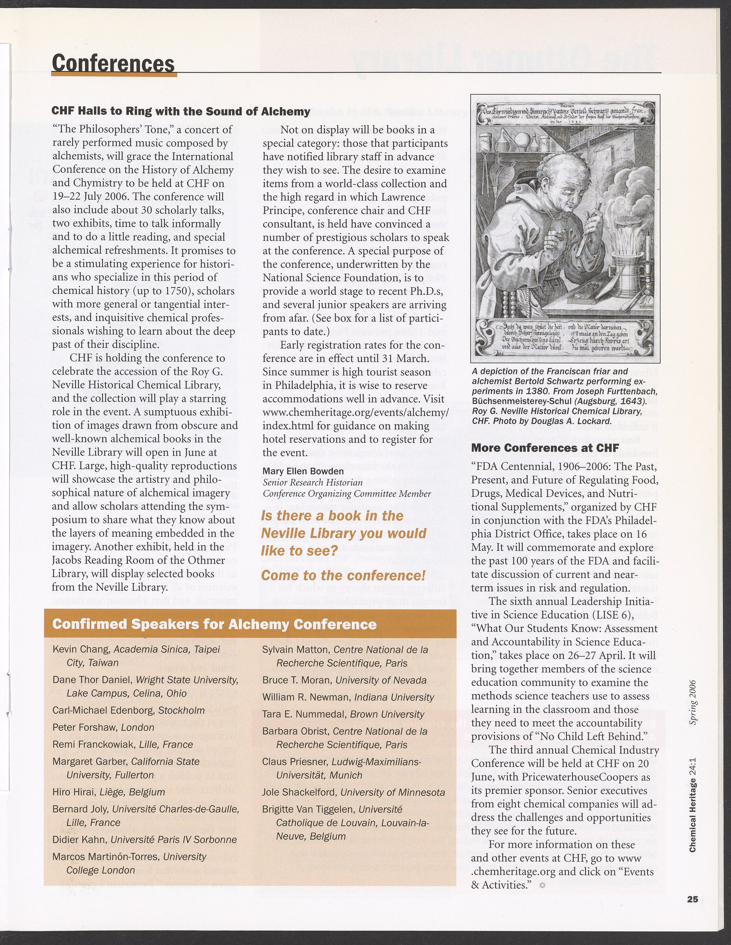 “Chemical Heritage, Volume 24 Number 1.” Philadelphia, Pennsylvania: Chemical Heritage Foundation, 2006. 099C001. Science History Institute. Philadelphia. https://digital.sciencehistory.org/works/bhh3qki.