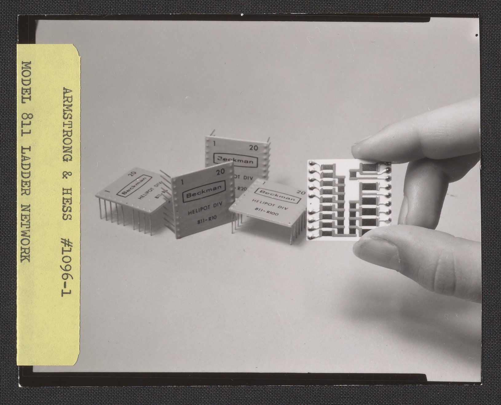 Armstrong & Hess. “Hand Holding a Helipot Model 811 Binary Ladder Network,” August 1967. Beckman Historical Collection, Box 85. Science History Institute. Philadelphia. https://digital.sciencehistory.org/works/bk128b24x.