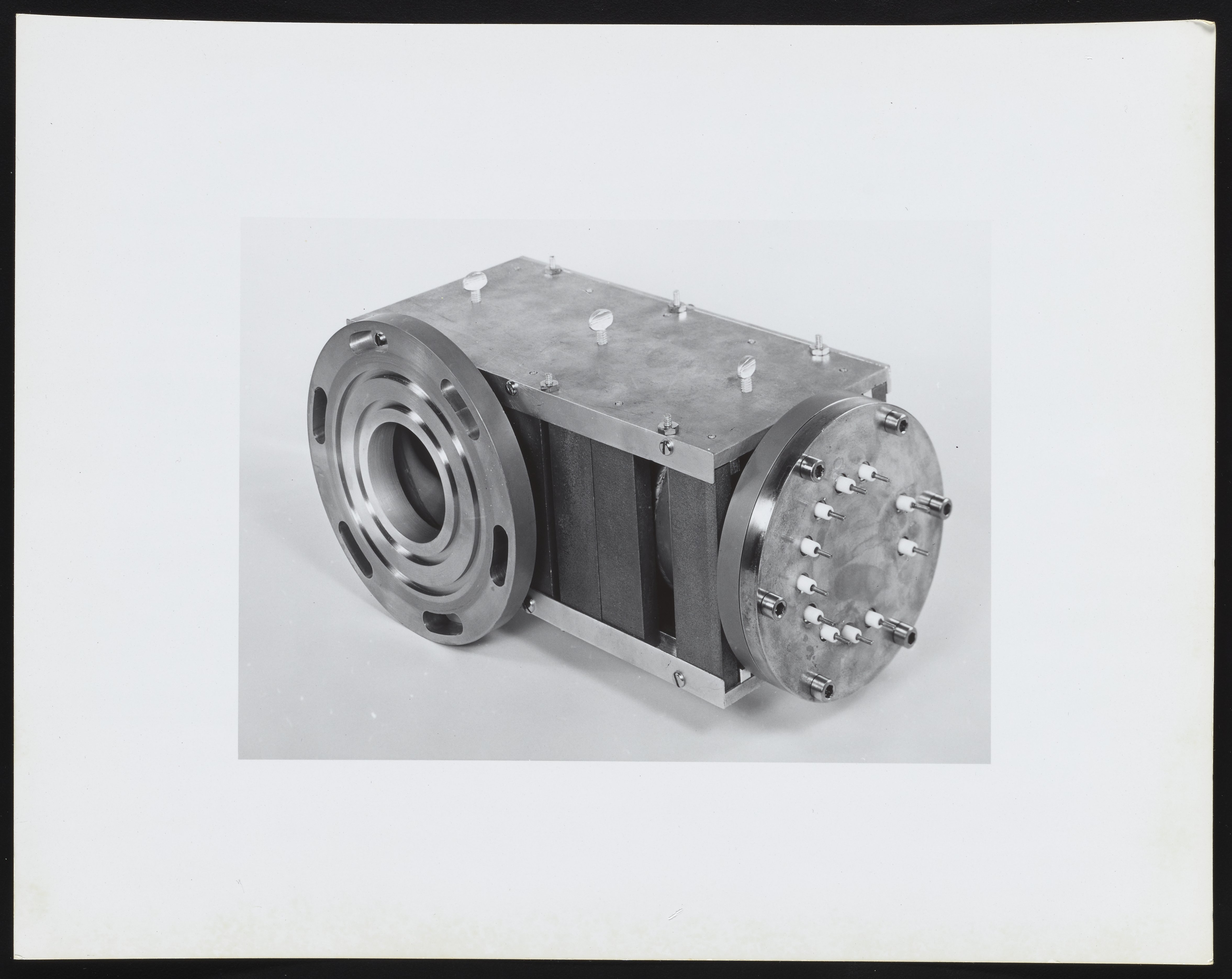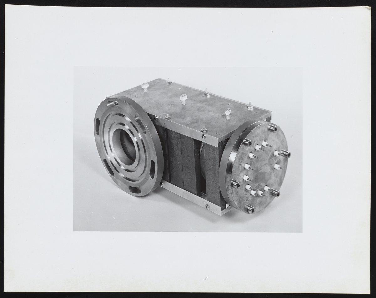 Bendix Corporation. “Bendix Model 301 Magnetic Electron Multiplier,” 1958. Photographs from the Bendix Time-of-Flight Mass Spectrometer Collection, Box 3. Science History Institute. Philadelphia. https://digital.sciencehistory.org/works/bk128b523.