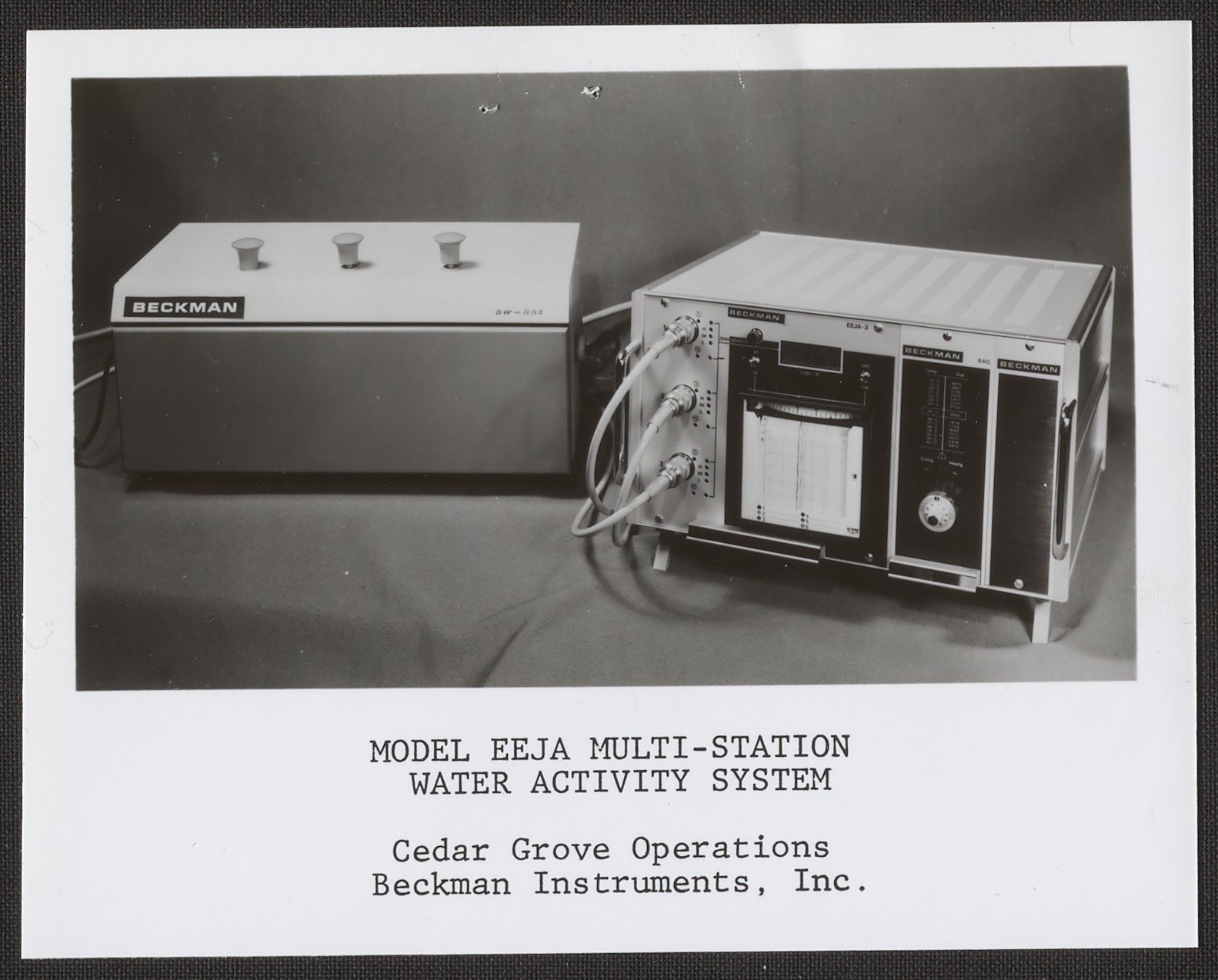“Beckman Model EEJA Multi-Station Water Activity System,” n.d. Beckman Historical Collection, Box 84. Science History Institute. Philadelphia. https://digital.sciencehistory.org/works/bn9997056.