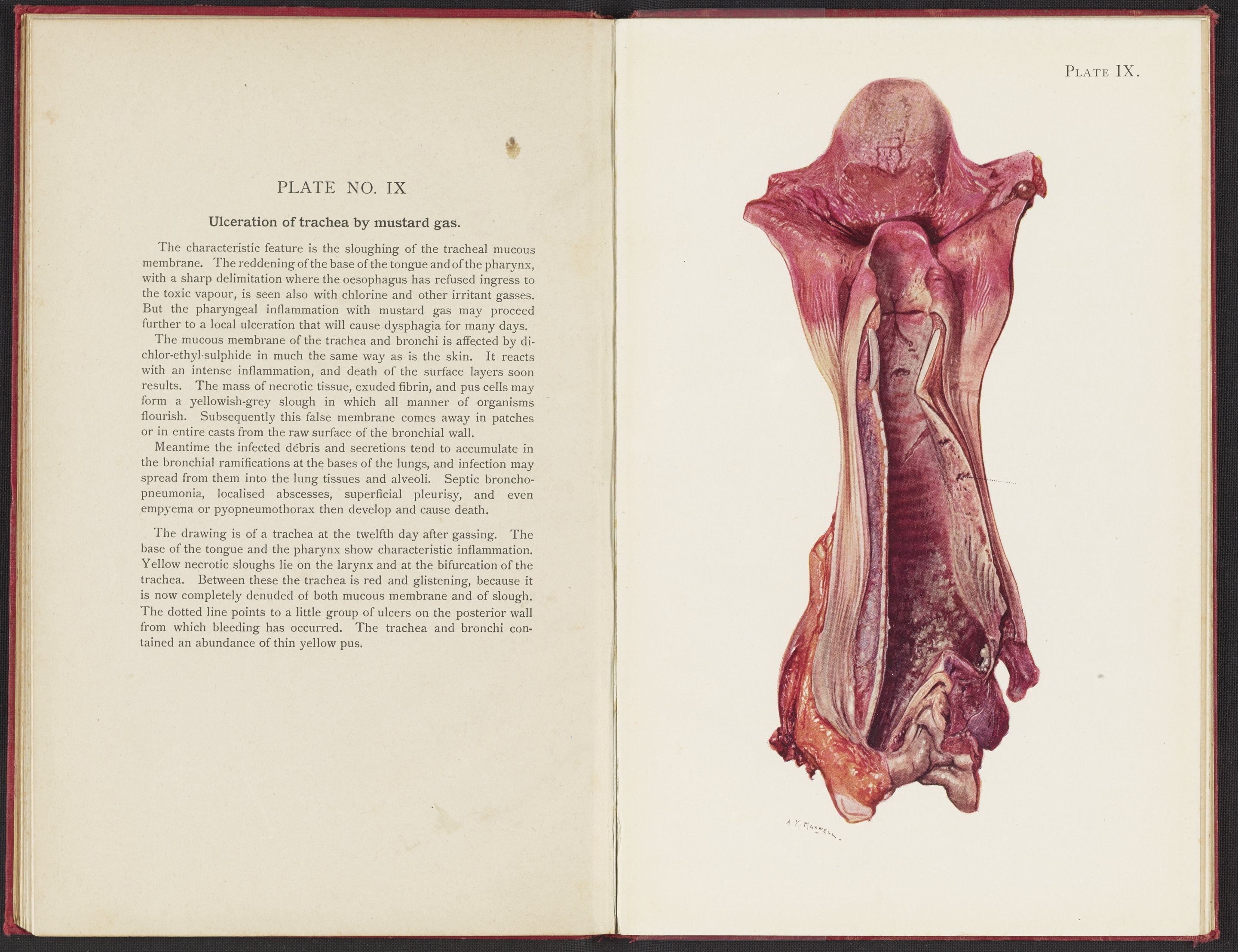 Great Britain. Medical Research Committee. “Plate IX. Ulceration of Trachea by Mustard Gas.” An Atlas of Gas Poisoning. London, England, 1918. https://digital.sciencehistory.org/works/br86b3609.
