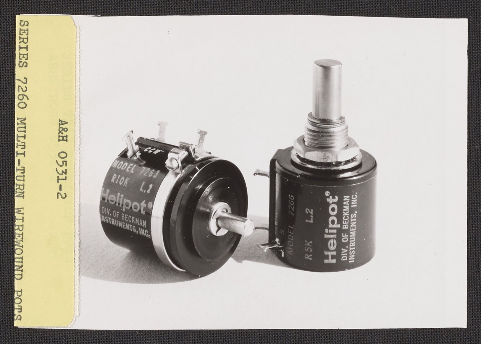 Armstrong & Hess. “Helipot Series 7260 Multi-Turn Wirewound Potentiometers,” 1950–1969. Beckman Historical Collection, Box 86. Science History Institute. Philadelphia. https://digital.sciencehistory.org/works/bv73c0933.