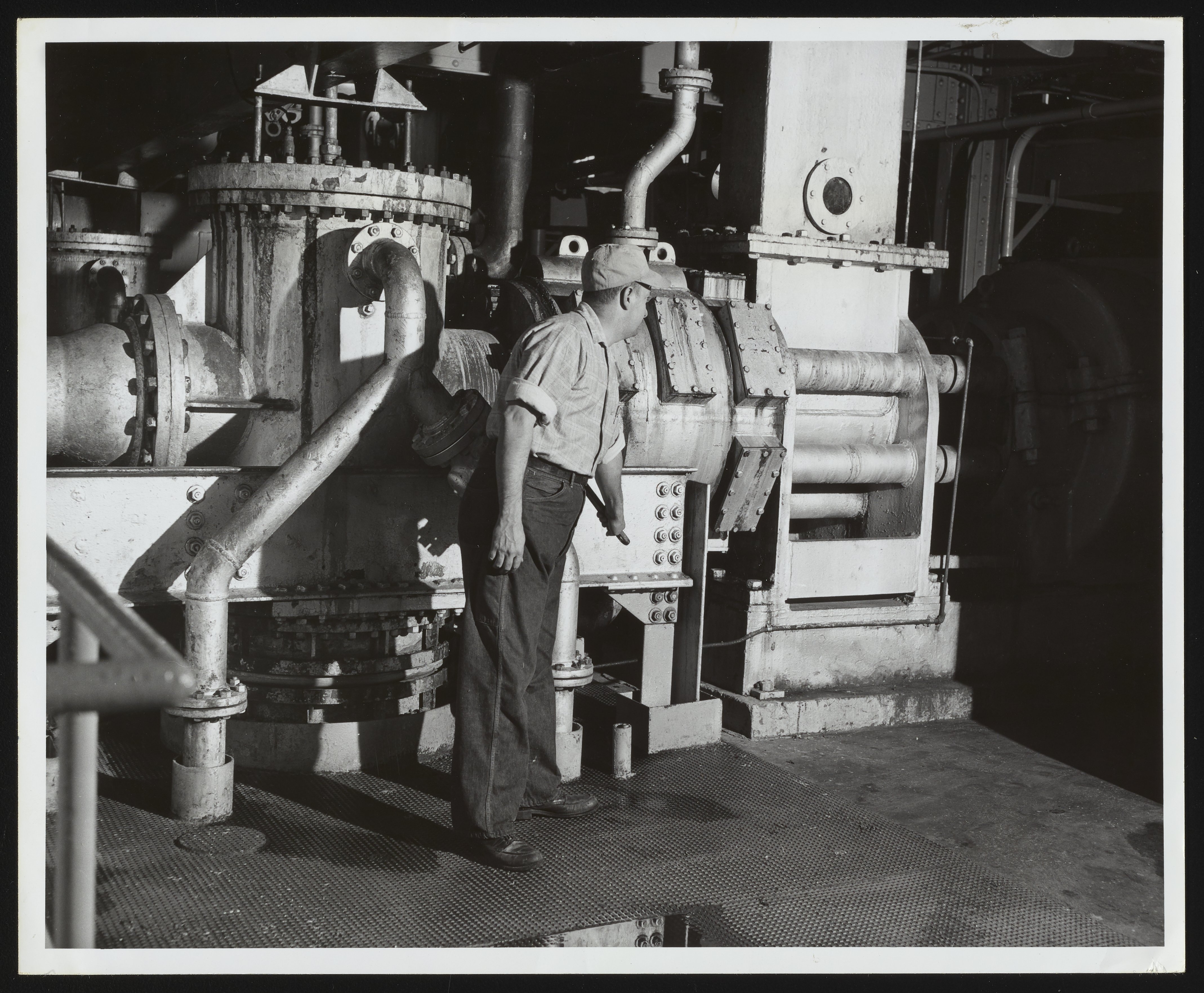 Hercules Incorporated. “Continuous Digester at Hercules Hopewell Plant,” 1957. Photographs from the Records & Ephemera of Hercules Incorporated, Box 1, Folder 37. Science History Institute. Philadelphia. https://digital.sciencehistory.org/works/bv73c123m.