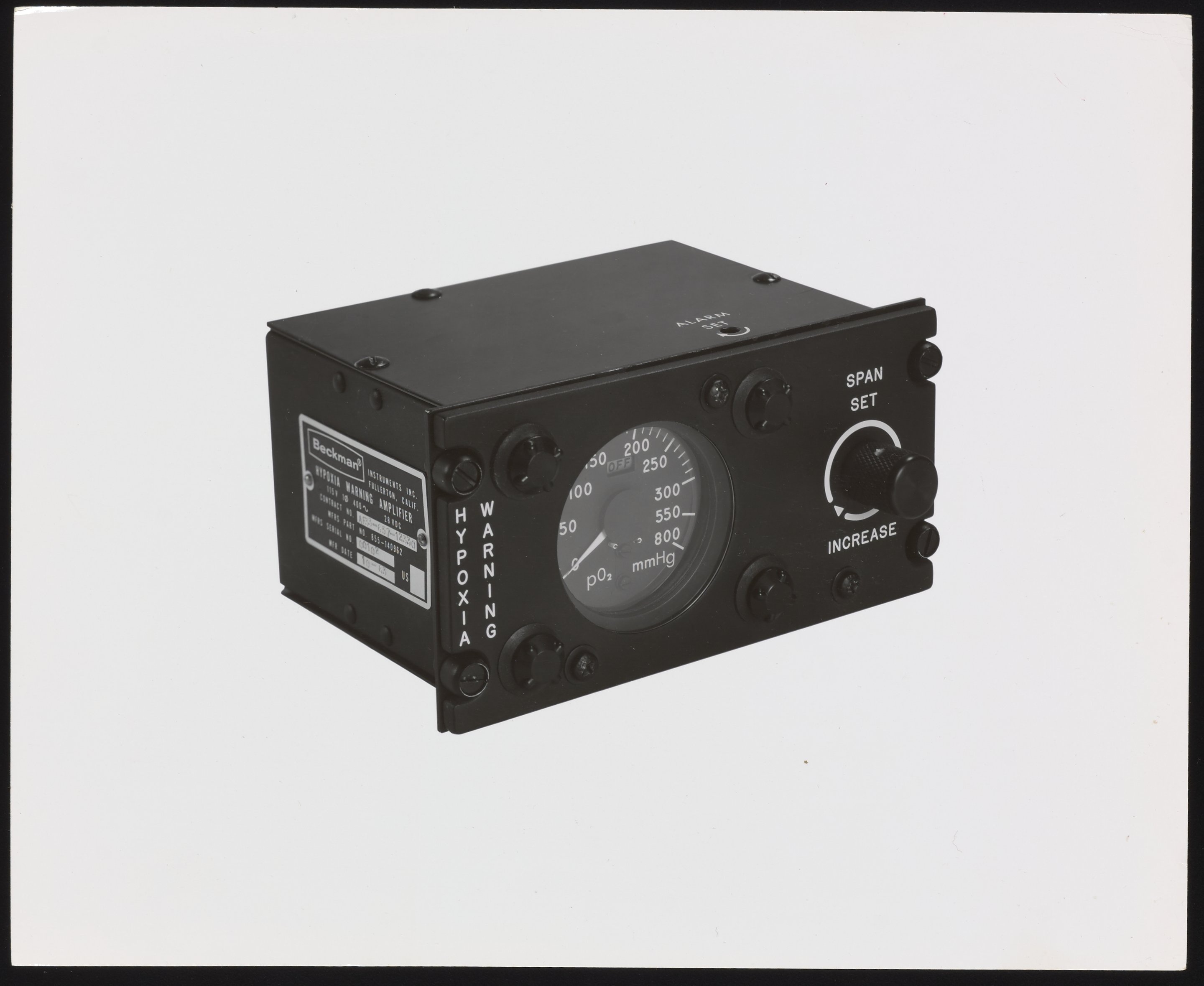 “Beckman Hypoxia Warning Amplifier,” 1963. Beckman Historical Collection, Box 55, Folder 65. Science History Institute. Philadelphia. https://digital.sciencehistory.org/works/bz60cw27k.