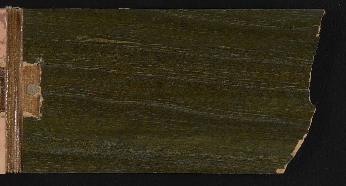 Small JPG1200 x 536px — 185 KBFull-sized JPG1996 x 892px — 455 KBOriginal fileTIFF — 1996 x 892px — 5.1 MBPiece is bound in stained veneer and consists of 20 veneer samples interleaved with printed parchment.