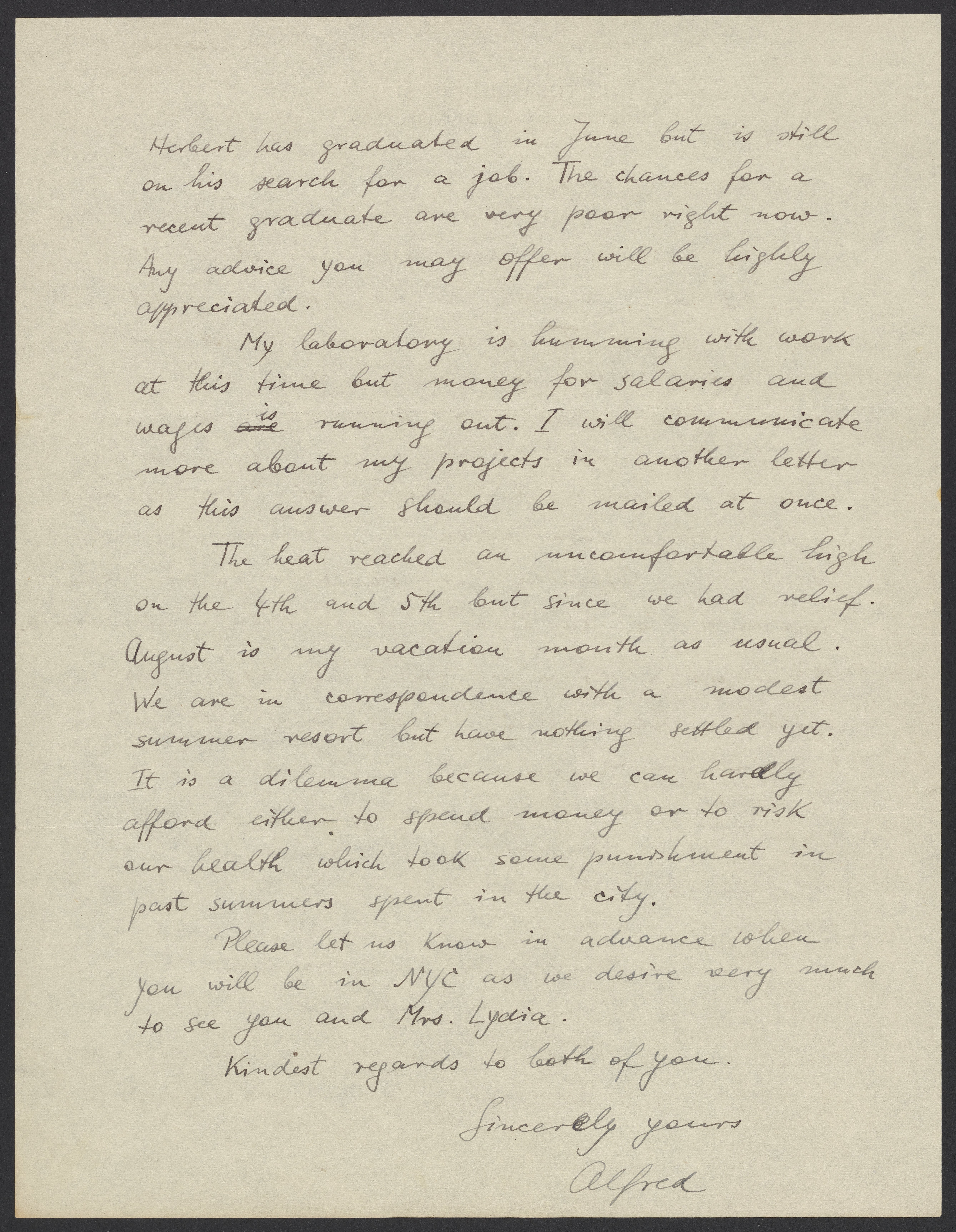 Letter from Alfred Reis to Max Bredig, July 8, 1949