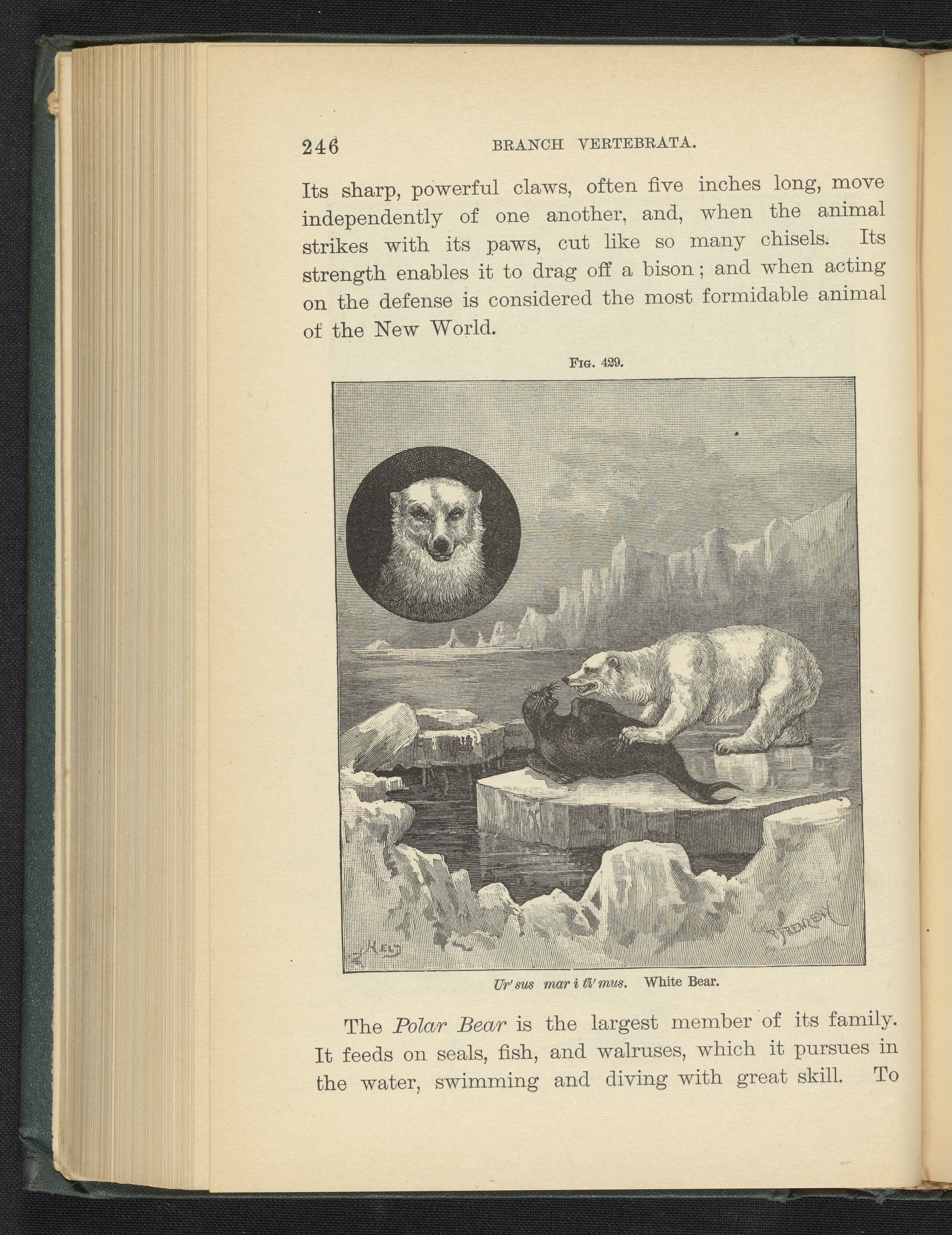 Steele, Joel Dorman, and Jenks, J. W. P. (John Whipple Potter). “Figure 429. White Bear.” Popular Zoology. New York, New York: Chautauqua Press, 1887. https://digital.sciencehistory.org/works/c3pbidw.