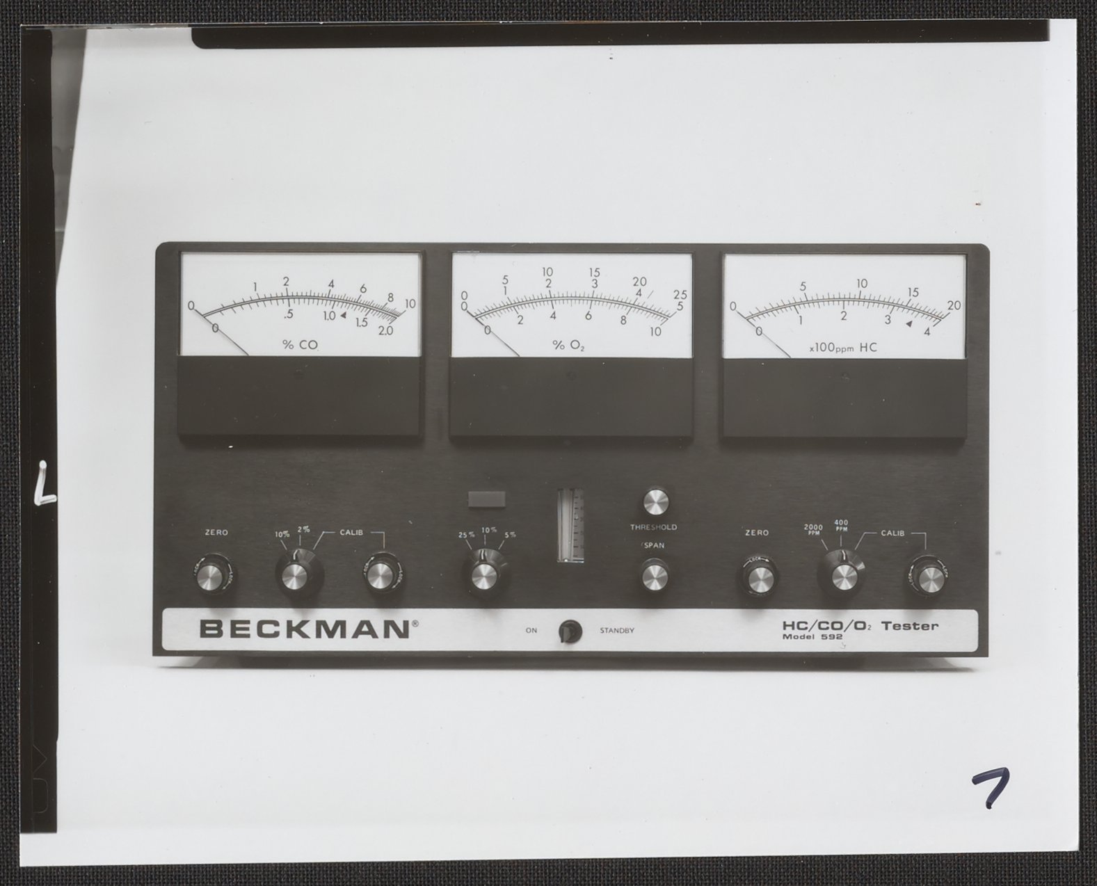 “Beckman Model 592 HC/CO/O Tester,” n.d. Beckman Historical Collection, Box 84. Science History Institute. Philadelphia. https://digital.sciencehistory.org/works/c534fp19p.