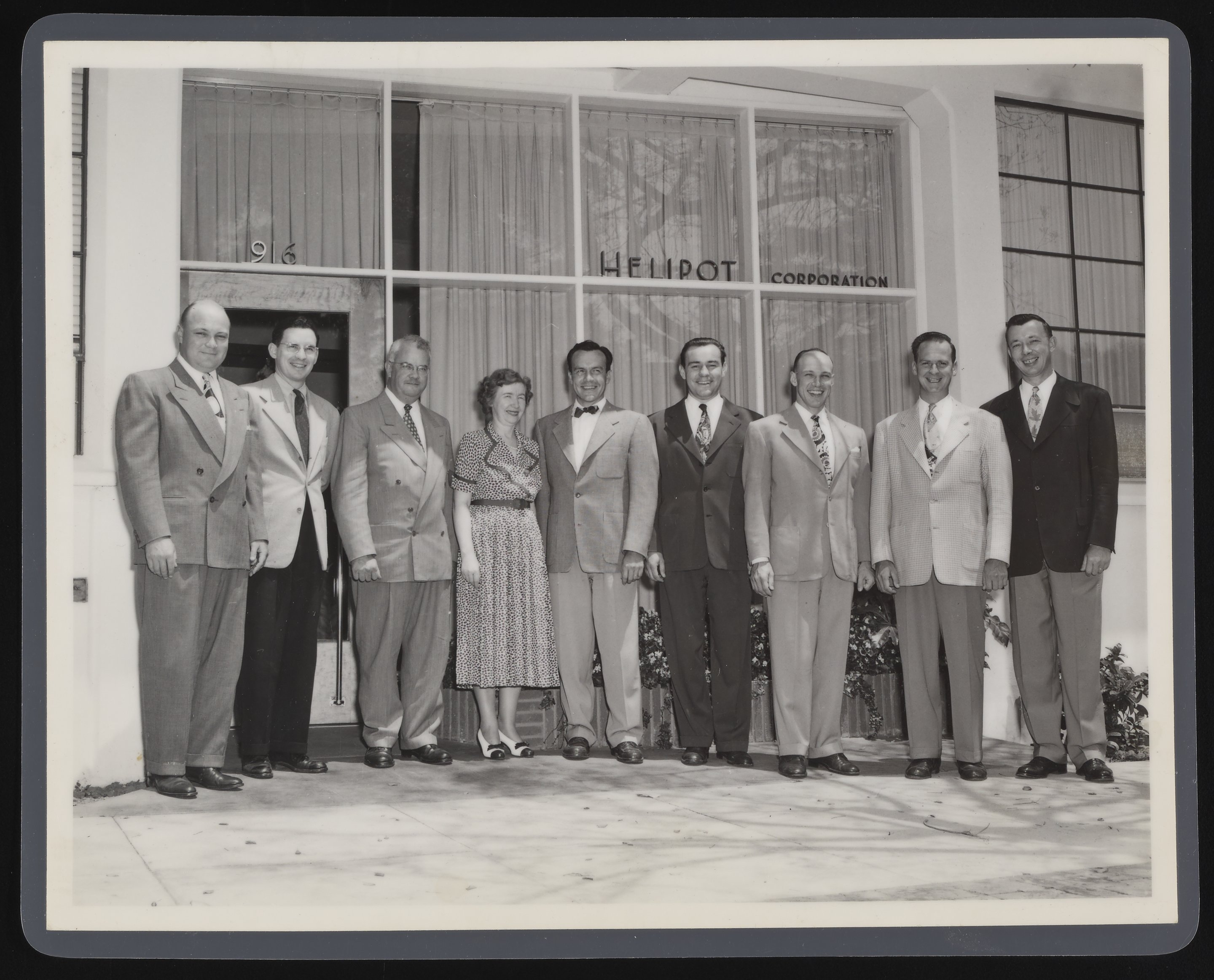 Brooks, Ernest W. “Helipot Corporation Staff,” July 1950. Beckman Historical Collection, Box 59, Folder 15. Science History Institute. Philadelphia. https://digital.sciencehistory.org/works/c534fp30p.