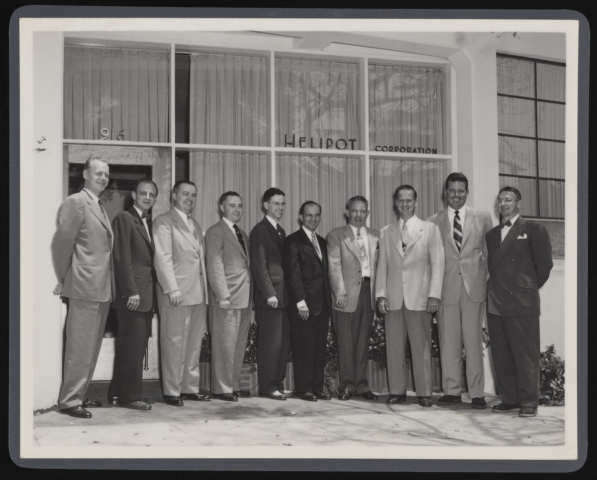 Small JPG1200 x 970px — 169 KBLarge JPG2880 x 2327px — 698 KBFull-sized JPG3298 x 2665px — 866 KBOriginal fileTIFF — 3298 x 2665px — 25.2 MBStaff and representatives pose outside the Helipot Corporation's Meridian Avenue location.