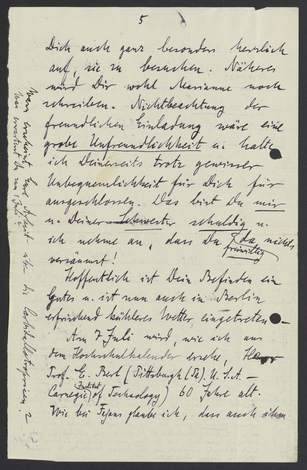 Am 7 Juli wird, wie ich aus dem Hochschulkalender ersehe, Herr Prof. E. Berl (Pittsburgh (Pa). U.S.A. -