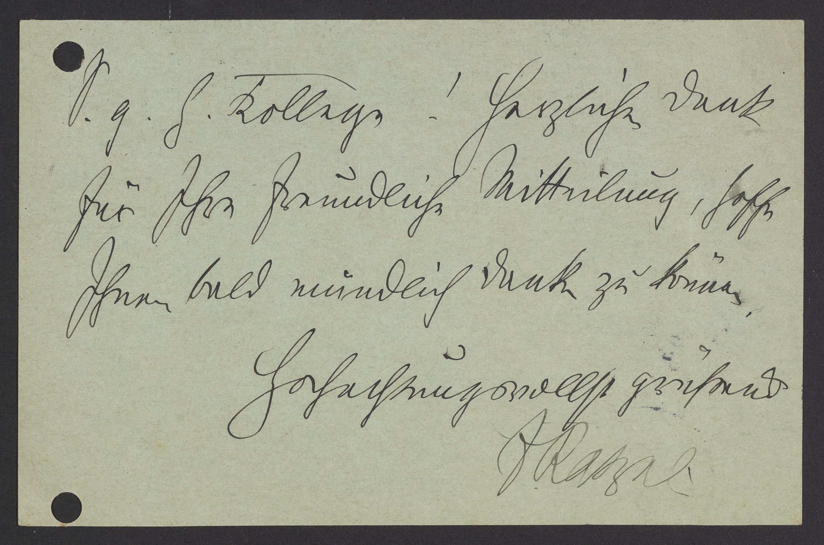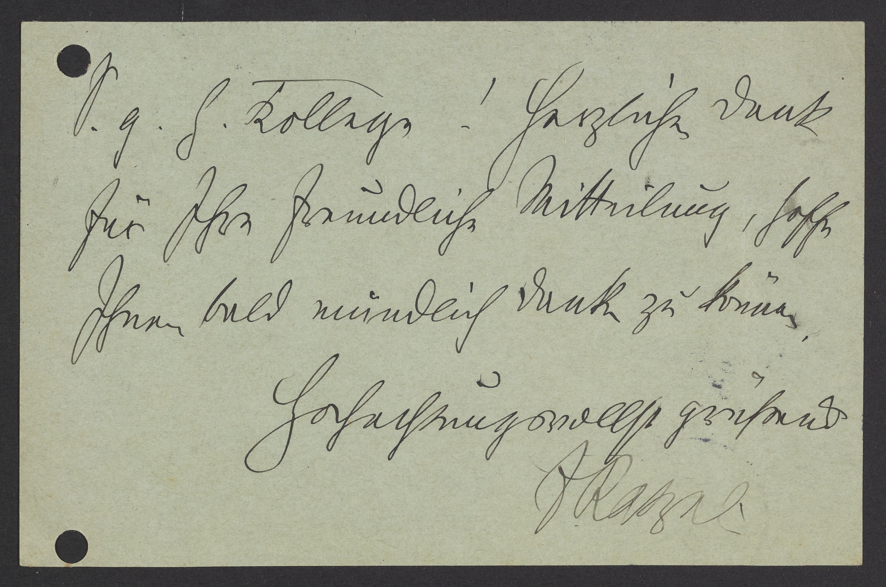 Herzlichen Dank für Ihre freundliche Mitteilung, hoffe Ihnen bald mündlich danken zu können.