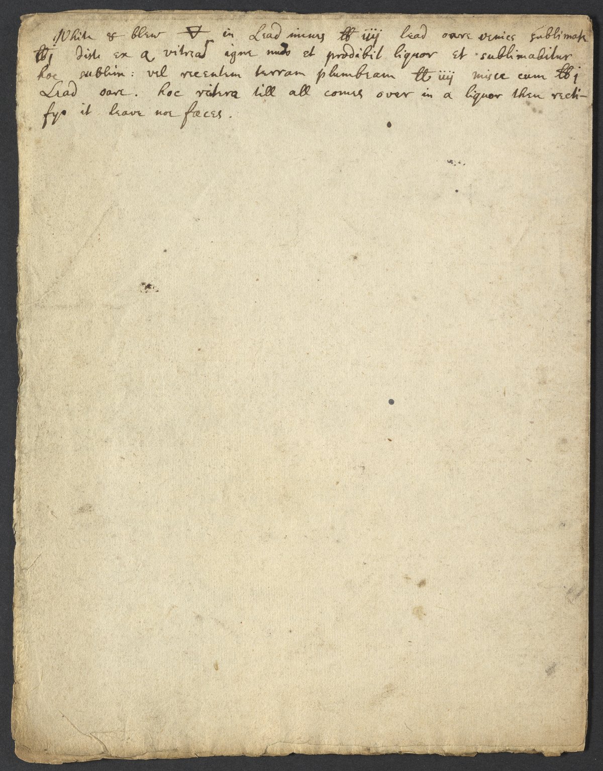 White & blew [alchemical symbol for earth] in Lead misces ℔ iiij lead oare verics sublimate
