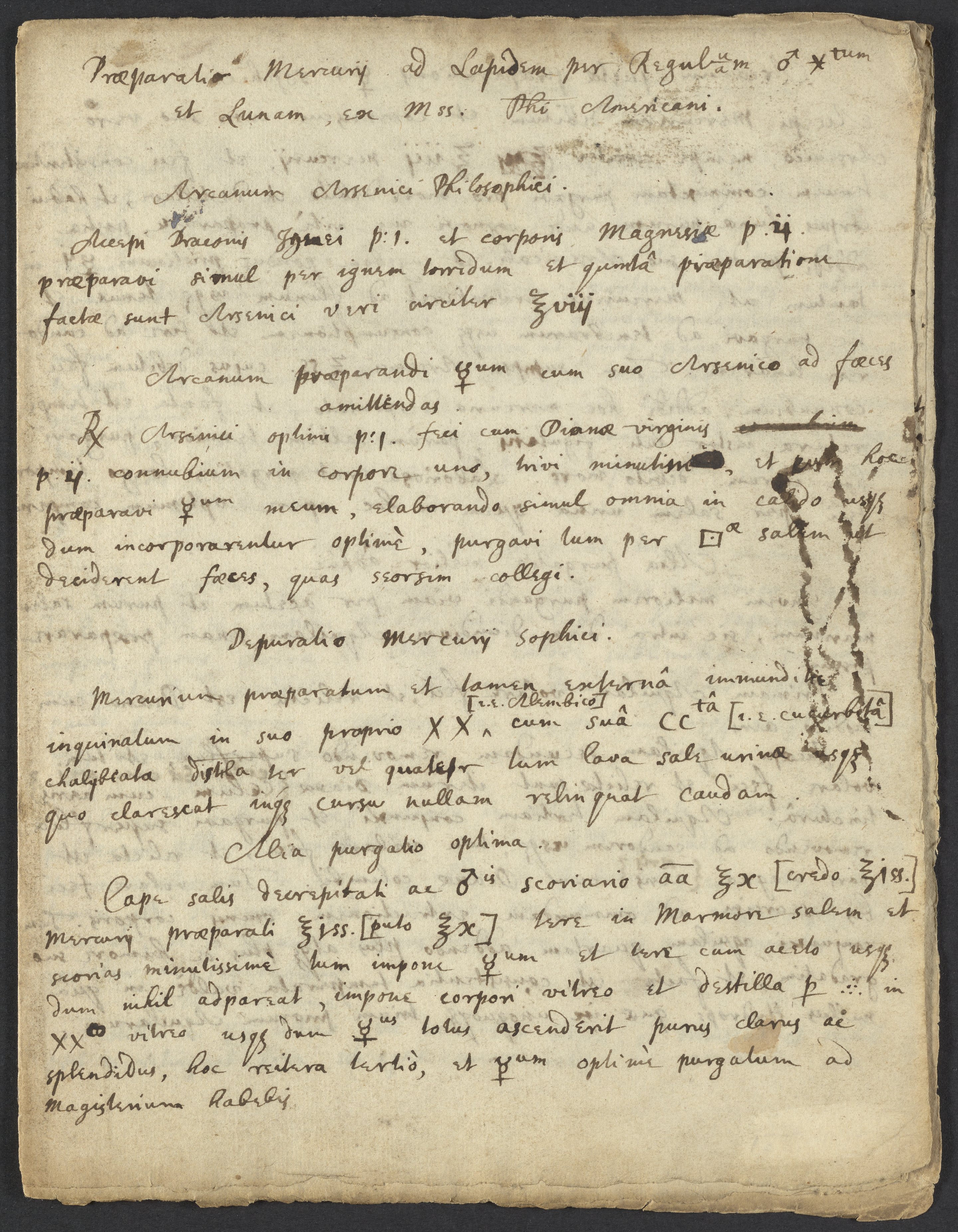 Cape ☿^[uum] tuum praeparatum cum suo Arsenico Aquilanō
