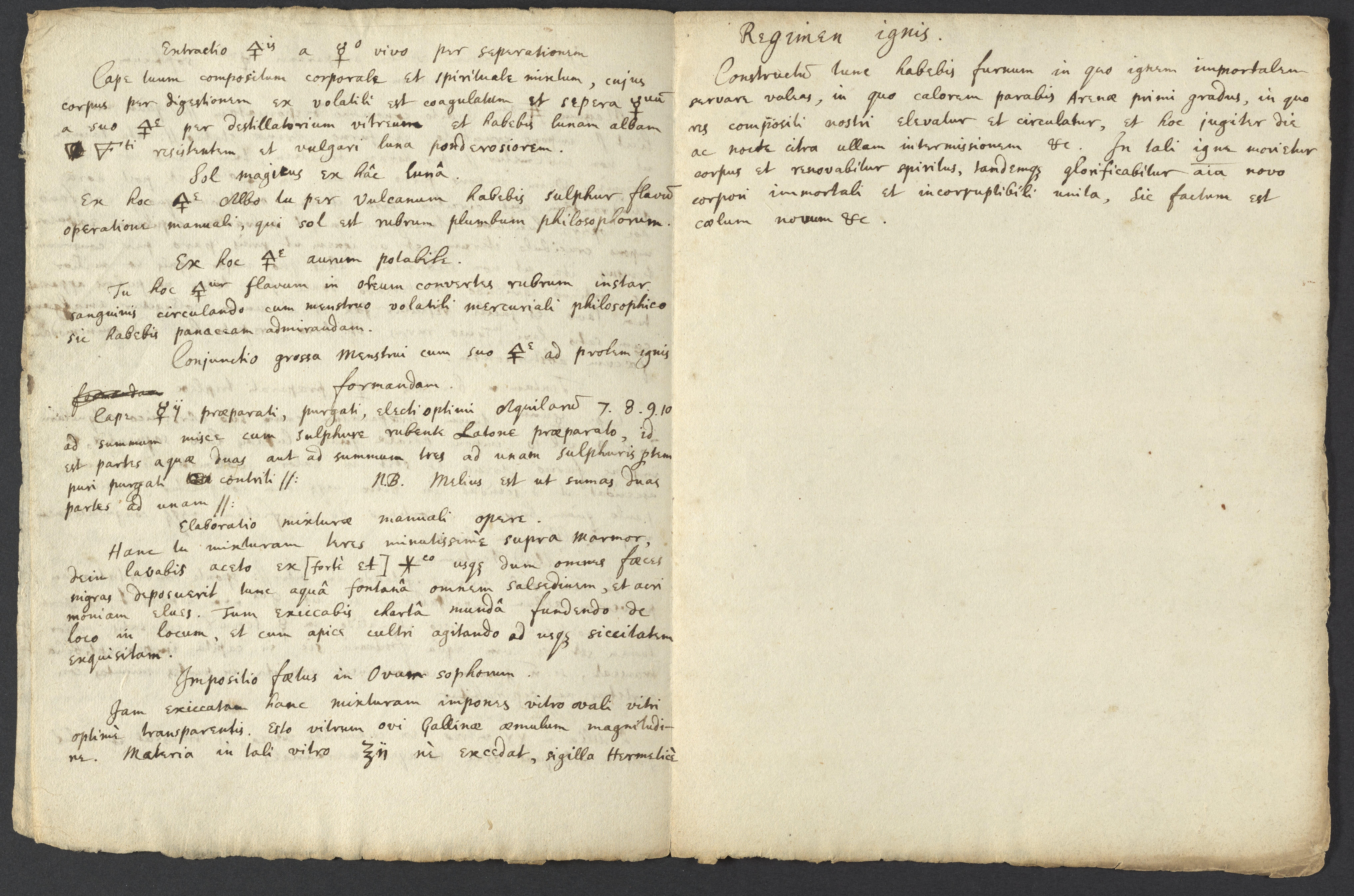 Conjunctio grossa Menstrui cum suo [alchemical symbol for Sulphur]^[e] ad prolem ignis