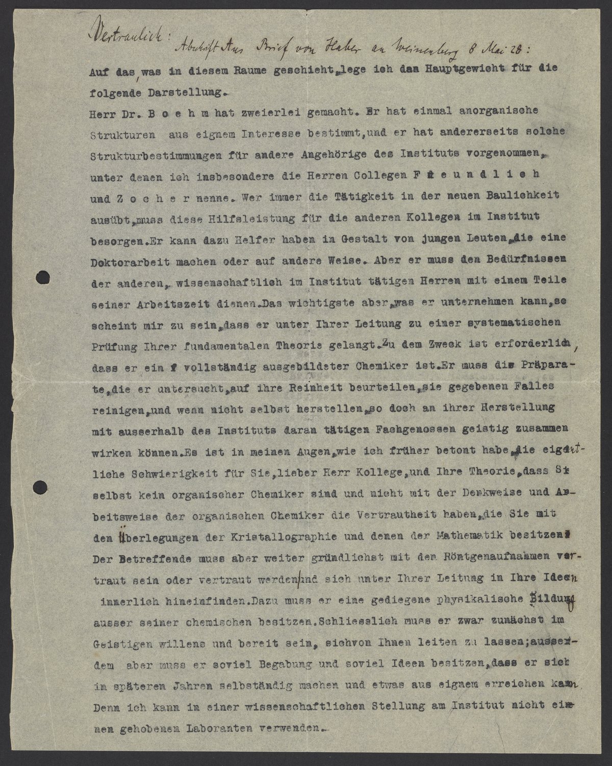 Letter from Fritz Haber to Arthur von Weinberg, May 8, 1928
