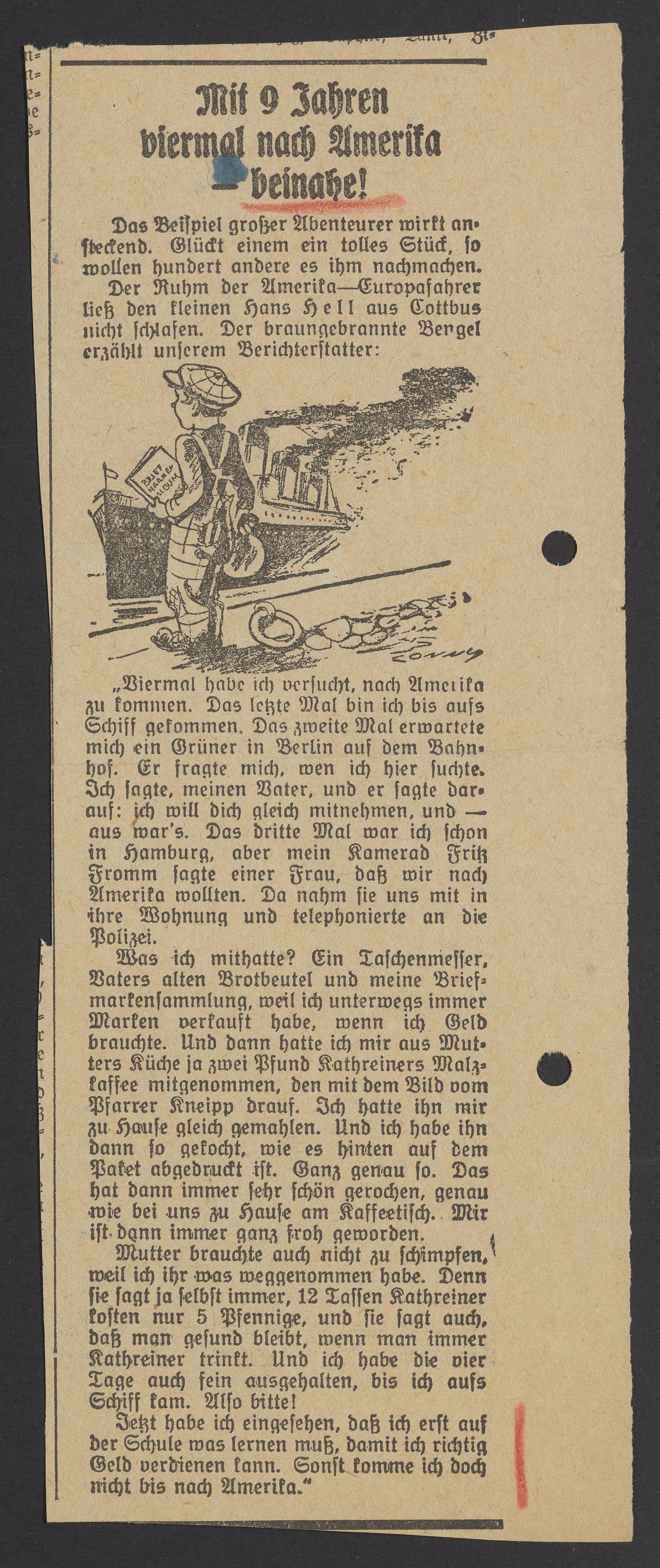 “Mit 9 Jahren Viermal Nach Amerika- Beinahe!,” n.d. Papers of Georg and Max Bredig, Box 4, Folder 13. Science History Institute. Philadelphia. https://digital.sciencehistory.org/works/chvcmau.