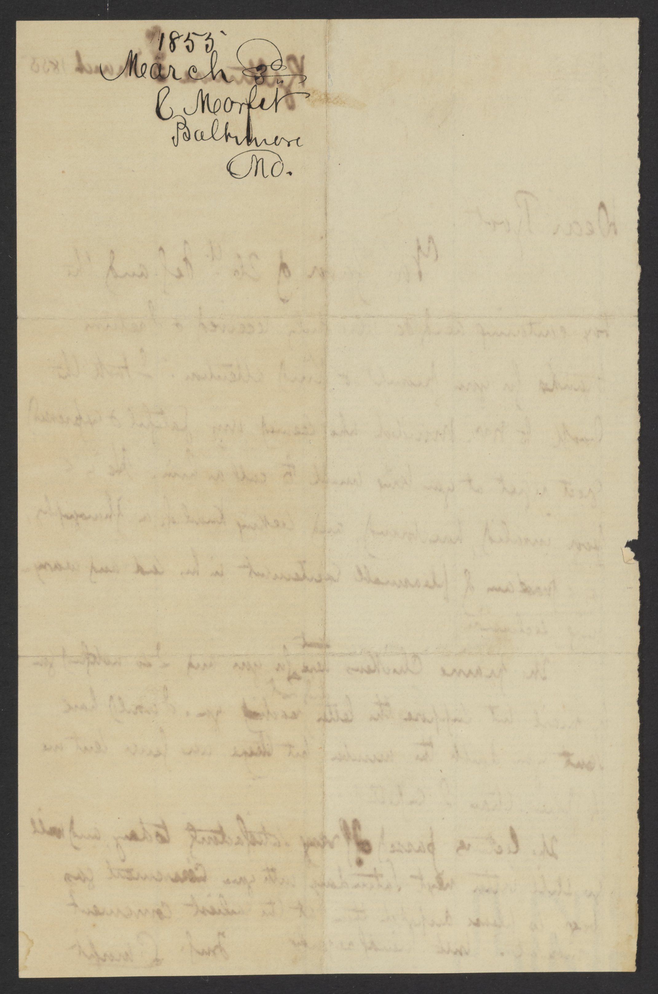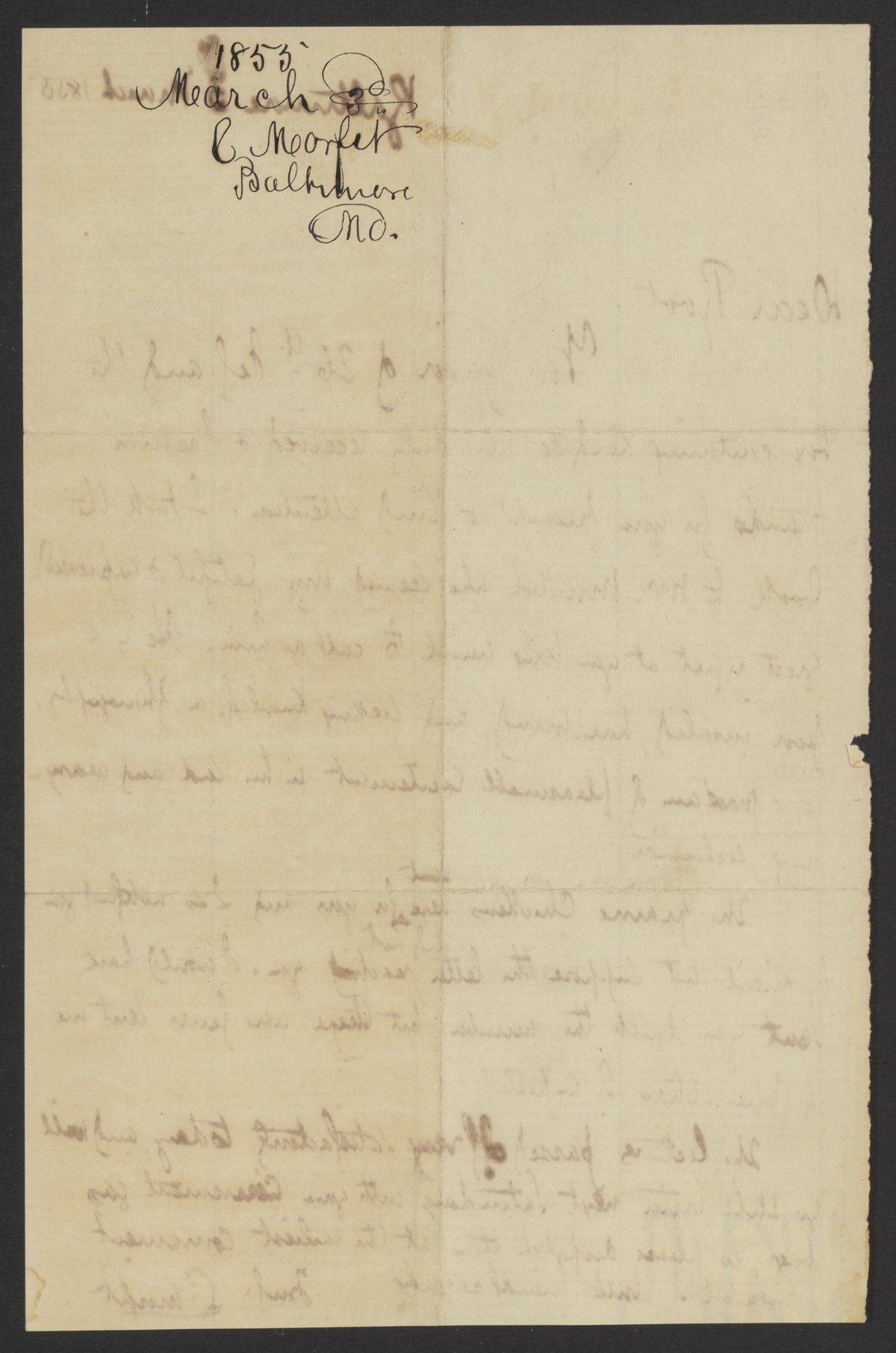 Letter from Campbell Morfit to James Curtis Booth, March 3, 1855