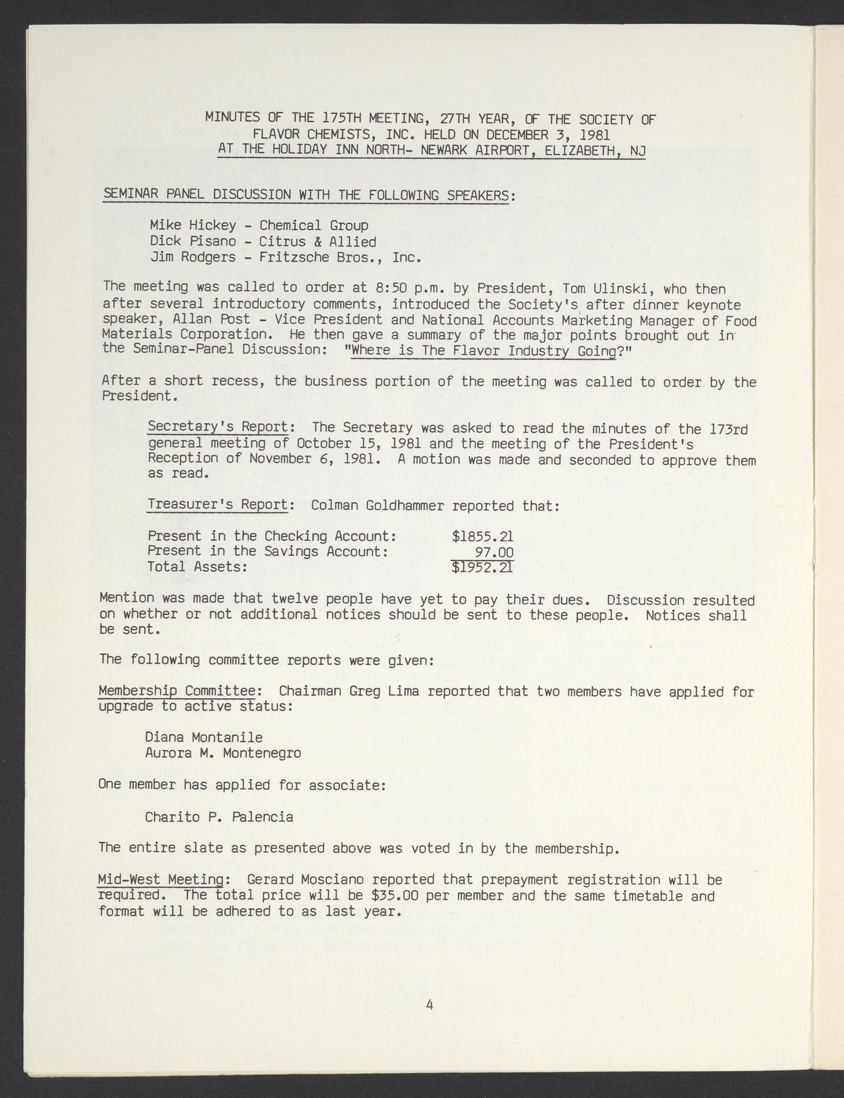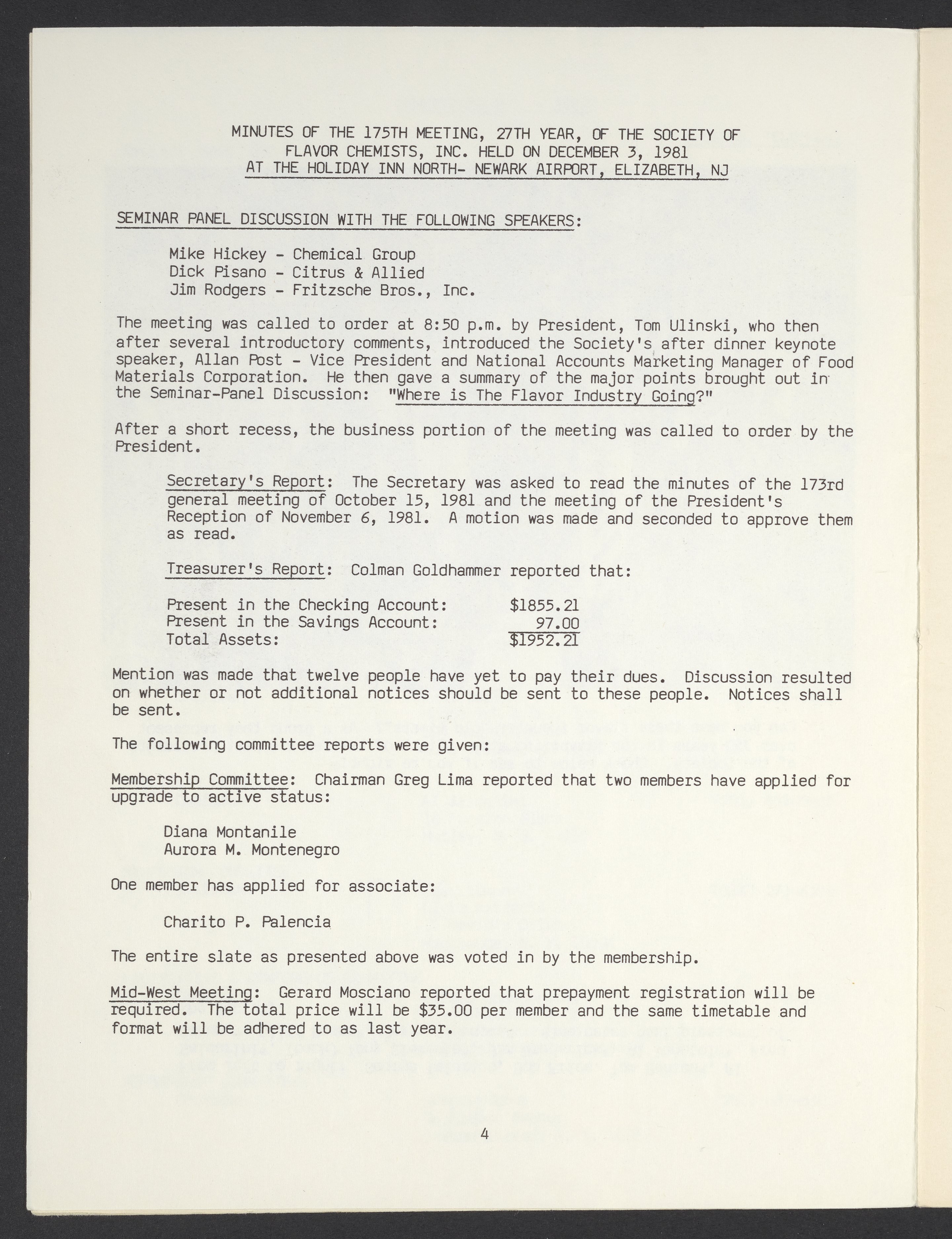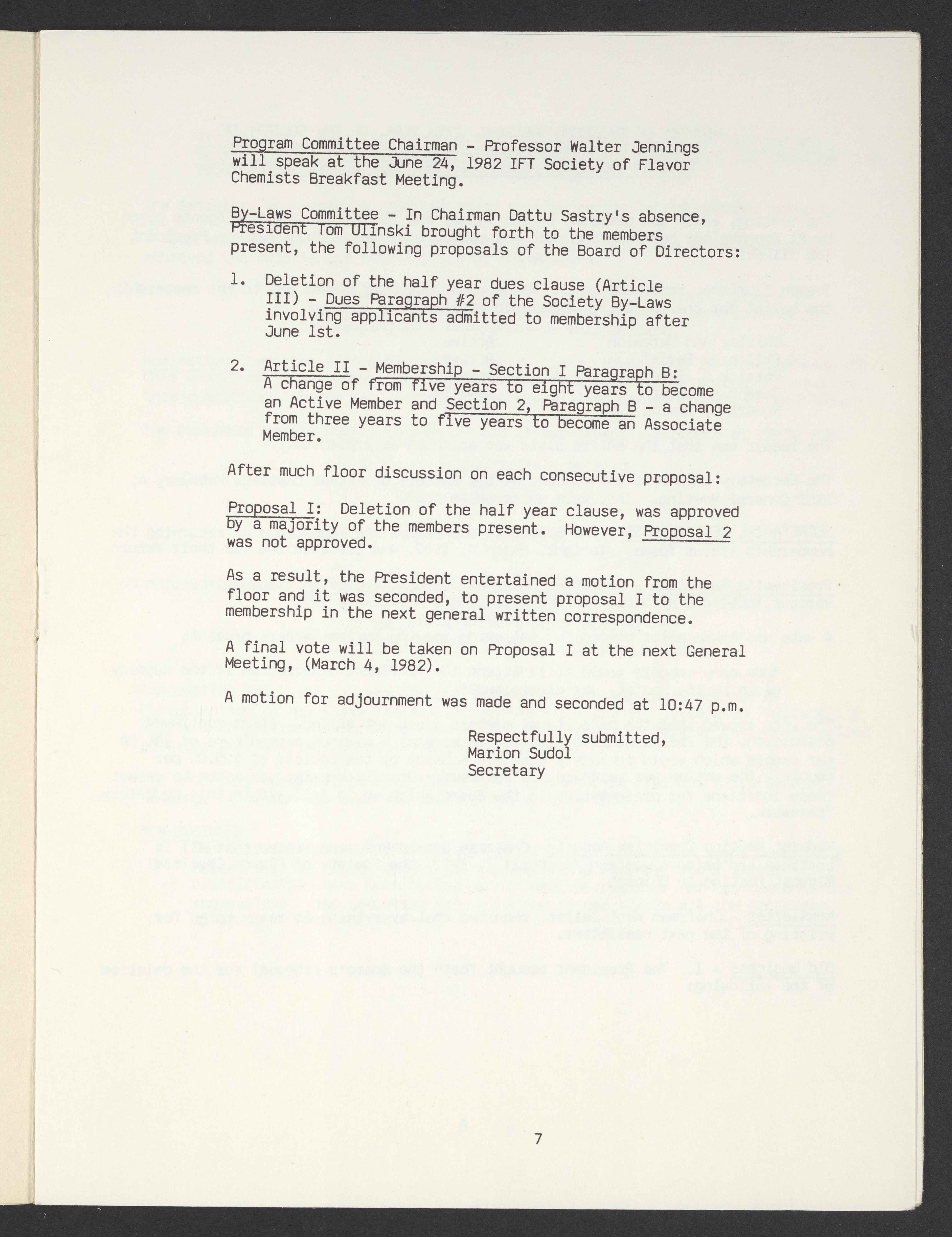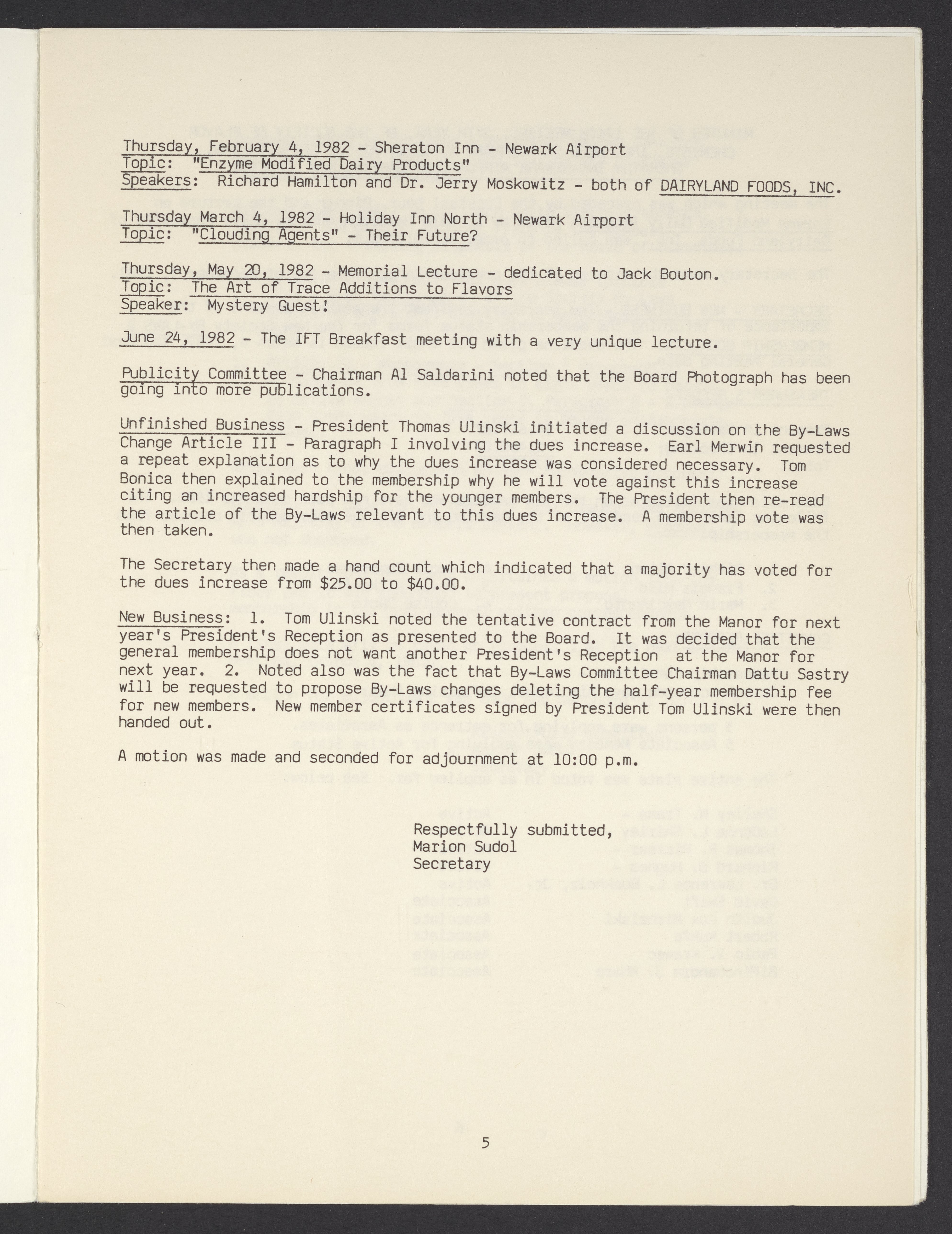 Society of Flavor Chemists. “Society of Flavor Chemists Newsletter, July 1982,” July 9, 1982. Society of Flavor Chemists Newsletters and Certificate of Incorporation, Box 1, Folder 1. Science History Institute. Philadelphia. https://digital.sciencehistory.org/works/cj05h6r.