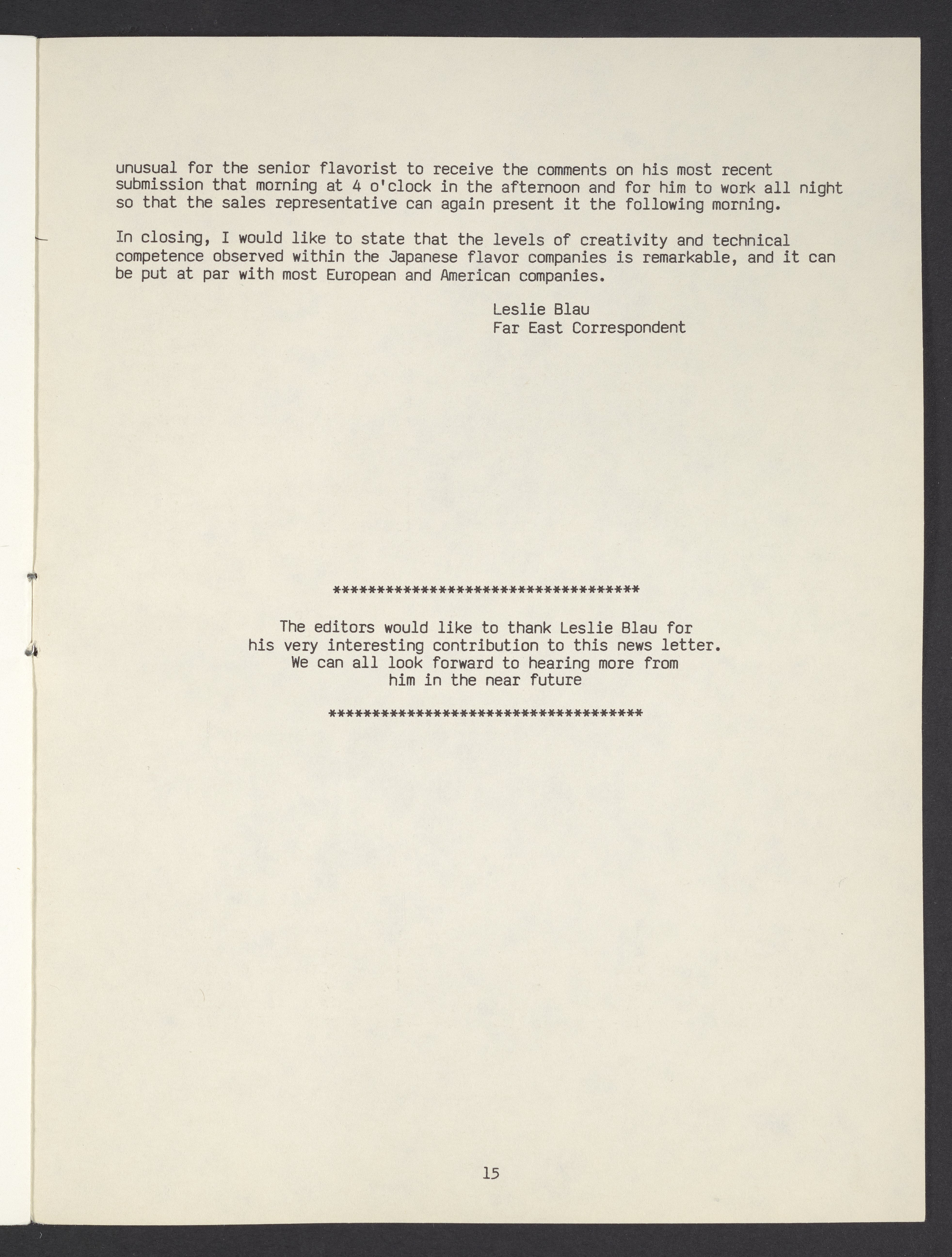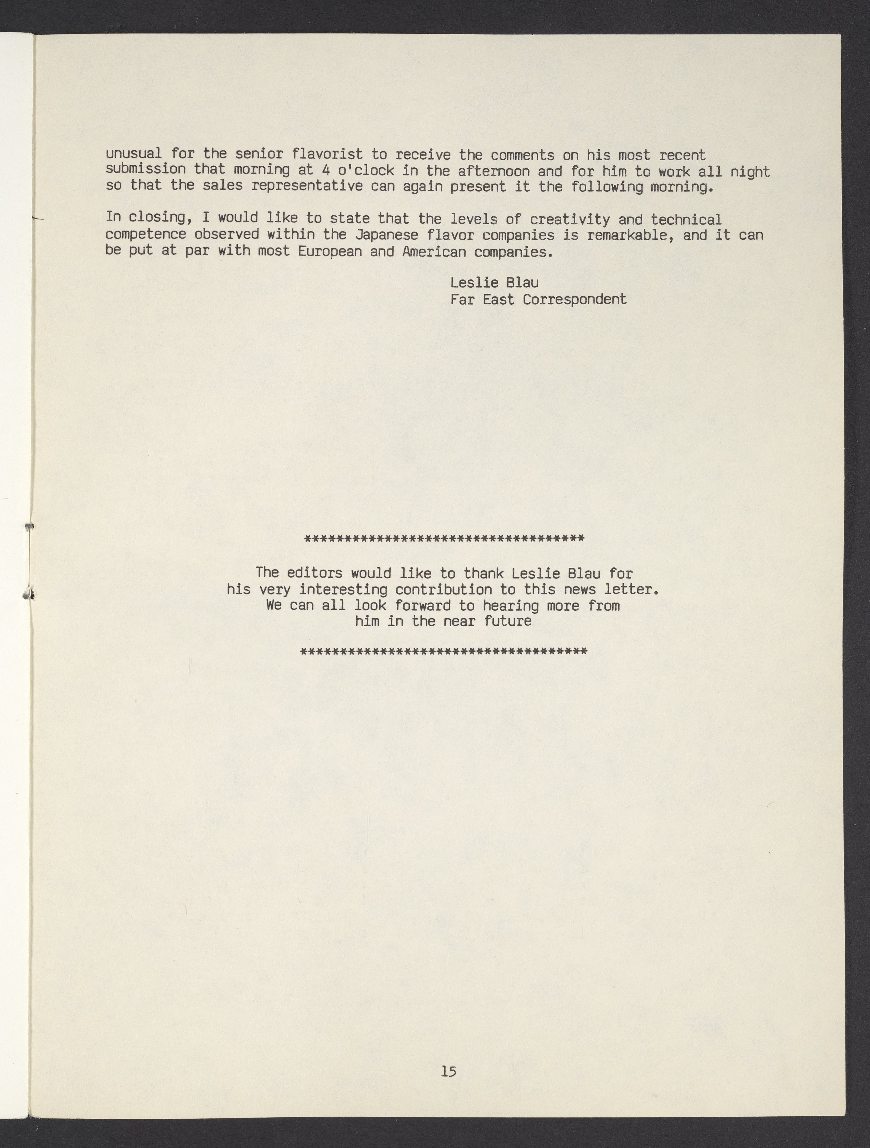 Small JPG1200 x 1555px — 211 KBLarge JPG2880 x 3733px — 1.2 MBFull-sized JPG3961 x 5134px — 2.1 MBOriginal fileTIFF — 3961 x 5134px — 58.2 MBJuly 9, 1982 issue of the Society of Flavor Chemists newsletter.