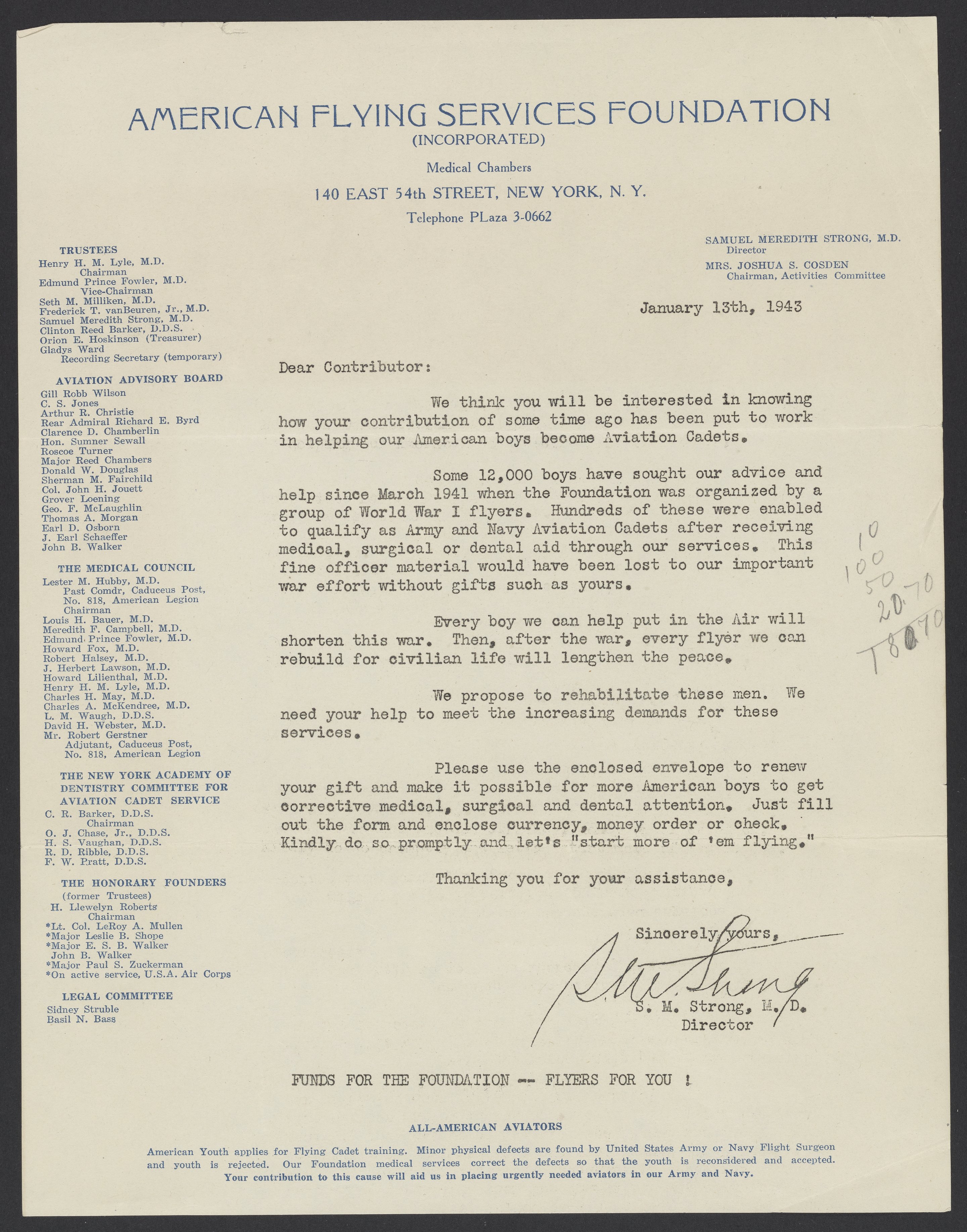 Letter from the American Flying Services Foundation to Max Bredig