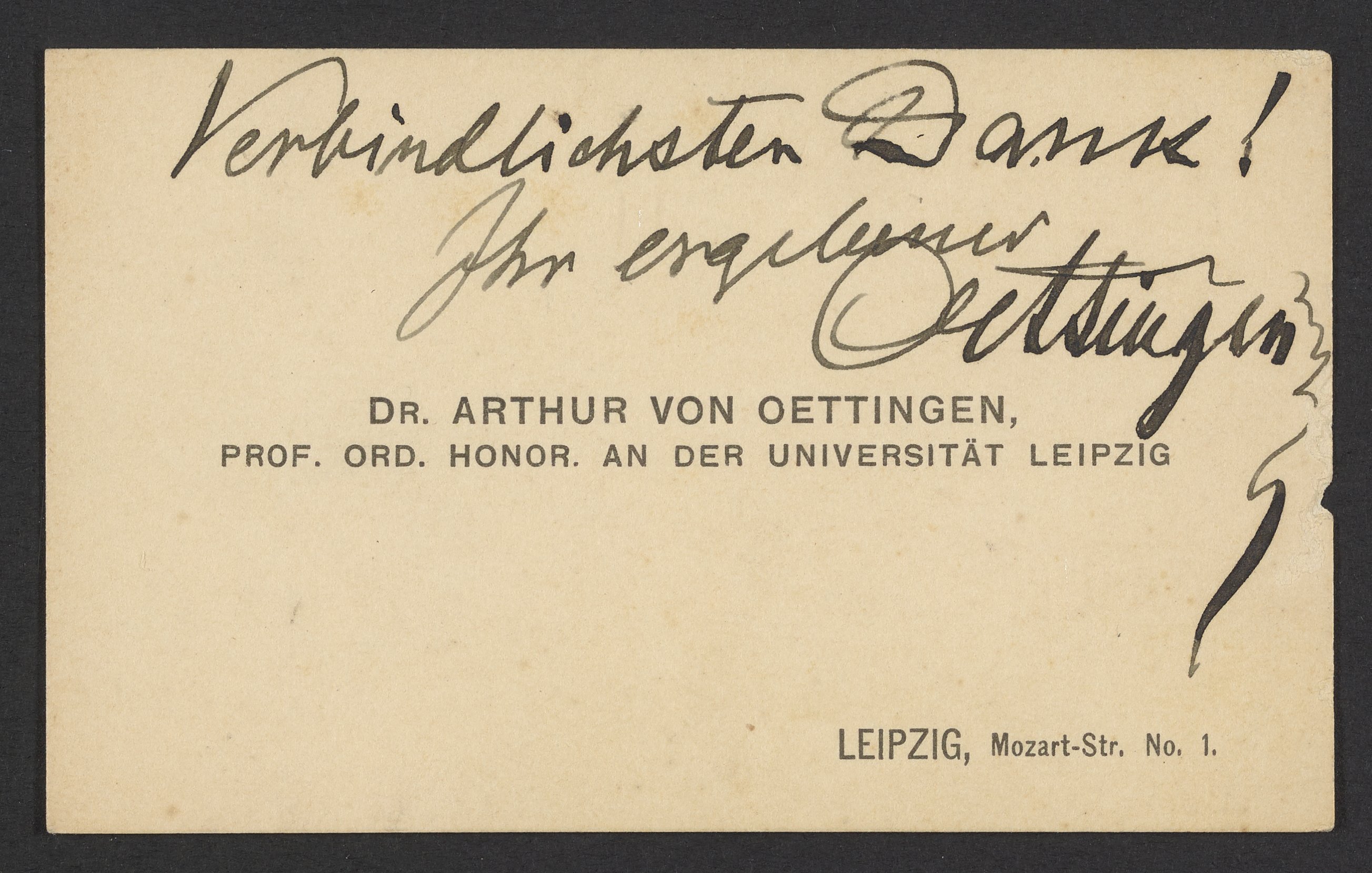 Calling card belonging to Arthur von Oettingen (1836-1920) a German physicist and music theorist.