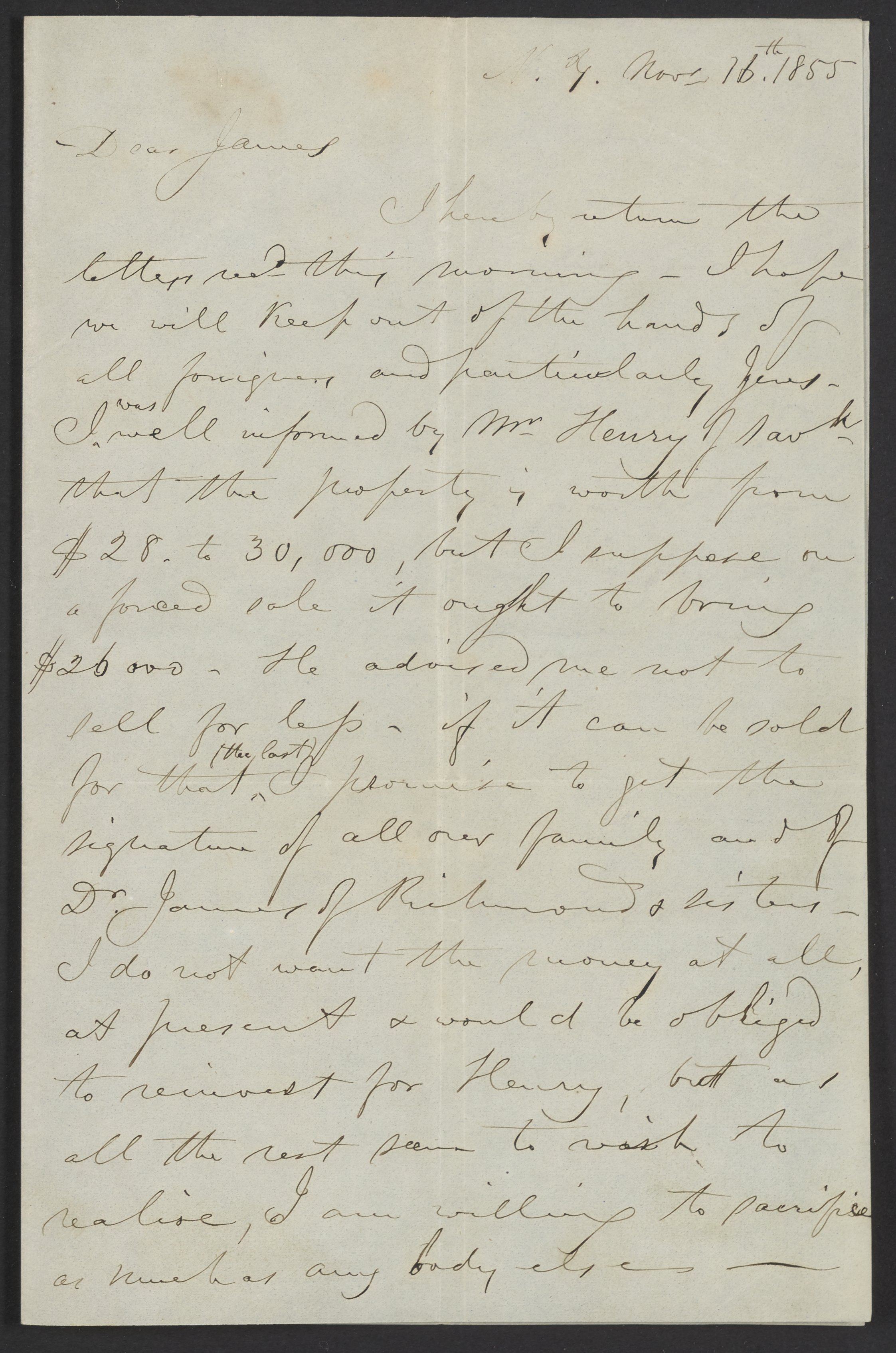 Letter from Jackson Bolton to James Curtis Booth, November 16, 1855