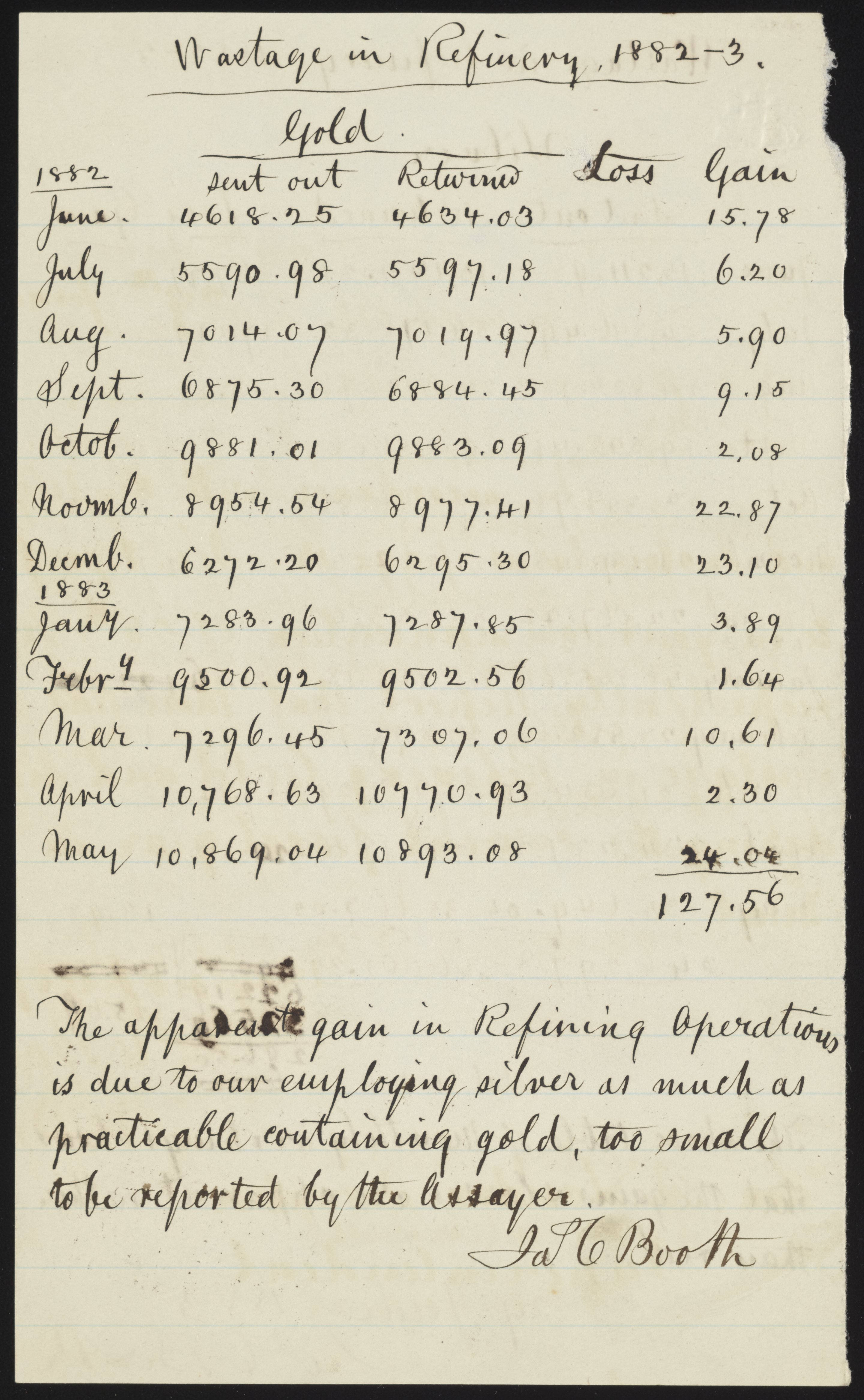 Small JPG1200 x 1933px — 362 KBLarge JPG2880 x 4640px — 1.4 MBFull-sized JPG3755 x 6050px — 2.2 MBOriginal fileTIFF — 3755 x 6050px — 65.0 MBReport on the loss of silver and gold from refinery wastage by month.