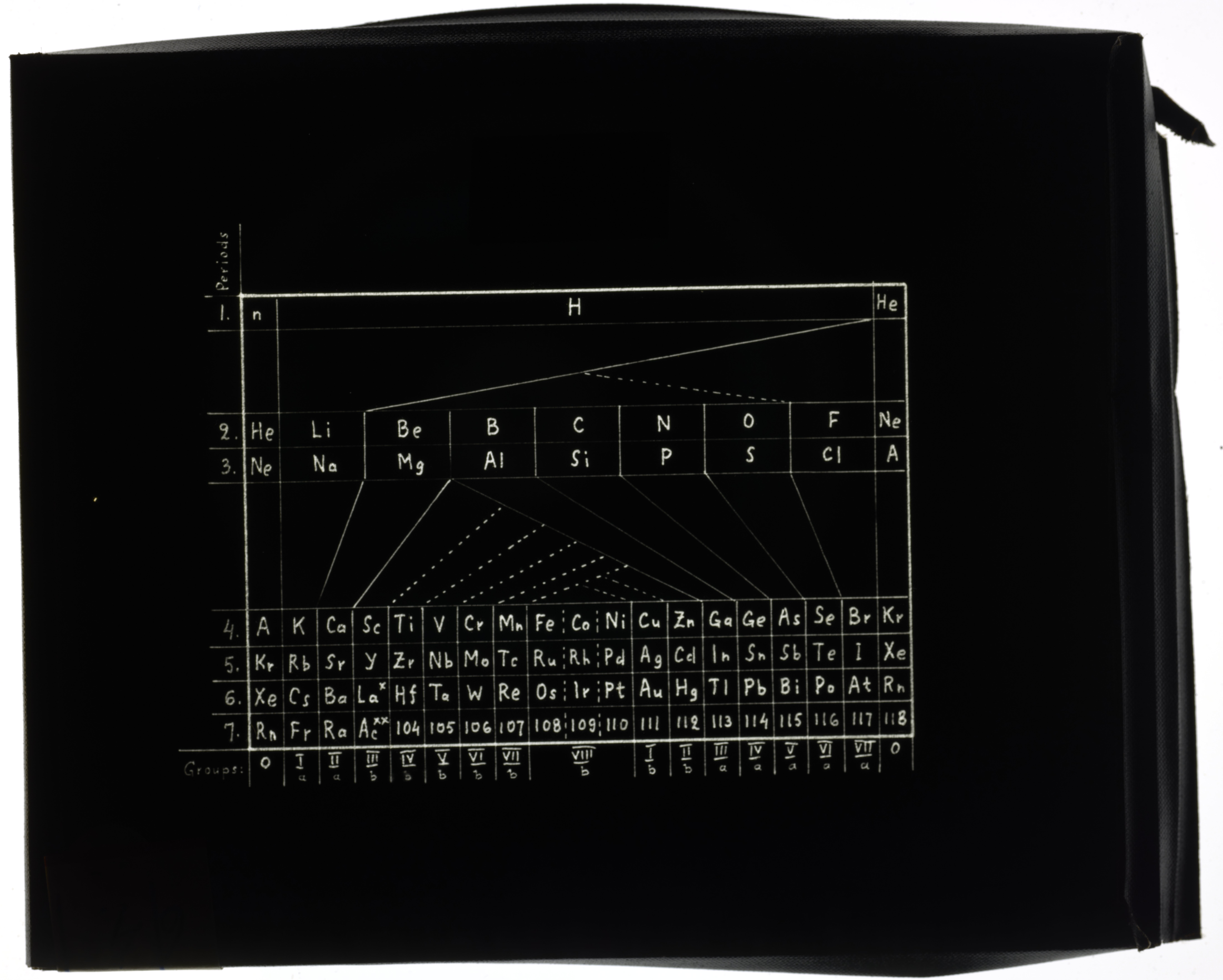 Periodic table in style of a zigzag (George Woodiwiss, 1906)1906 (Original design), Circa 1957 (Date attributed to slide)