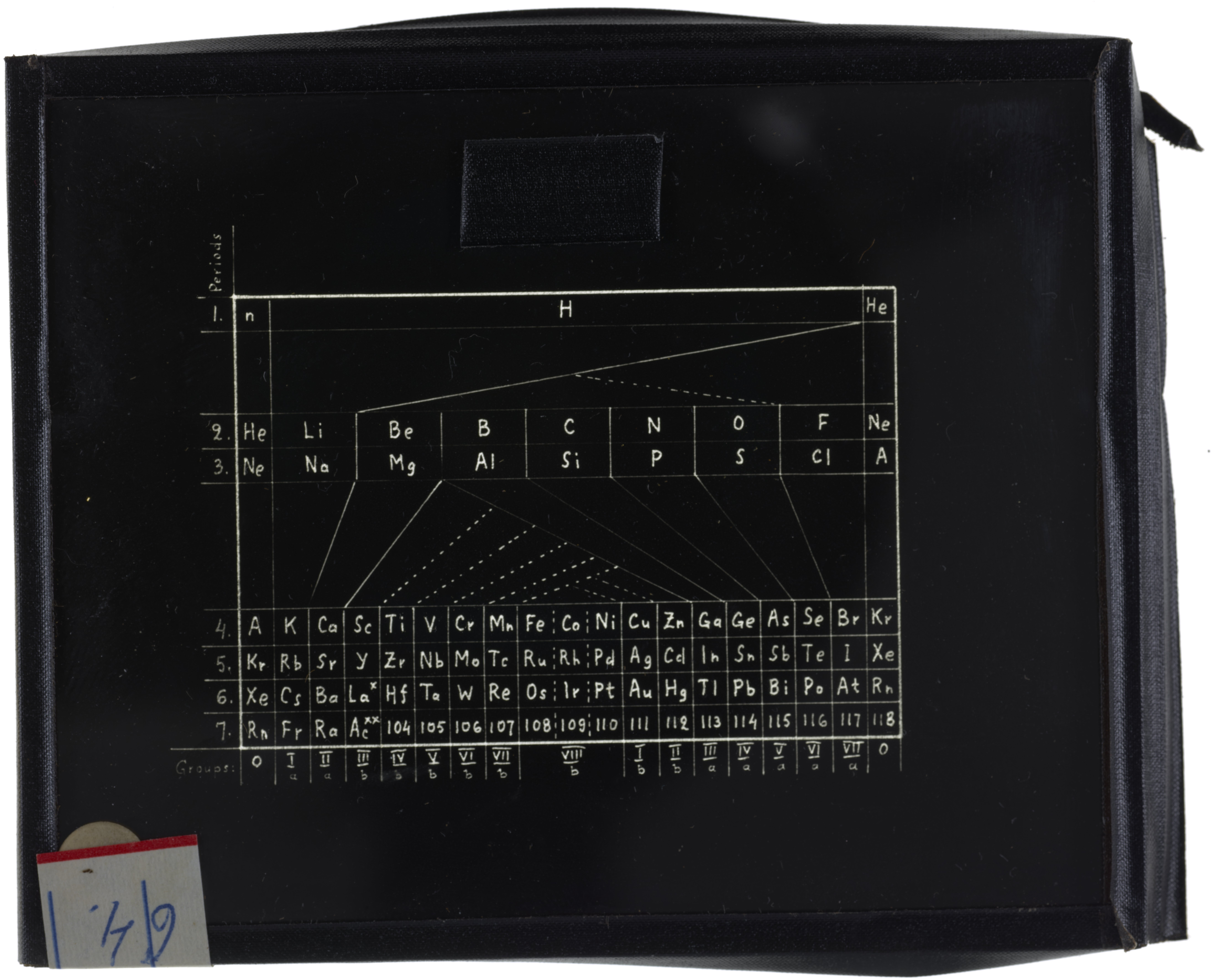 Periodic table in style of a zigzag (George Woodiwiss, 1906)1906 (Original design), Circa 1957 (Date attributed to slide)
