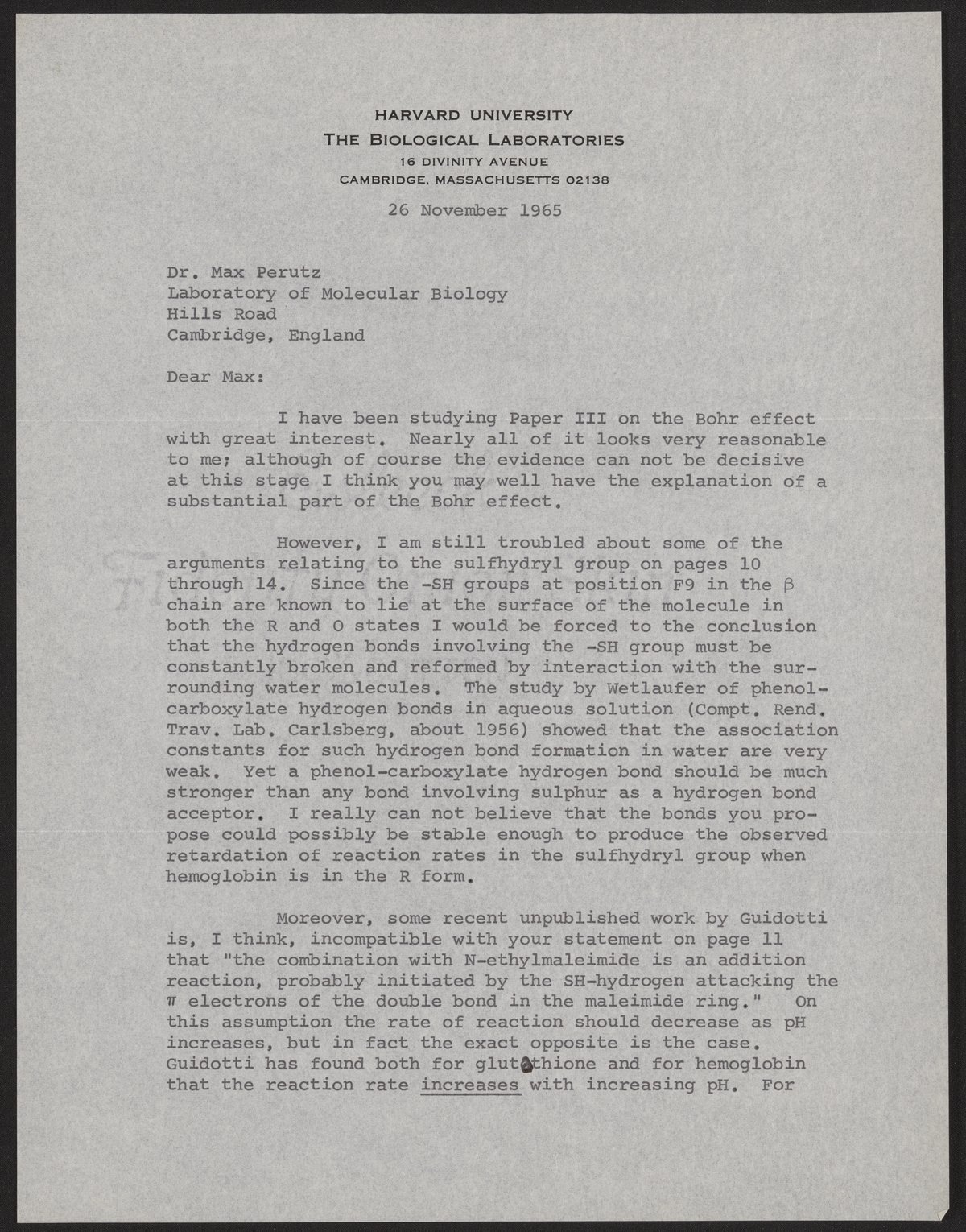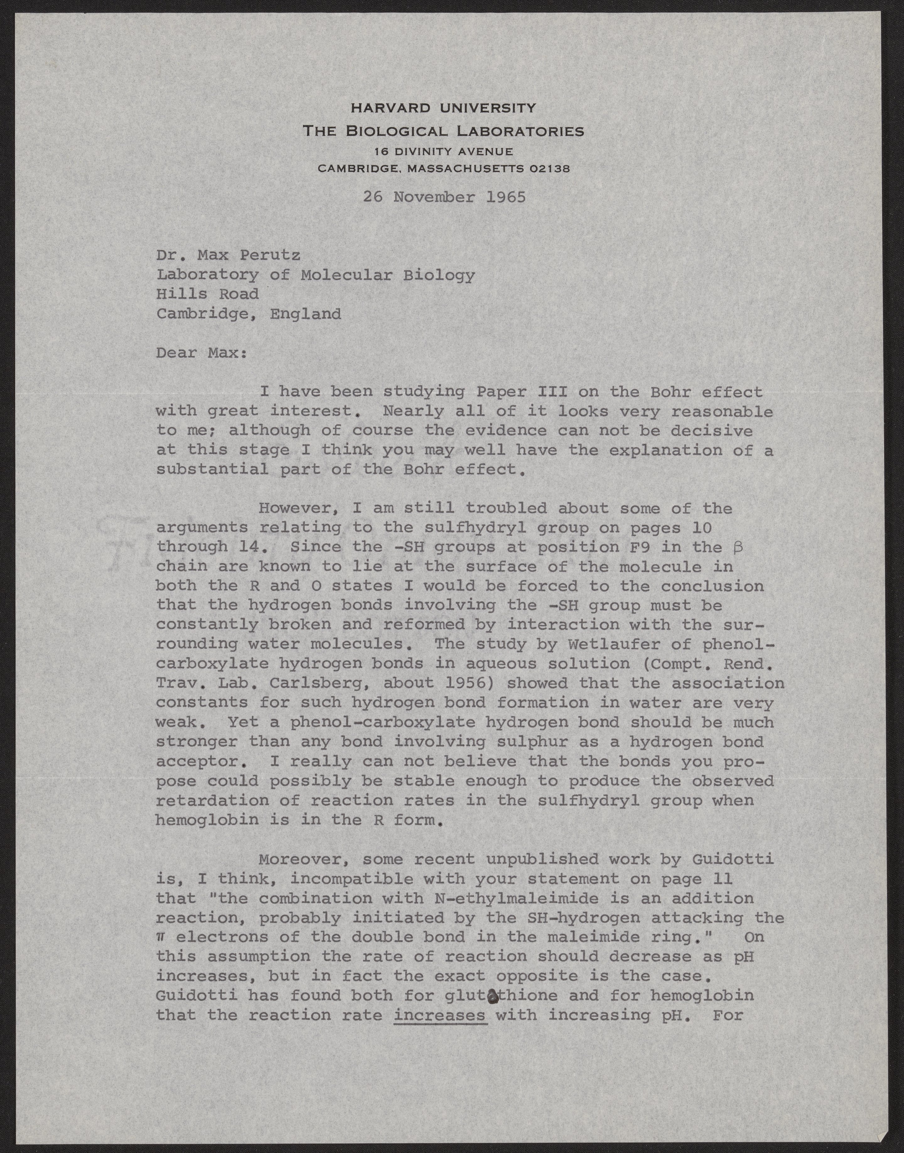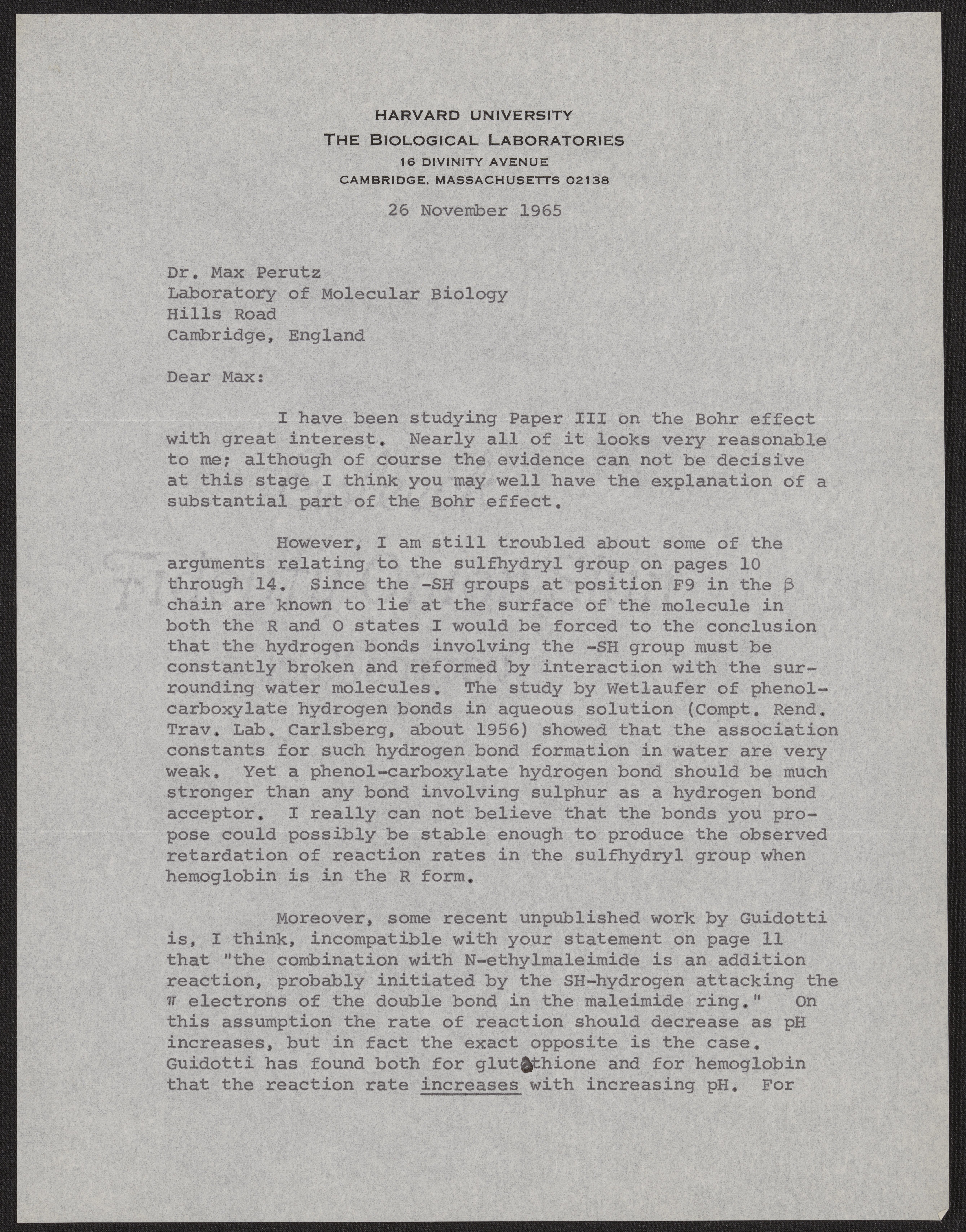 Edsall, John T. (John Tileston). “Letter from John T. Edsall to Max Perutz, November 26, 1965,” November 26, 1965. History of Molecular Biology Collection, Box 74, Folder 12. Science History Institute. Philadelphia. https://digital.sciencehistory.org/works/cnrffsb.