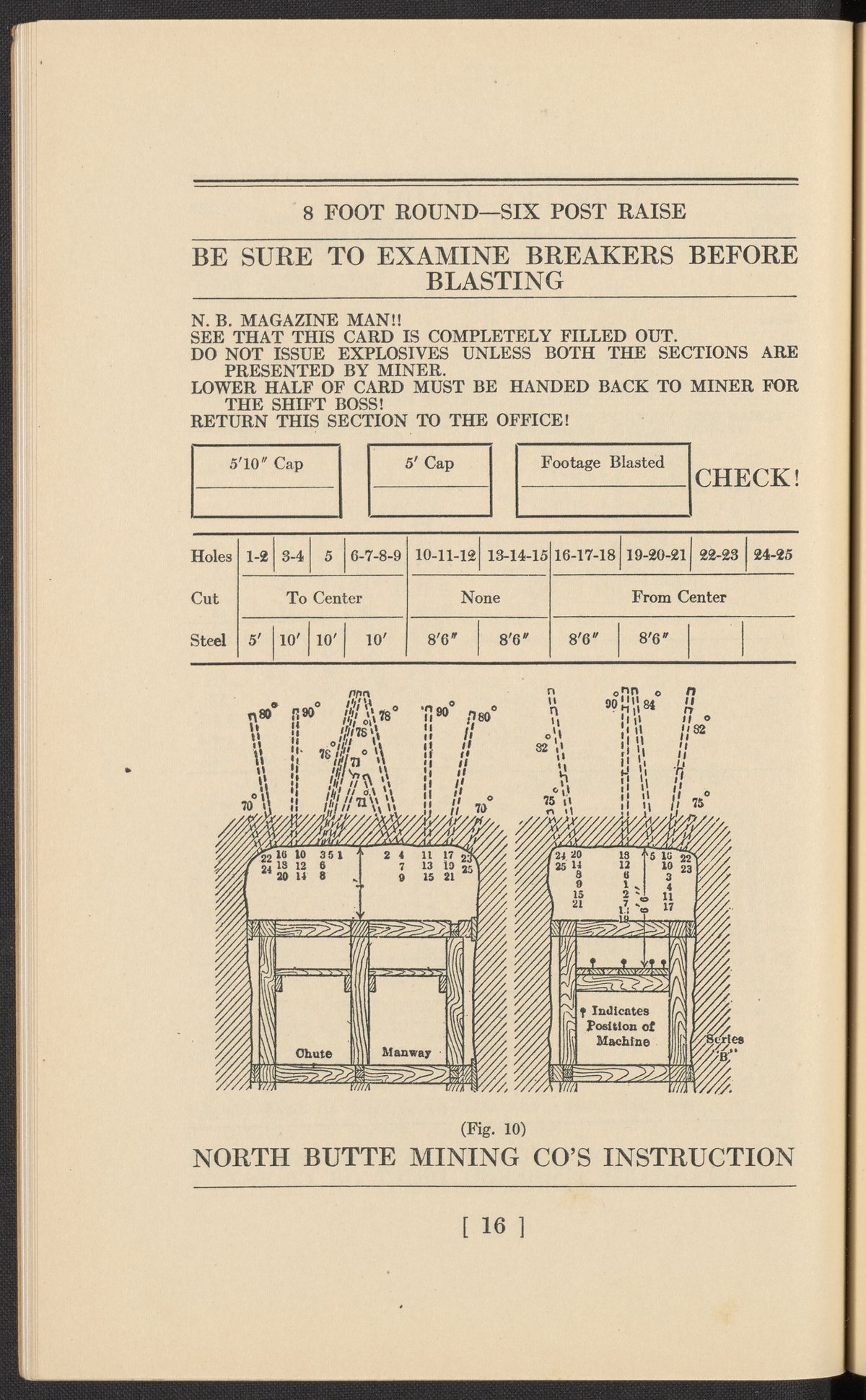 Small JPG1200 x 1771px — 354 KBFull-sized JPG2524 x 3724px — 1.4 MBOriginal fileTIFF — 2524 x 3724px — 26.9 MBBooklet describing methods for eliminating waste in blasting while mining, quarrying, or other work requiring explosives. Recommendations are made after studies completed by the Hercules Powder Company at the Copper Queen mine in Bisbee, Arizona. Provides suggestions for proper planning and drilling as well as explosives selection, distribution, and firing. Work includes several photographic prints and advertisements for Hercules Powder products and services. Back cover includes an illustration containing unsubstantiated and stereotyped imagery of ancient Jewish or Egyptian people and possibly depicting enslavement.