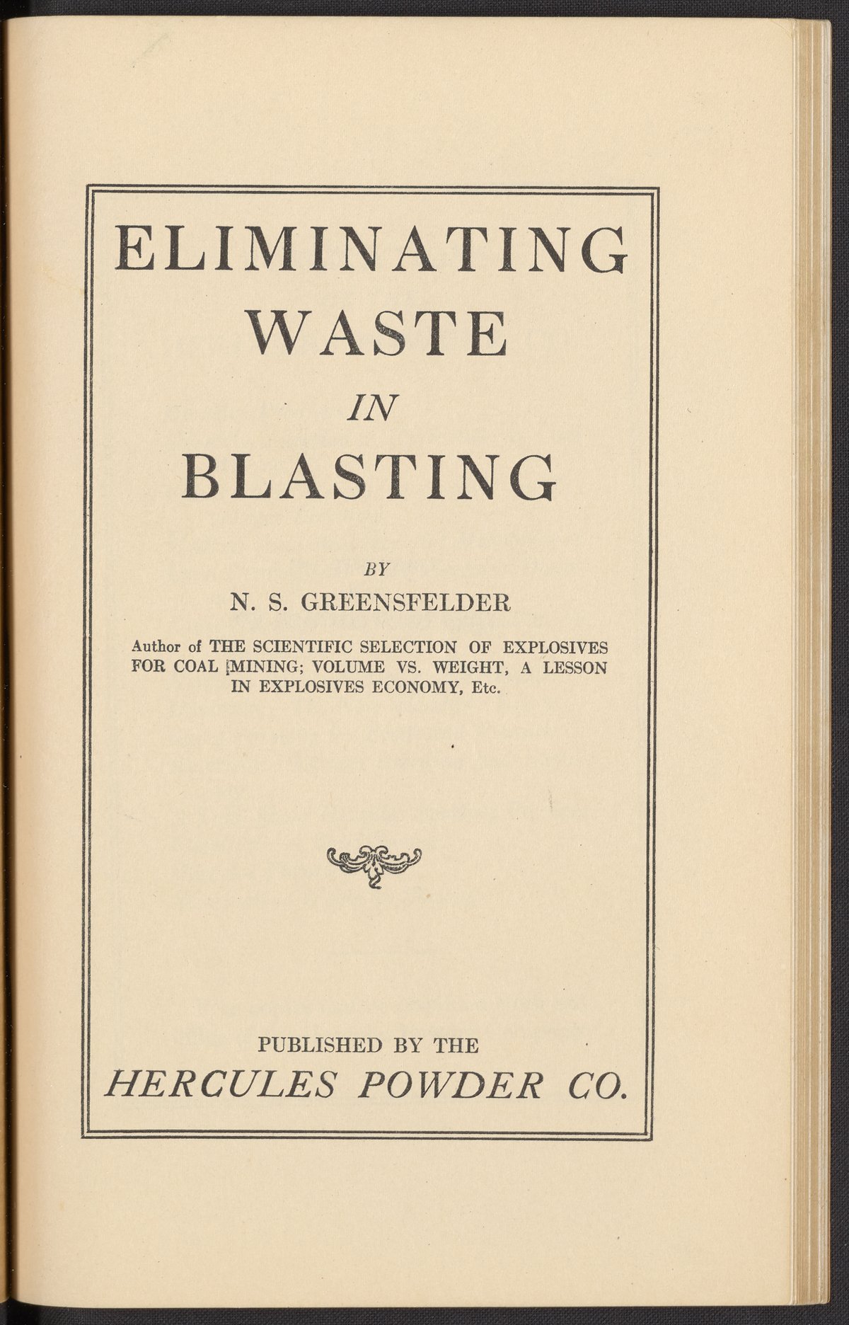 Greensfelder, N. S. (Nelson Sutro). “Eliminating Waste in Blasting.” Wilmington, Delaware: Hercules Powder Company, 1922. TN279 .G75 1922. Science History Institute. Philadelphia. https://digital.sciencehistory.org/works/codnv5o.