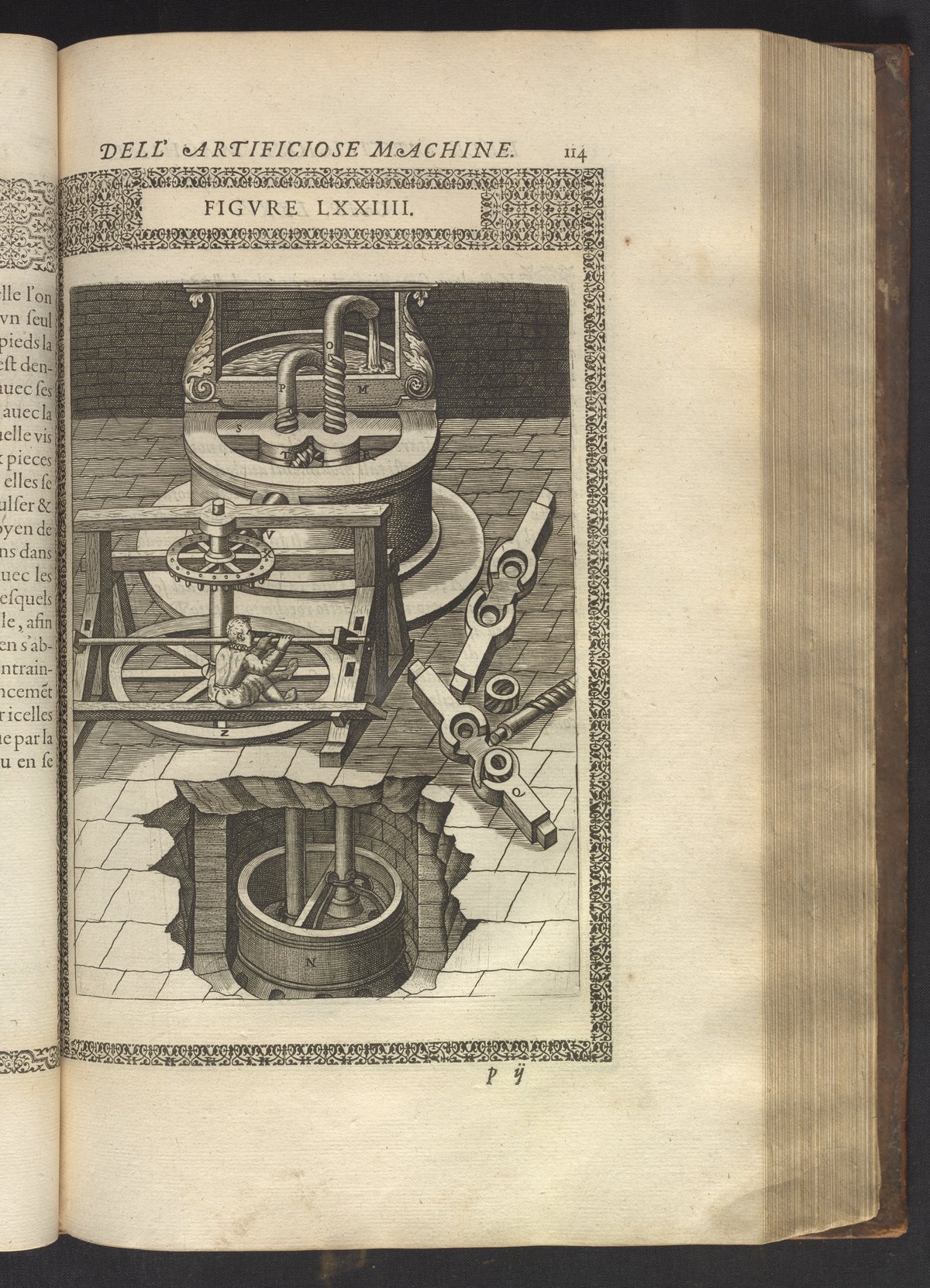 Ramelli, Agostino. “Plate 74: Single-Person-Operated Device for Drawing Water from a Well.” In Le Diverse Et Artificiose Machine Del Capitano Agostino Ramelli. Paris, France, 1588. https://digital.sciencehistory.org/works/cr56n121g.