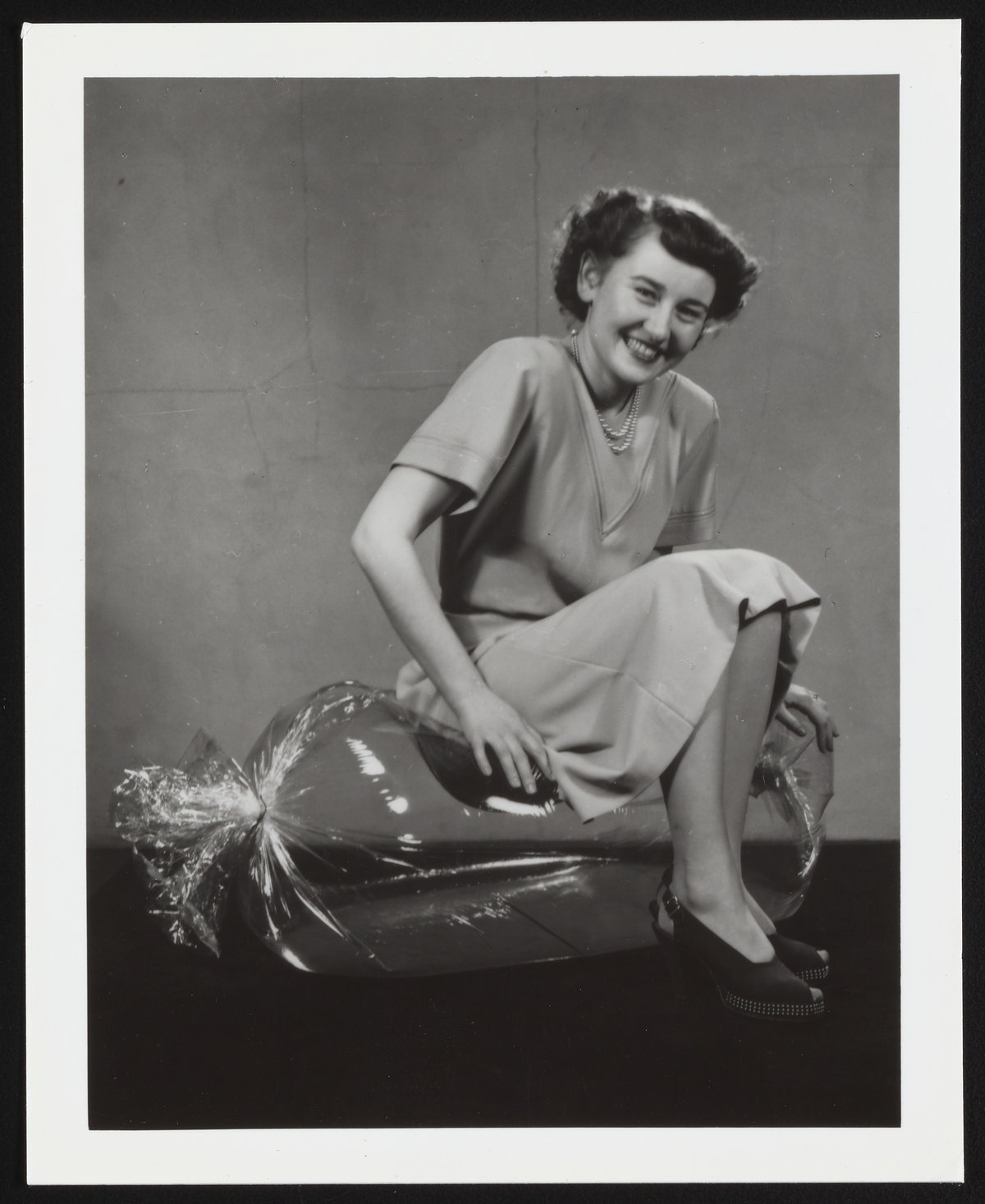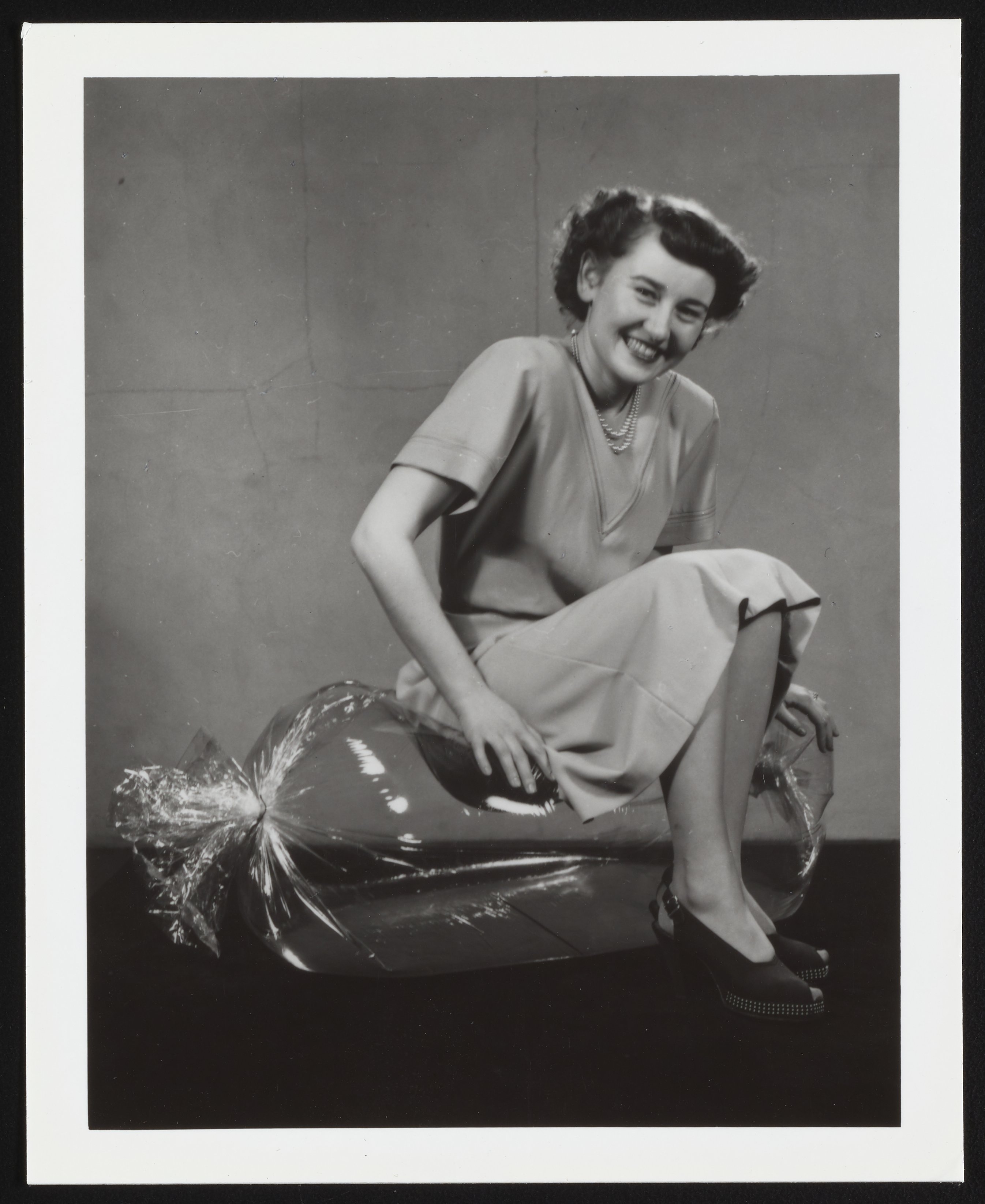 Dow Chemical Company. “Model Sitting on Styron Packaging,” 1946. Dow Chemical Company Historical Image Collection, Box 4, Folder Products--Styron. Science History Institute. Philadelphia. https://digital.sciencehistory.org/works/cr56n1915.
