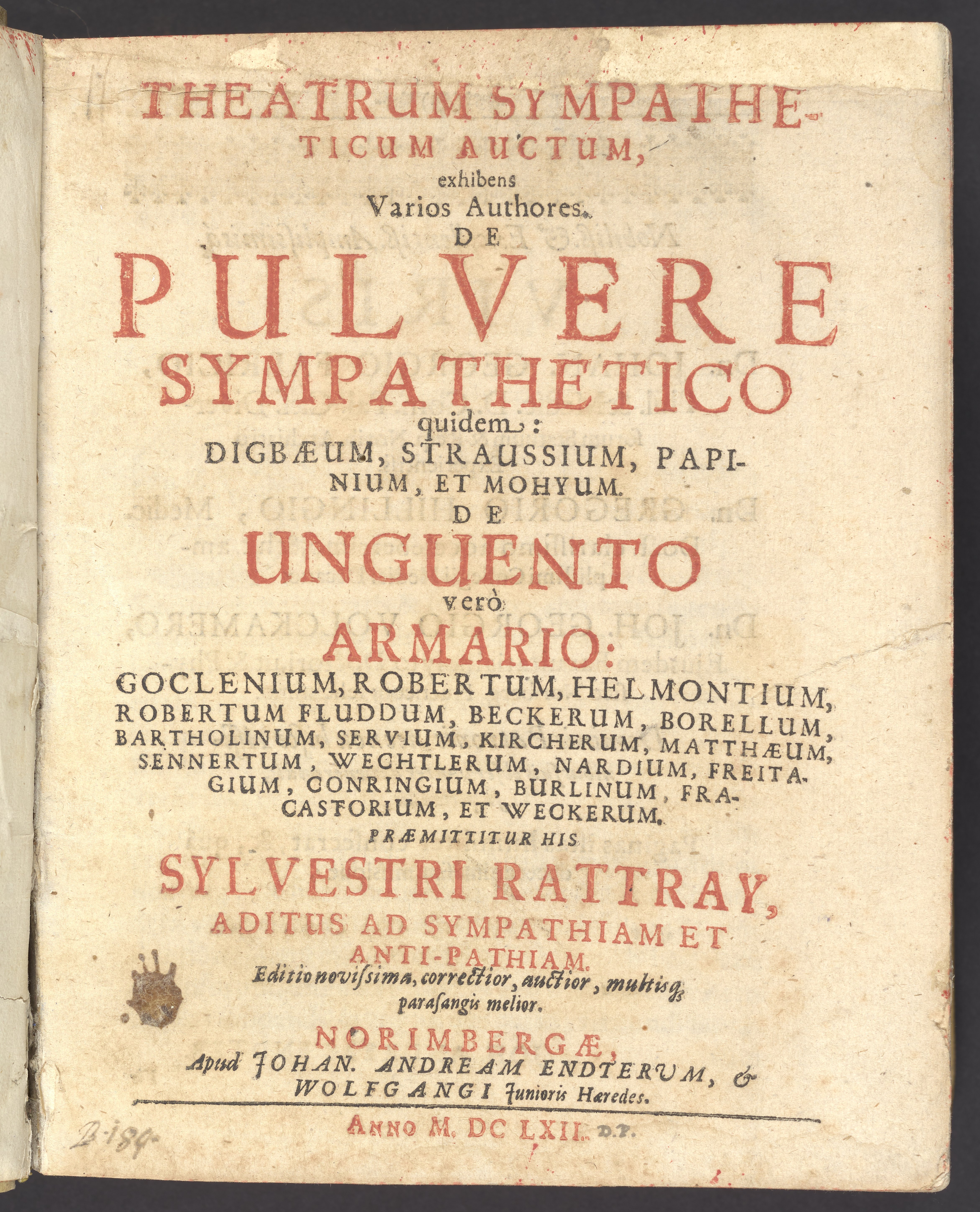 Theatrum Sympatheticum Auctum. Apud J. A. Endterum et Wolfgangi junioris haeredes, 1662. https://digital.sciencehistory.org/works/crey5zr.