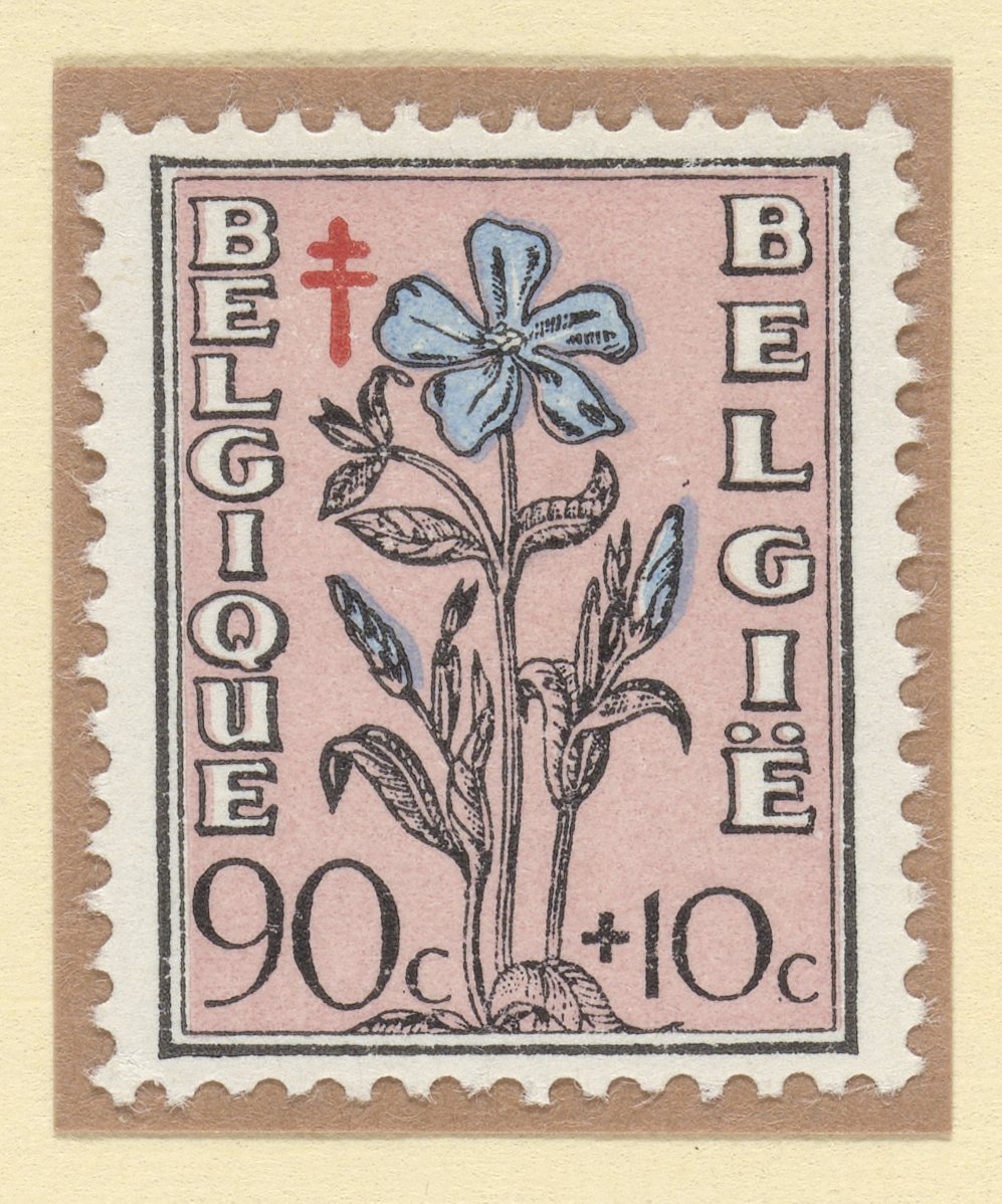 “Periwinkle (Vinca) Semi-Postal Stamp, Belgium,” 1949. Witco Stamp Collection, Box 5. Science History Institute. Philadelphia. https://digital.sciencehistory.org/works/cta0874.