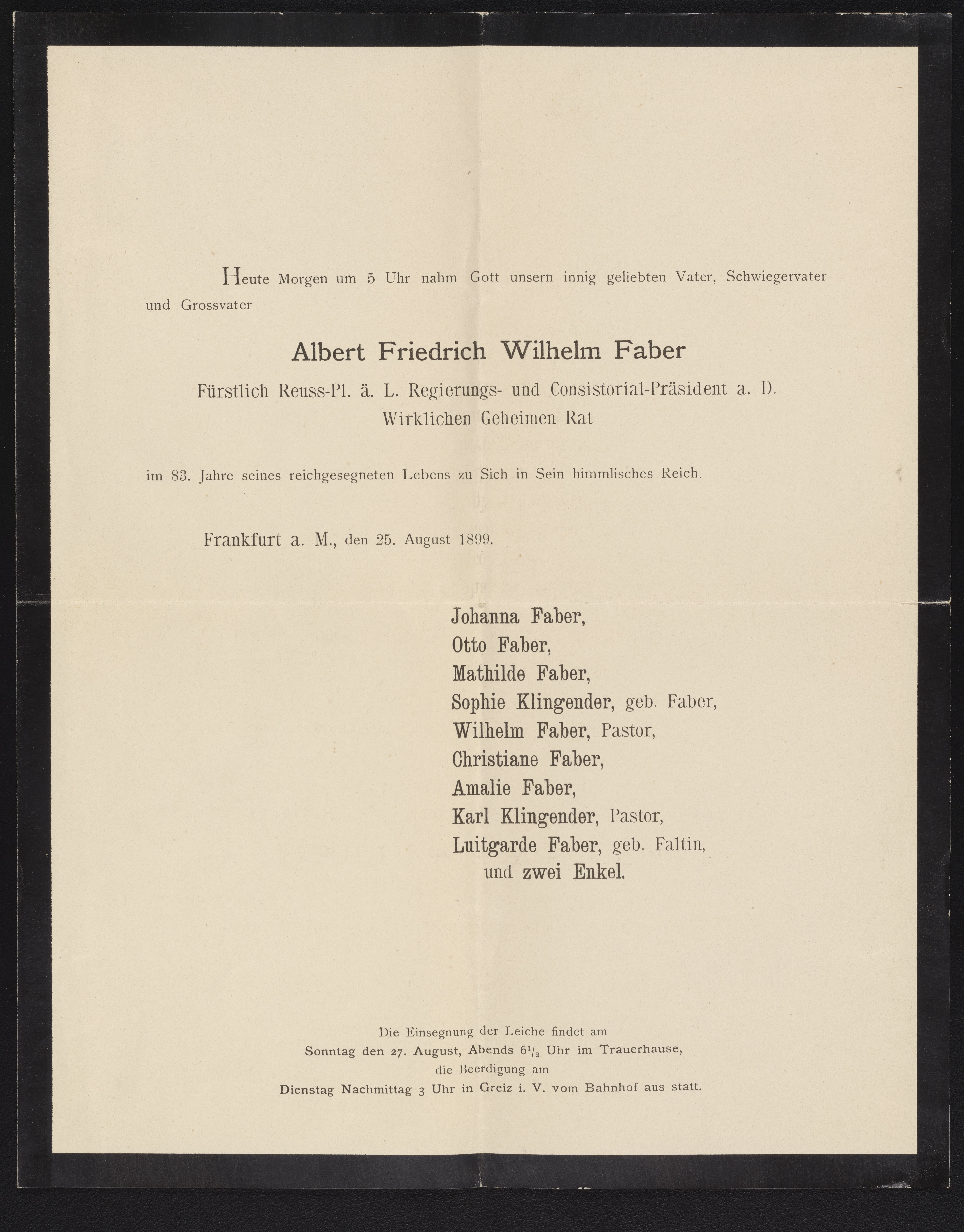 Memorial Announcement for Albert Friedrich Wilhelm Faber