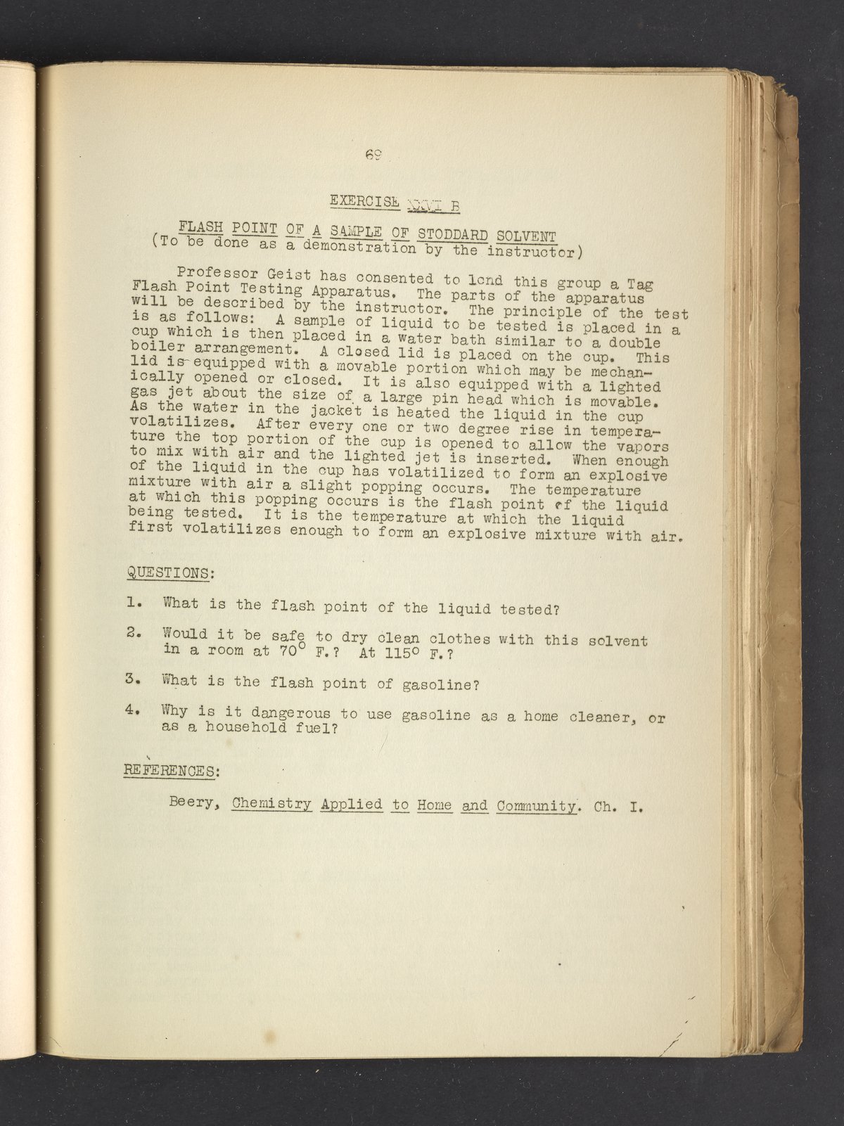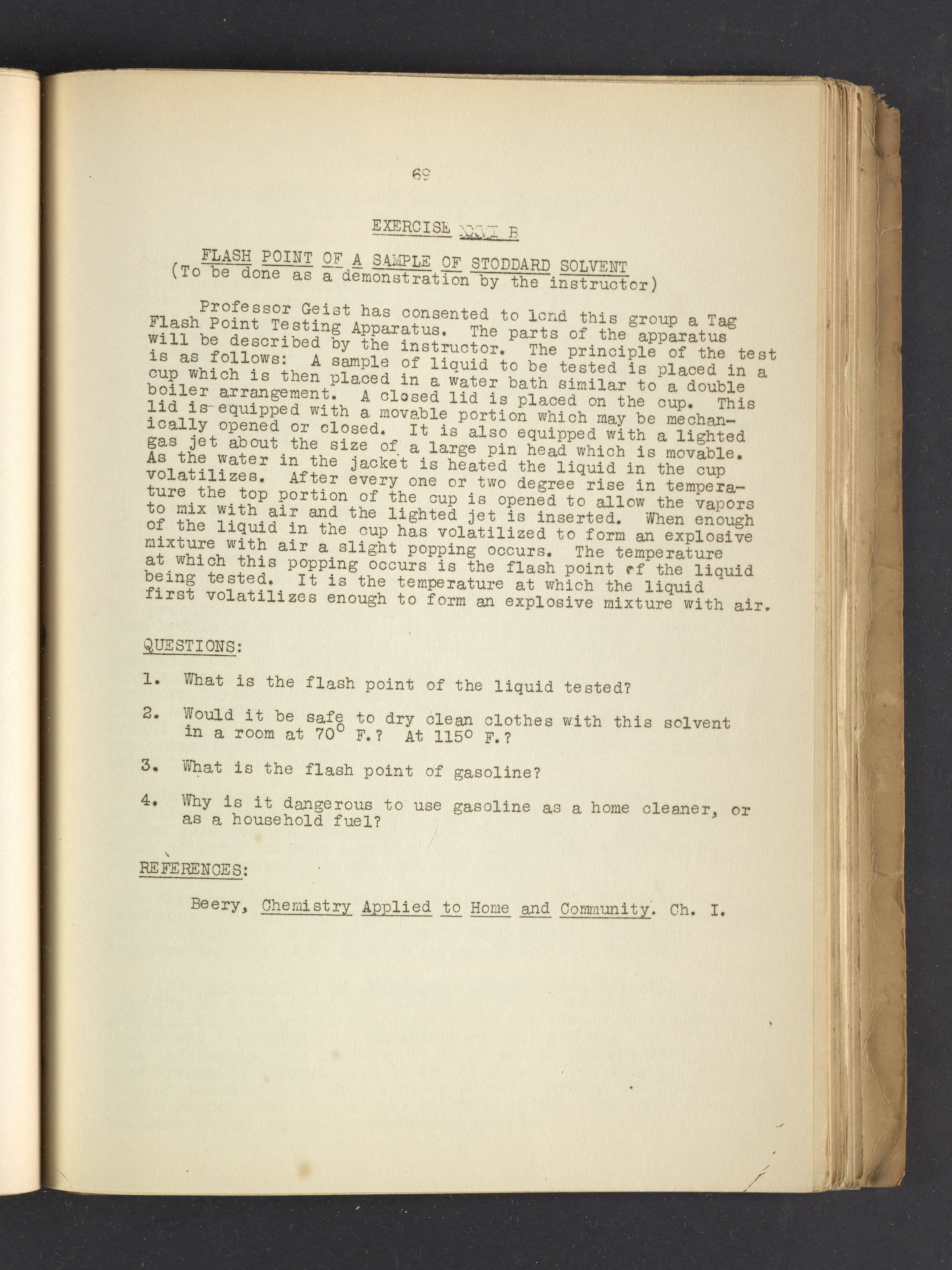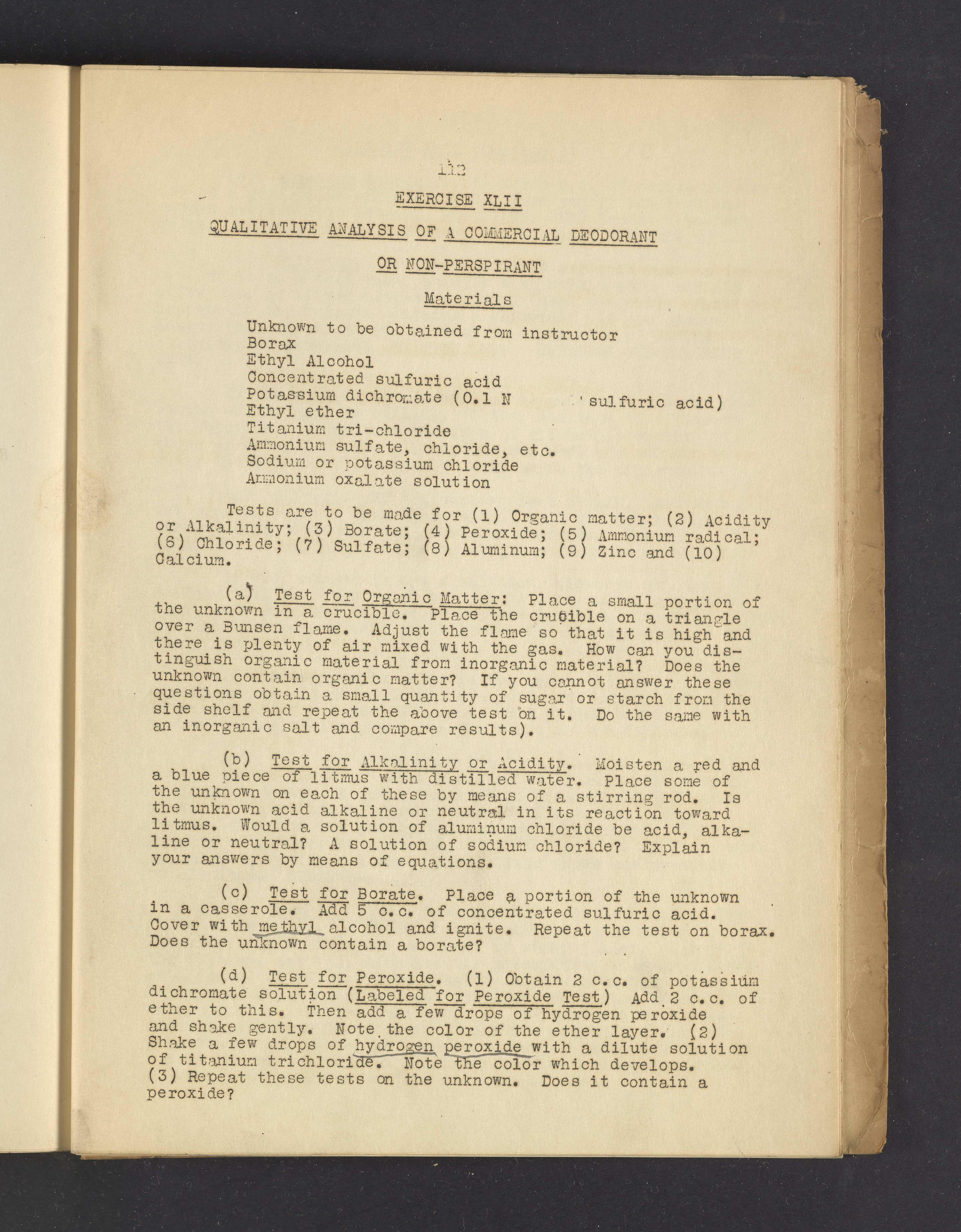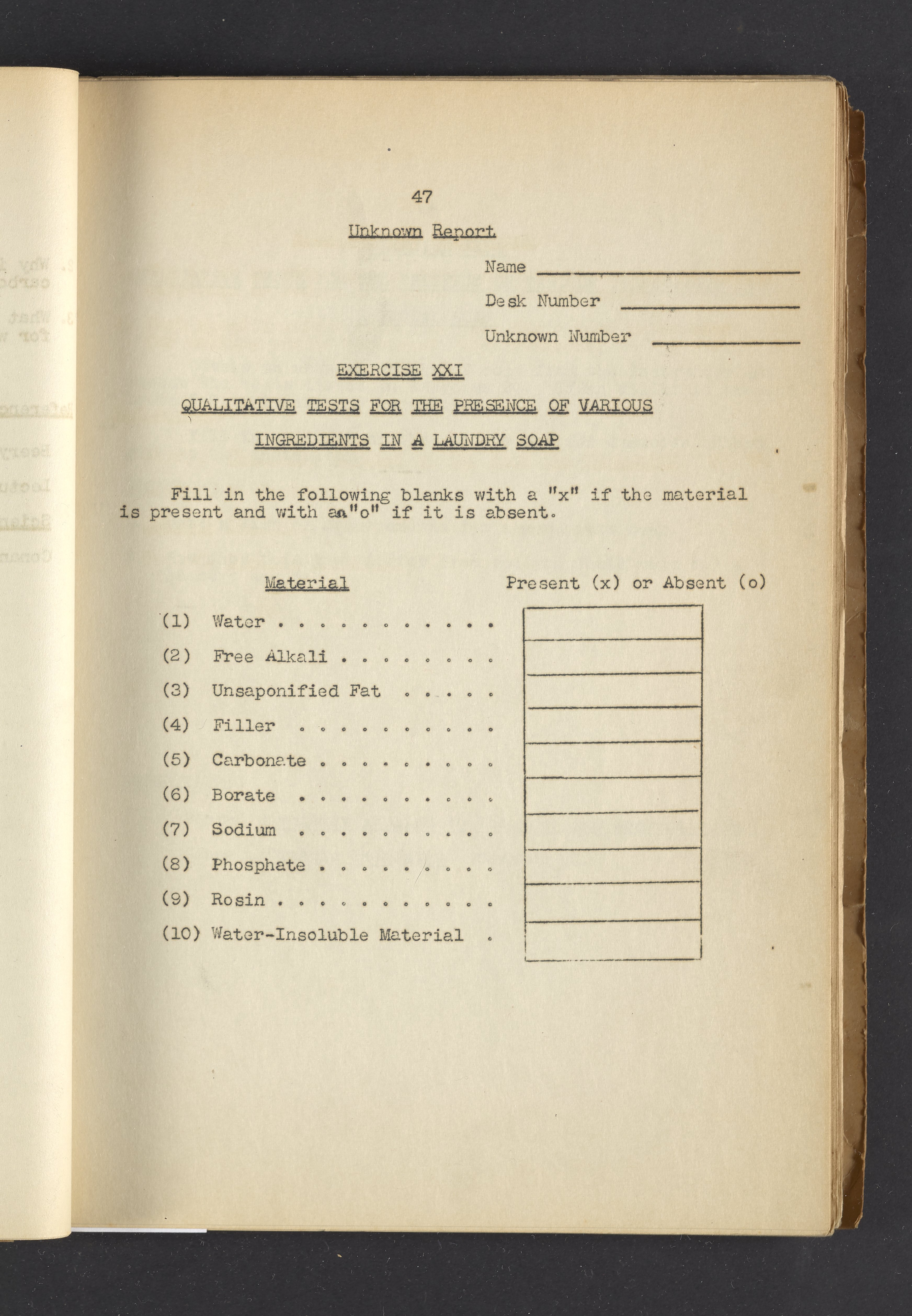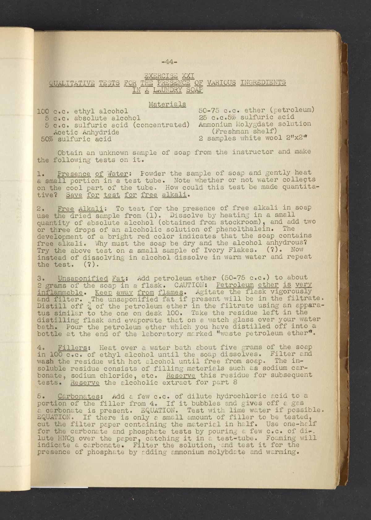 Laboratory exercises for Household and Organic Chemistry course at Pennsylvania State University