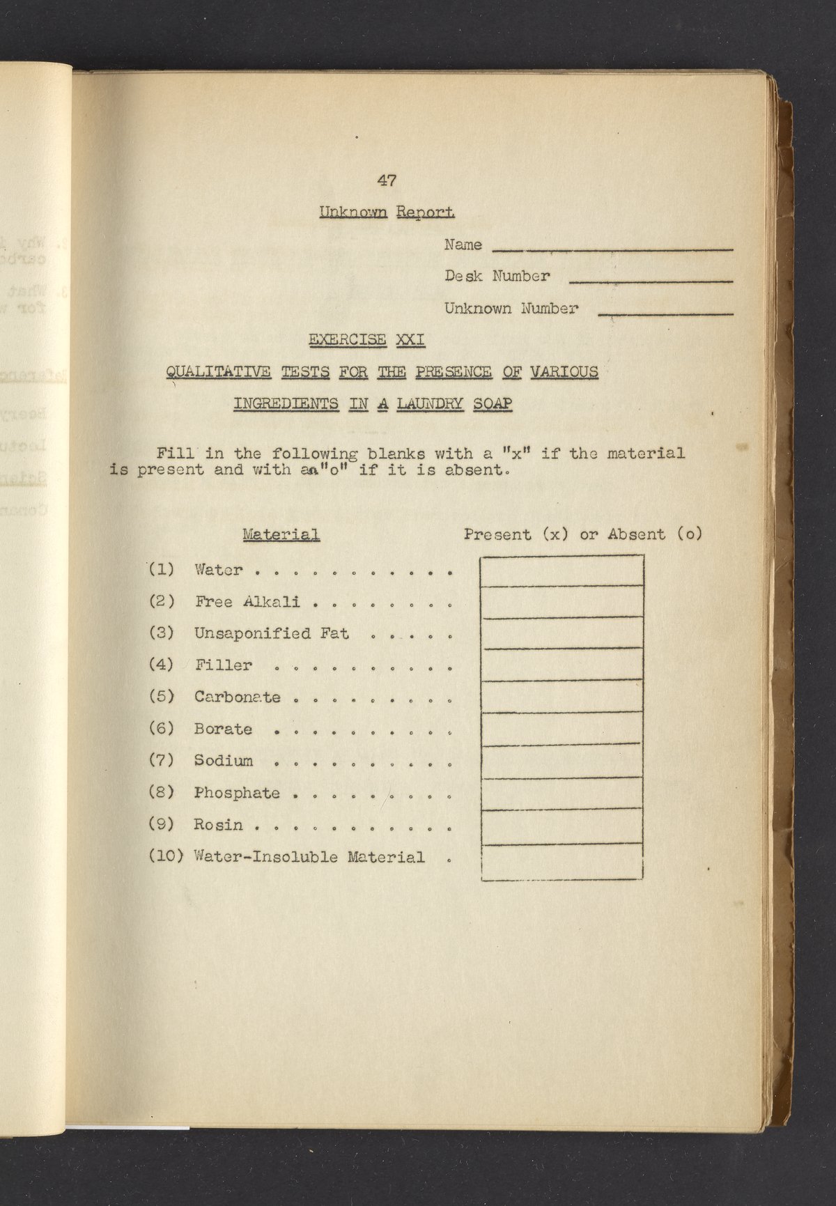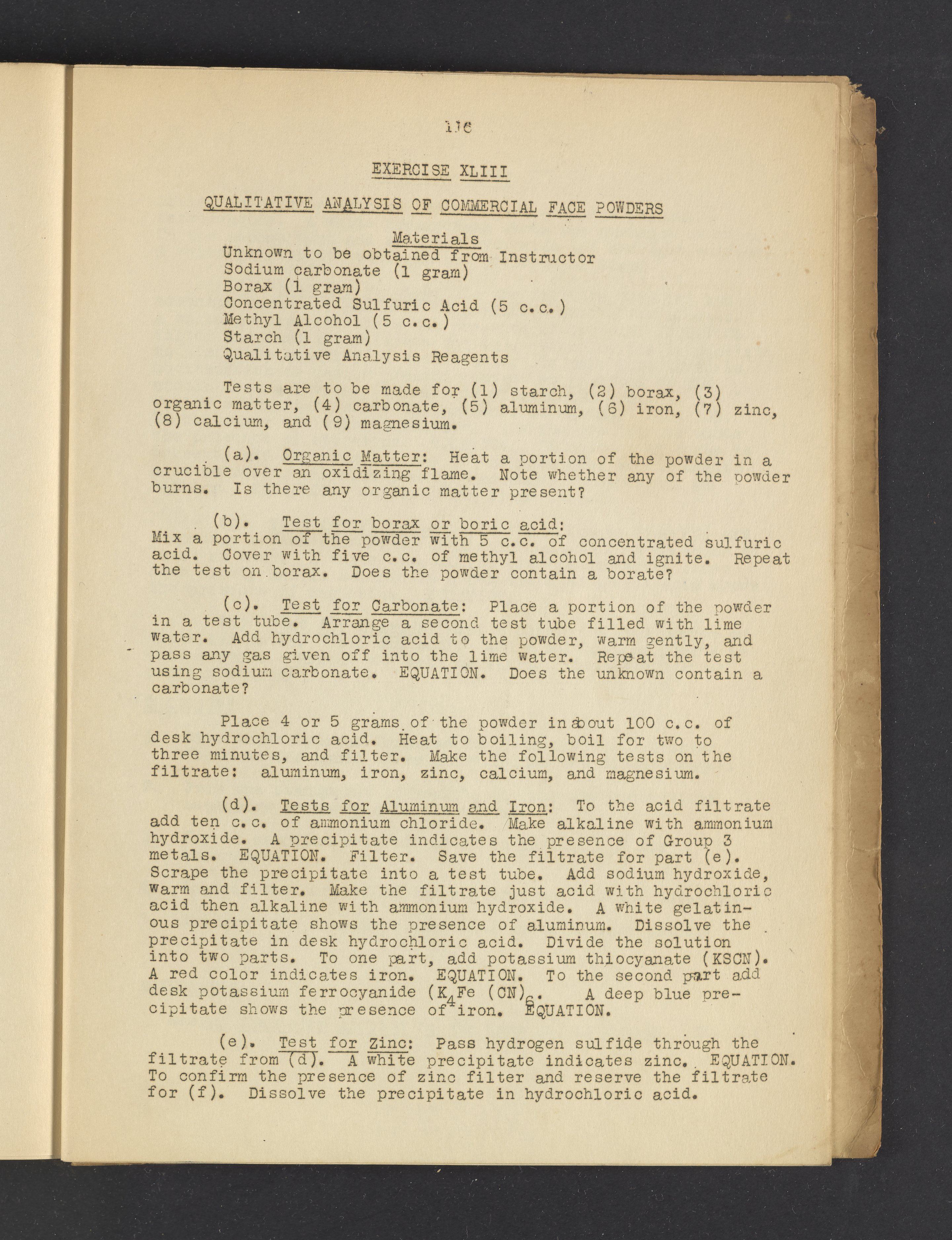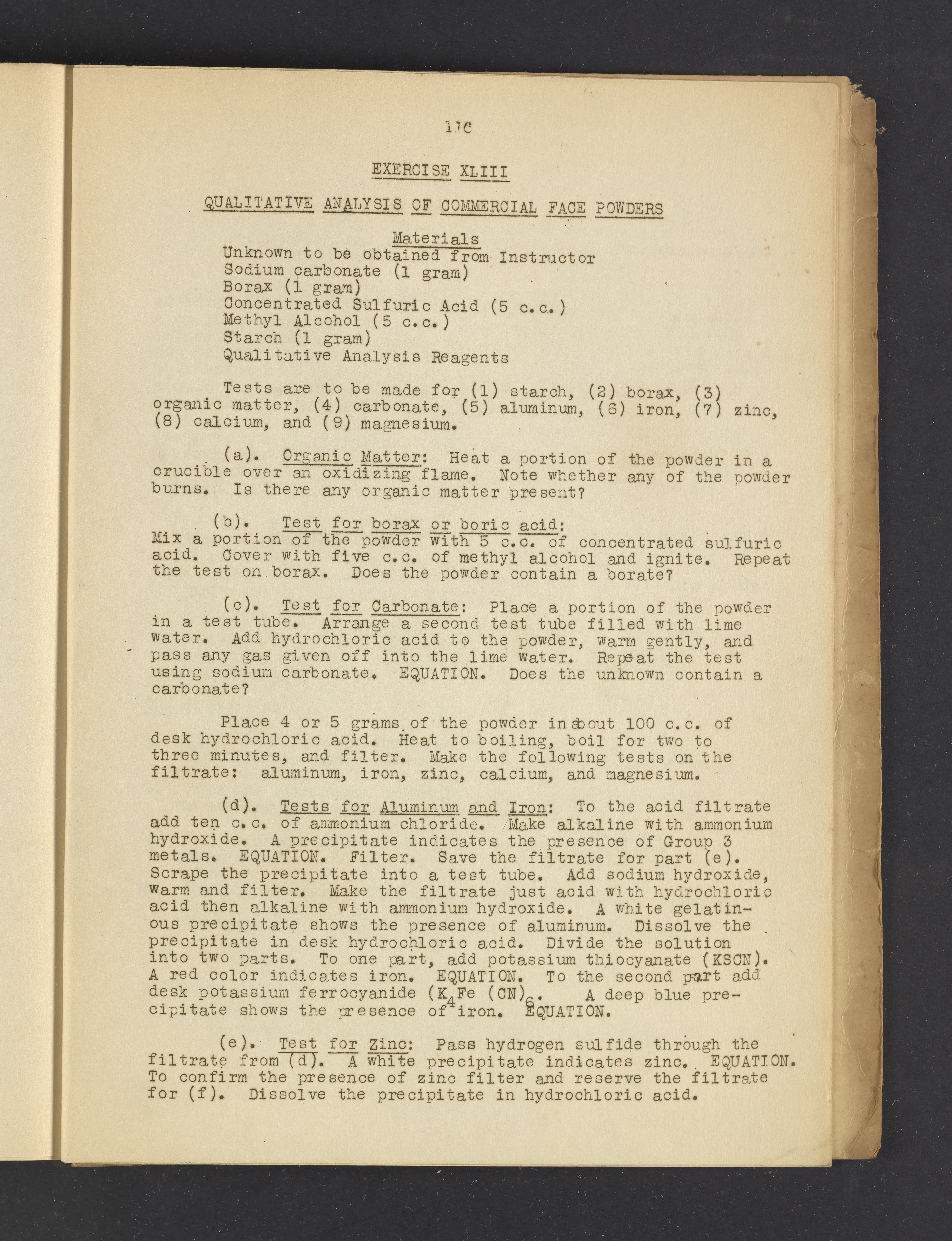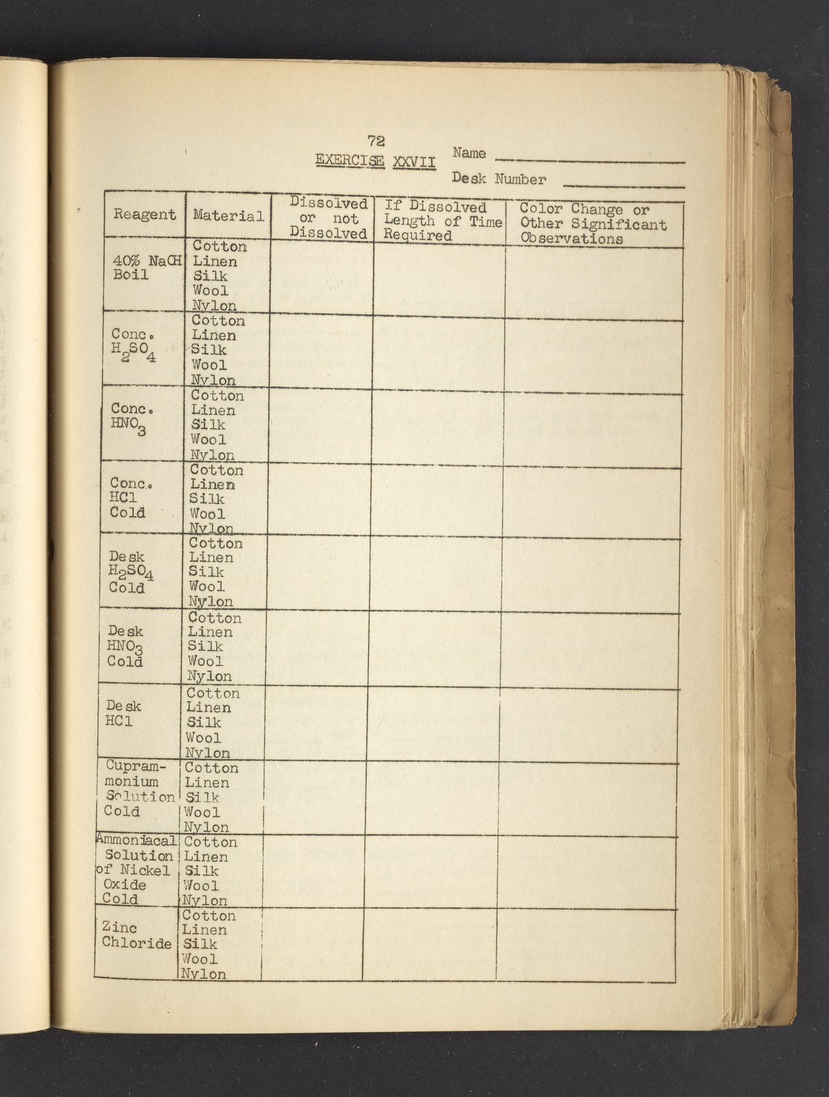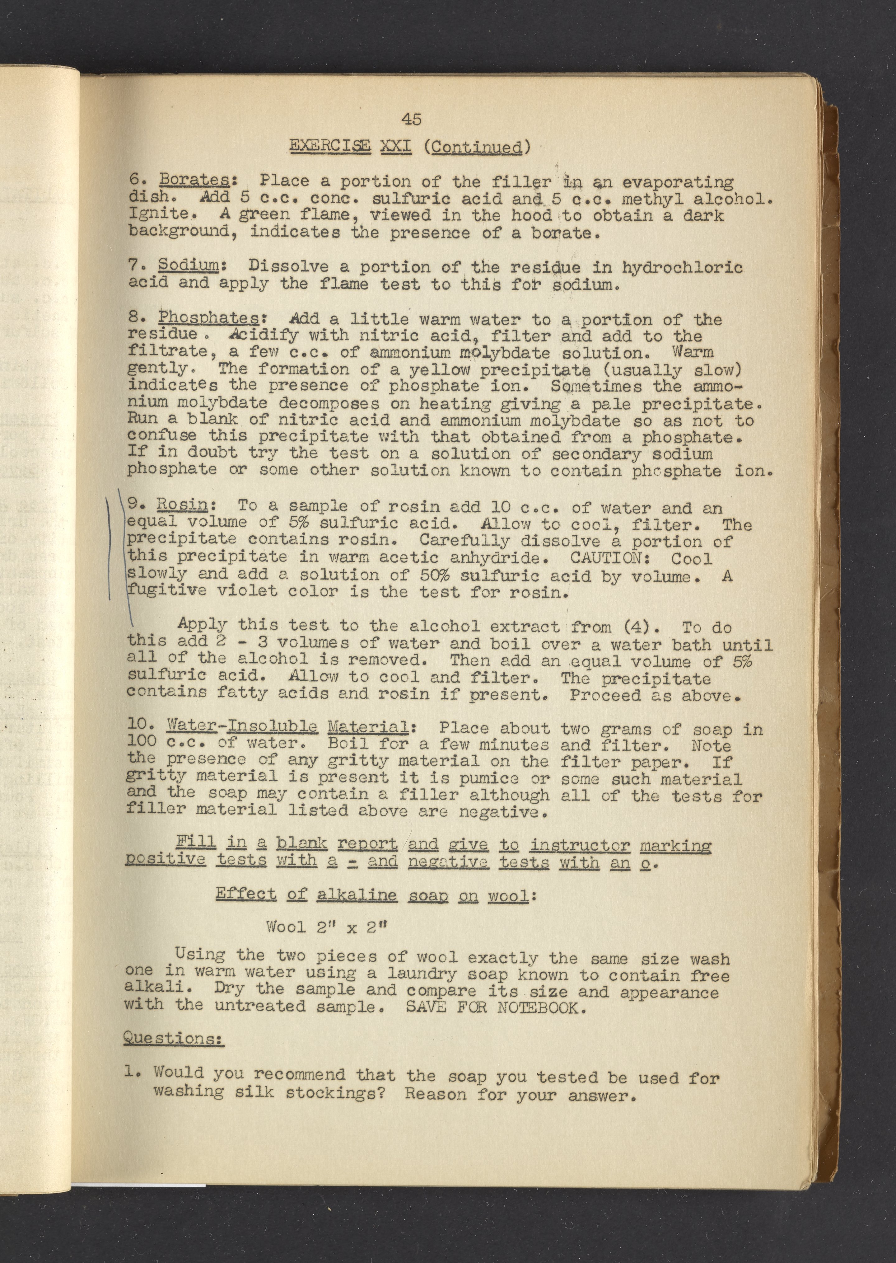Laboratory exercises for Household and Organic Chemistry course at Pennsylvania State University