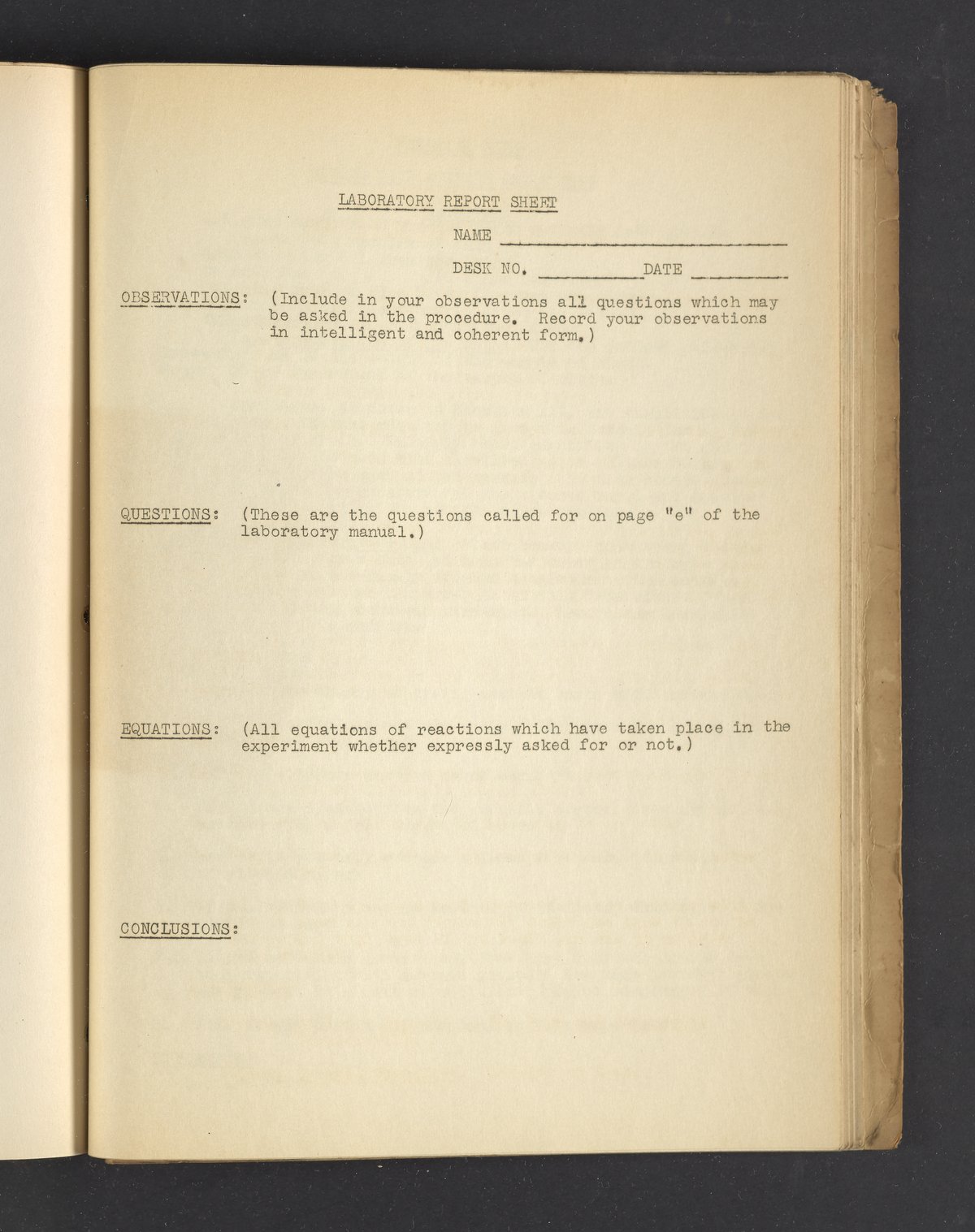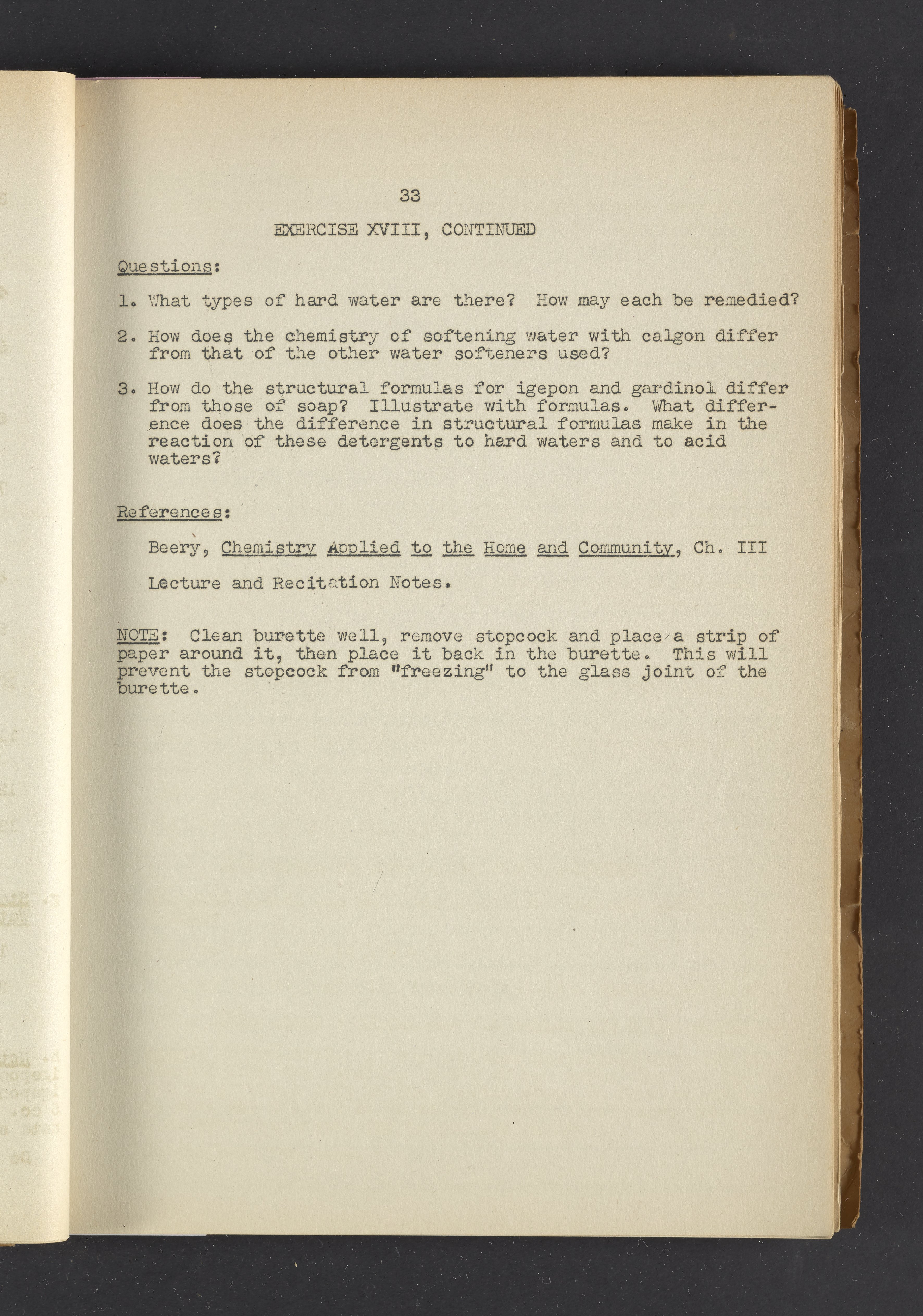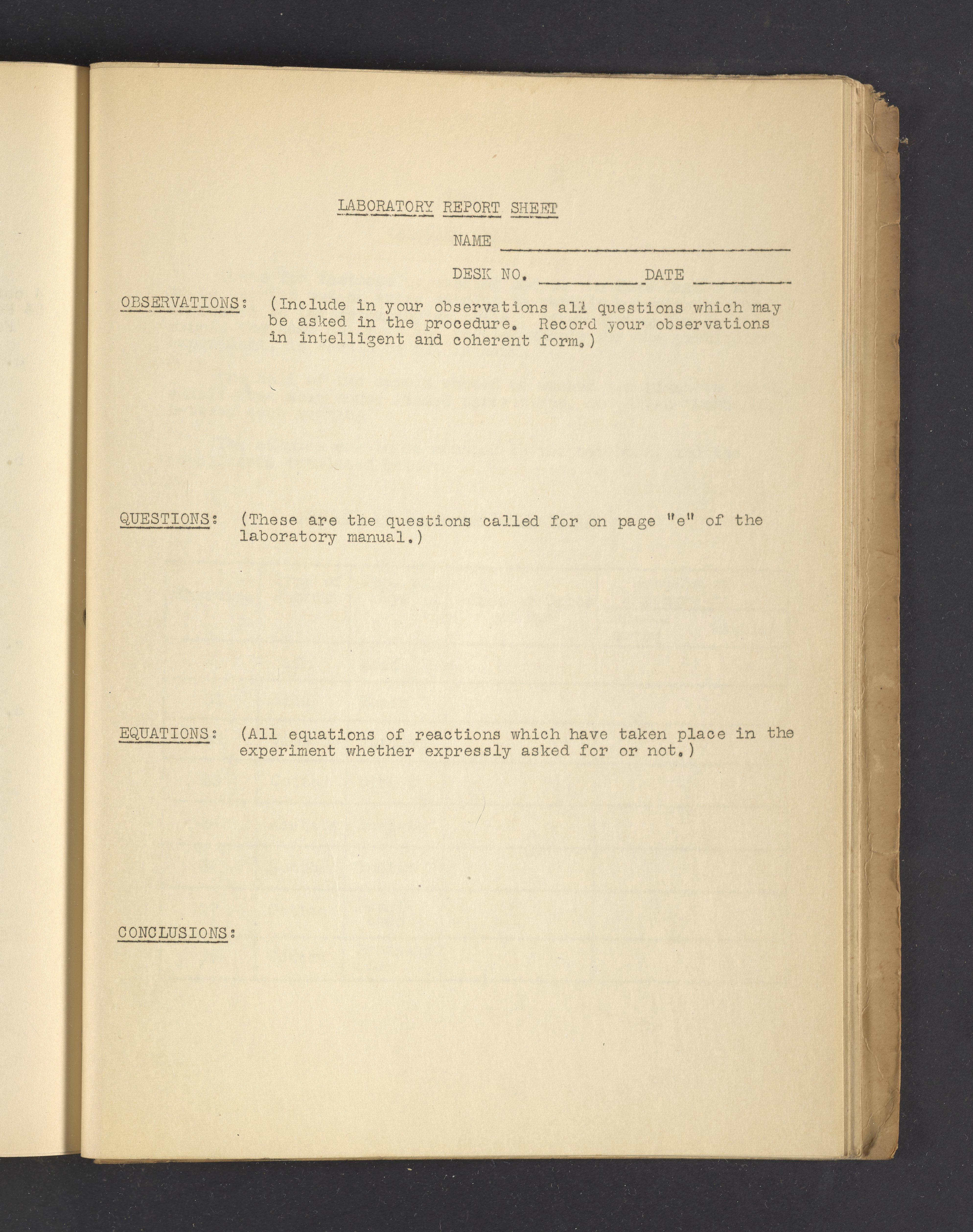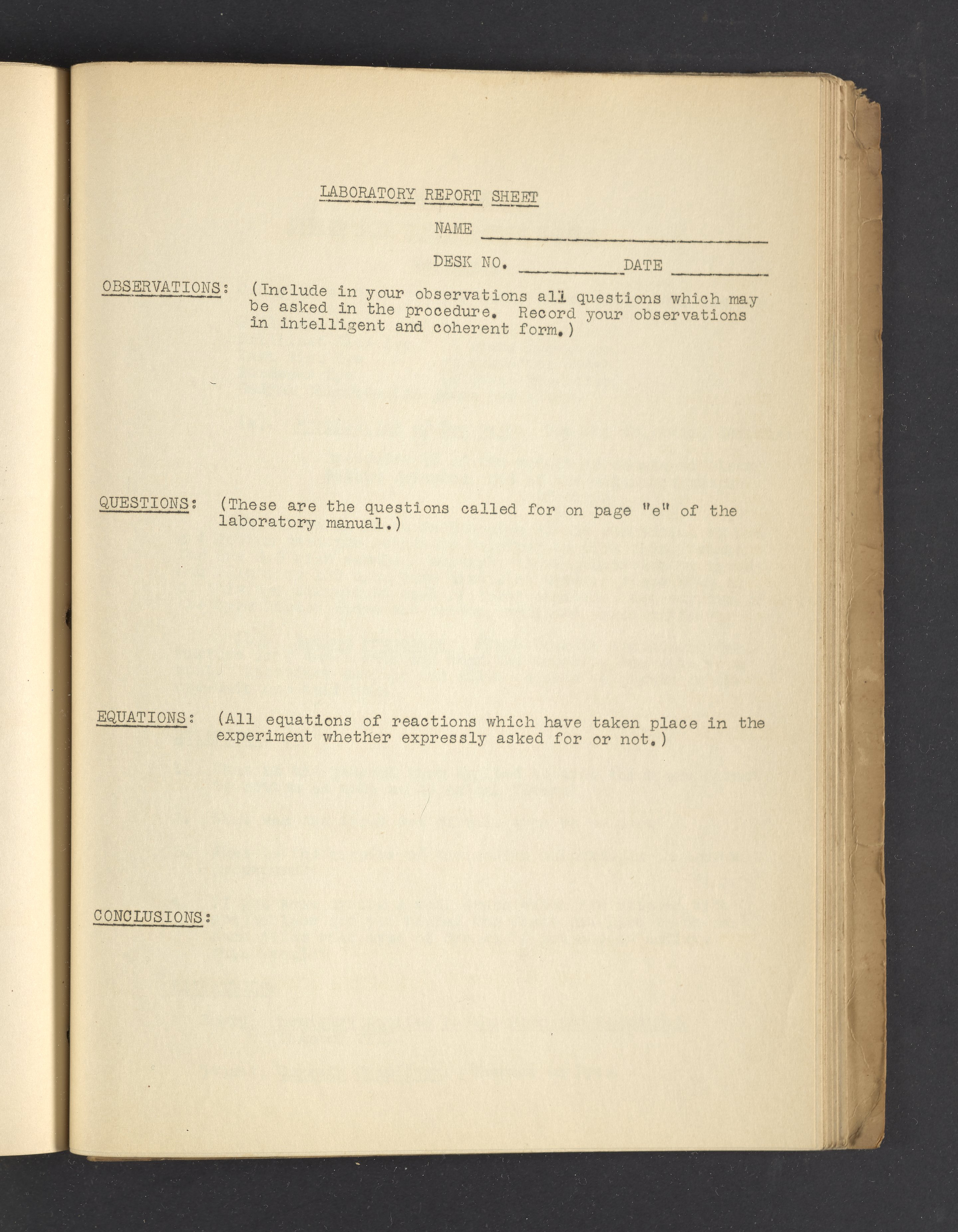 Laboratory exercises for Household and Organic Chemistry course at Pennsylvania State University