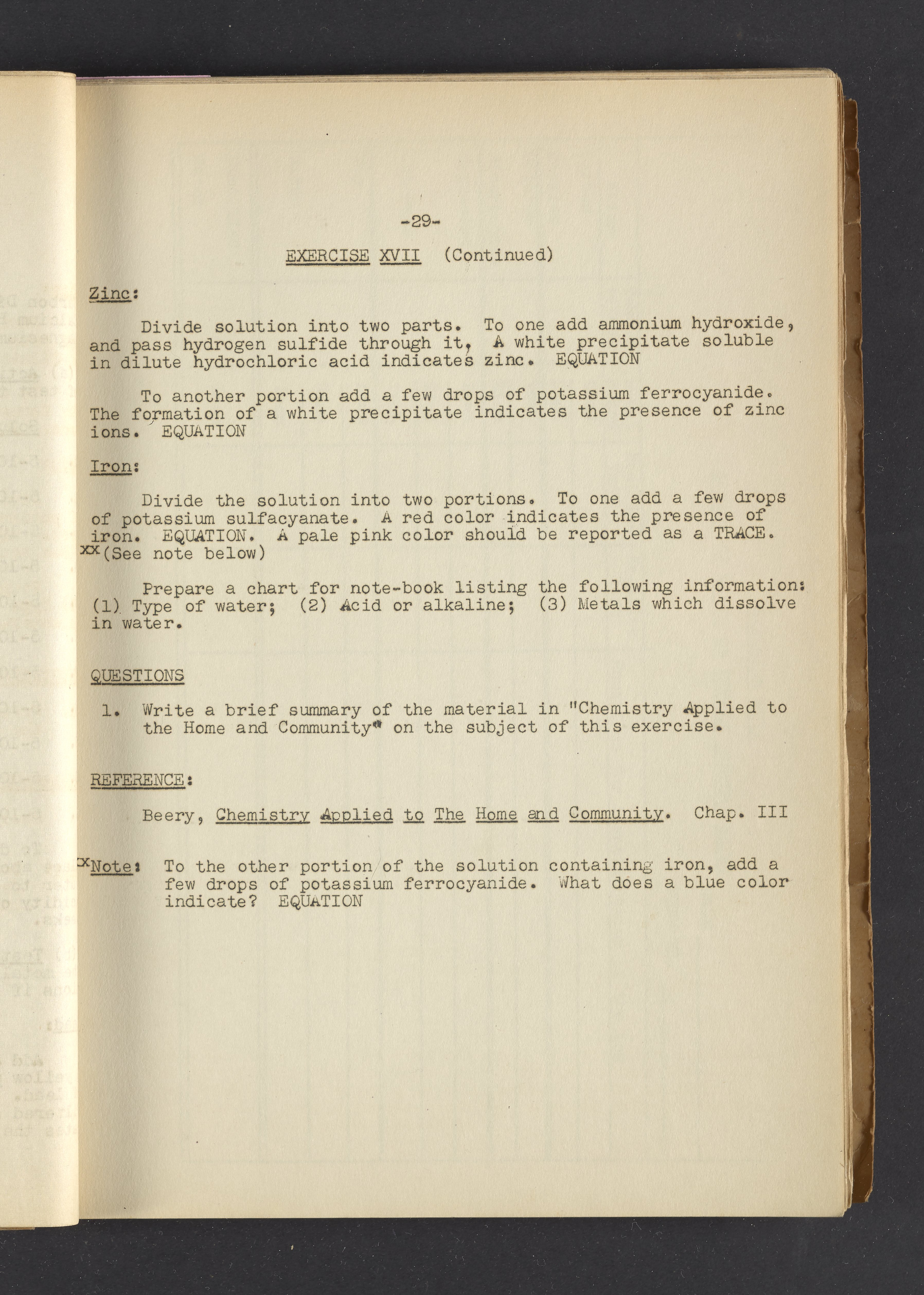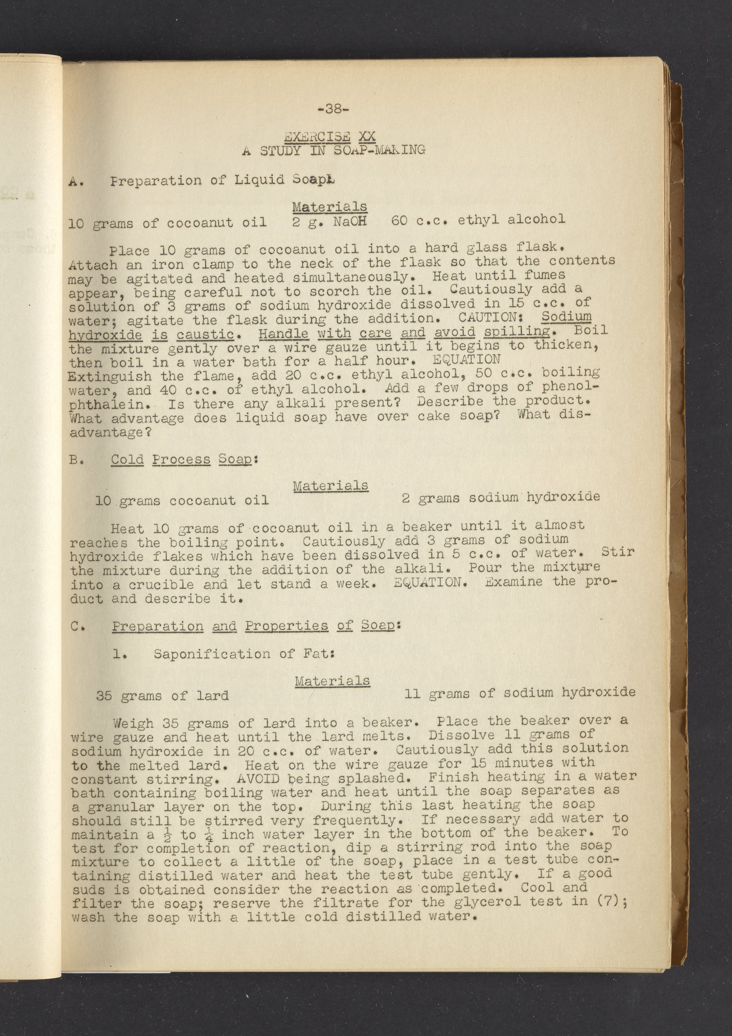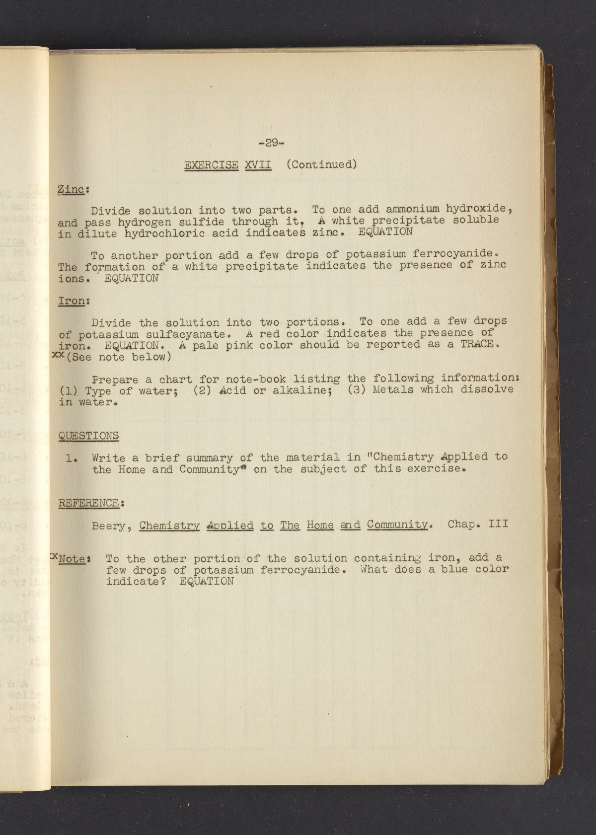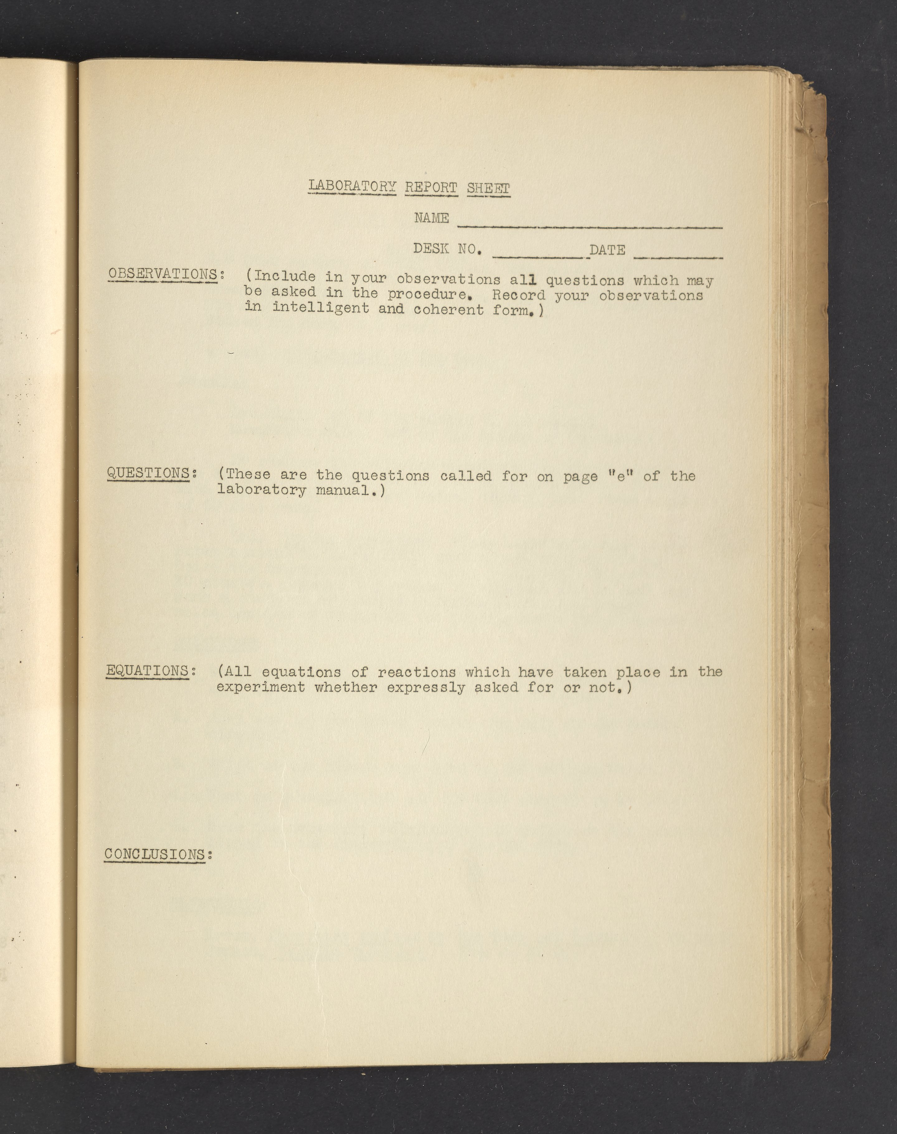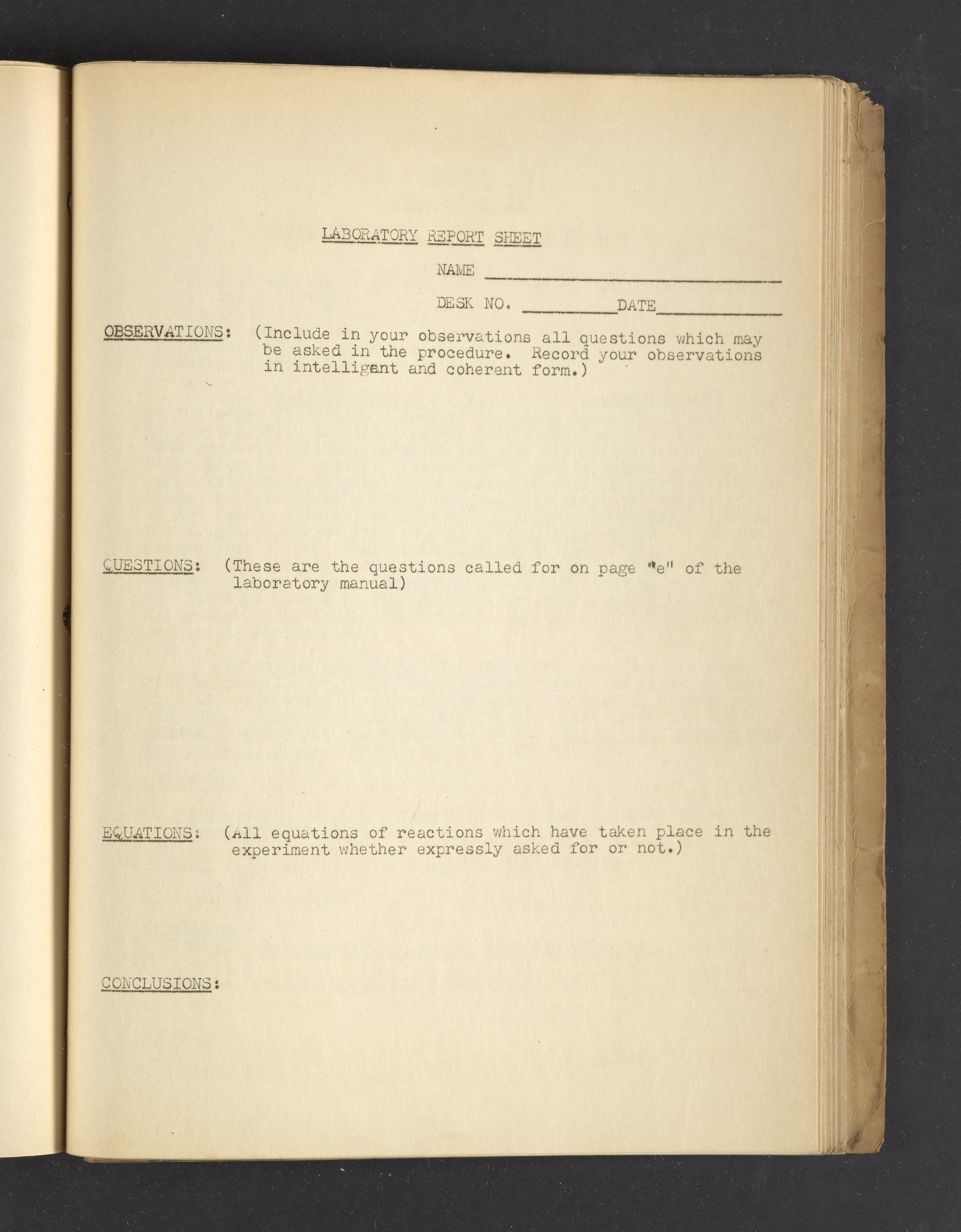 Laboratory exercises for Household and Organic Chemistry course at Pennsylvania State University