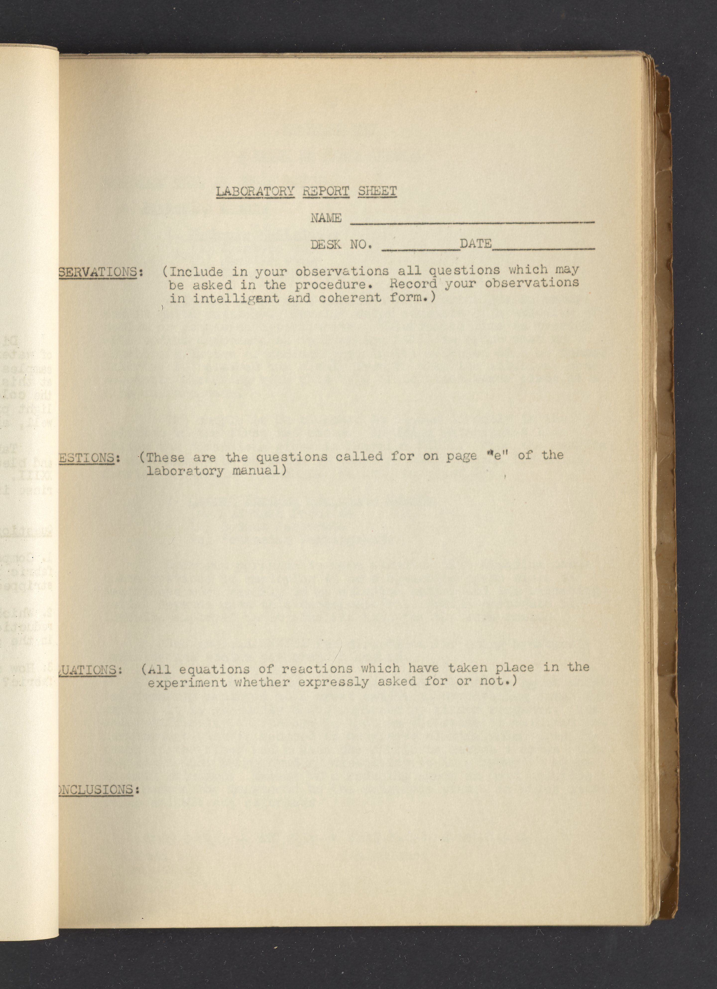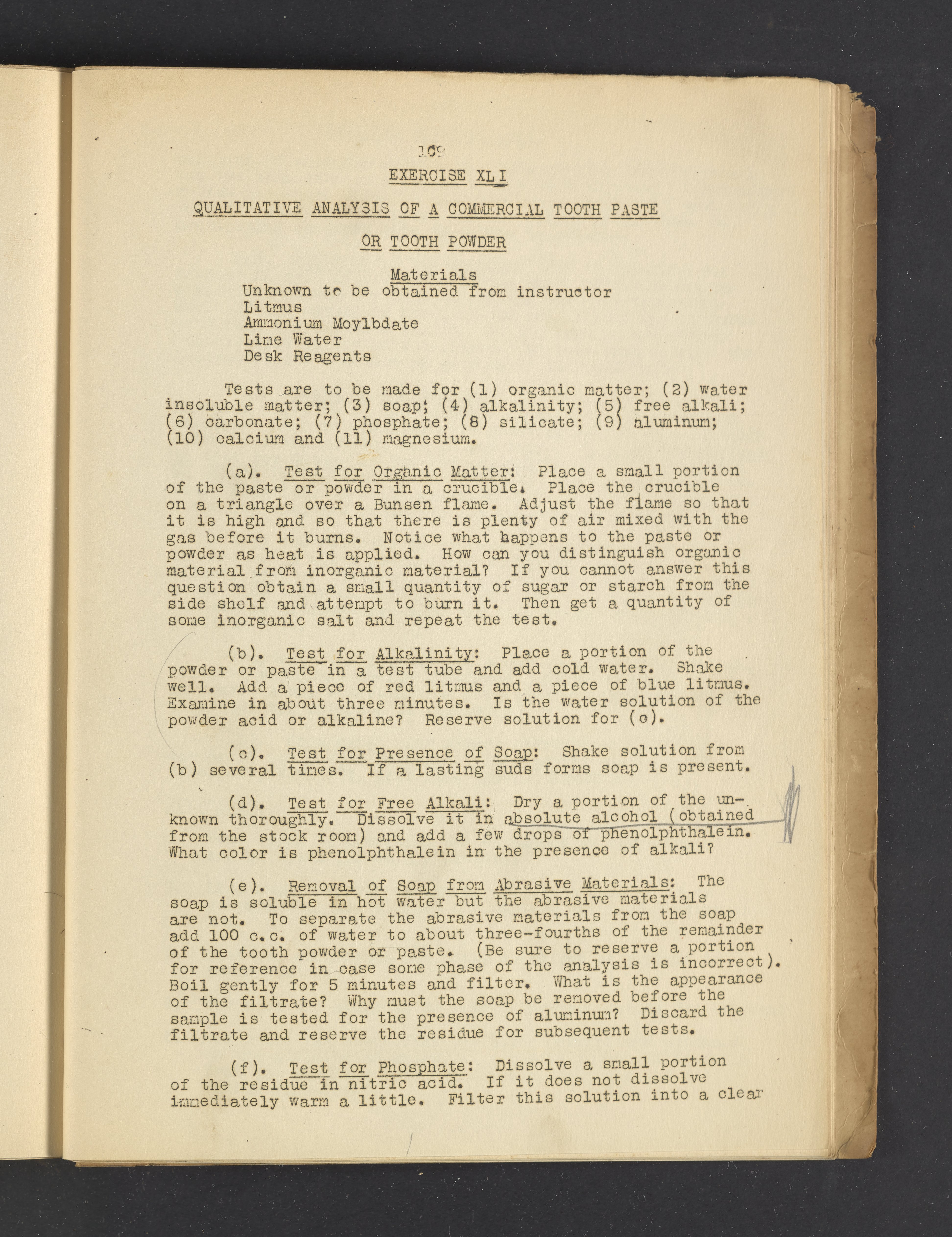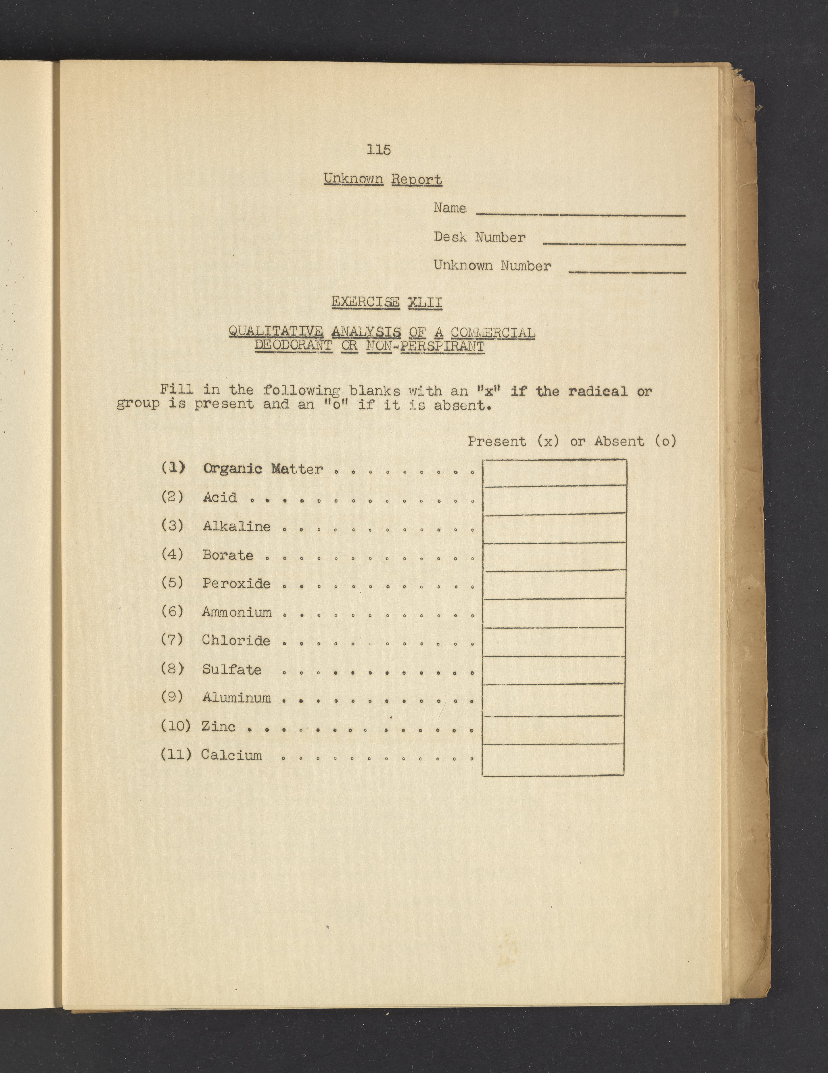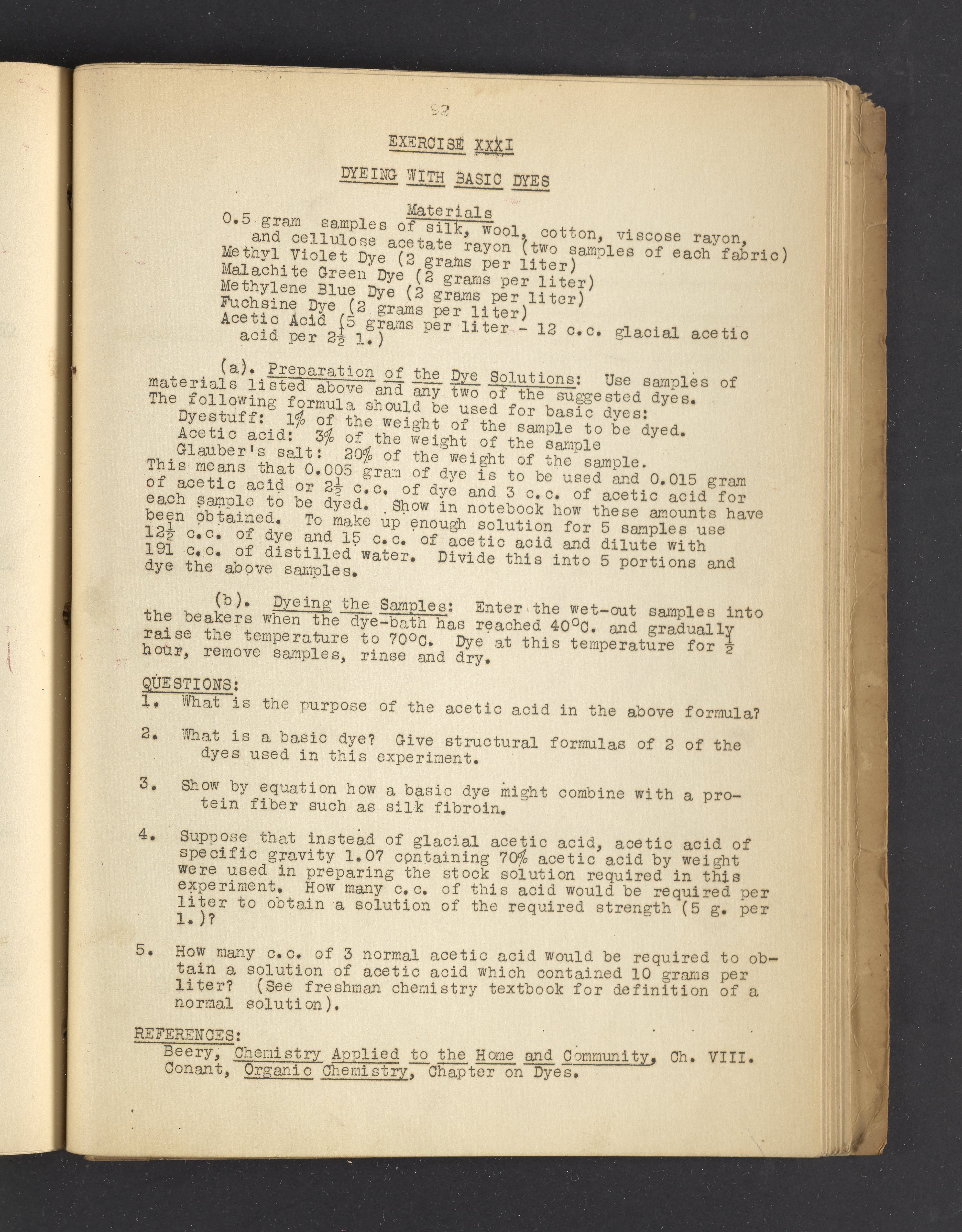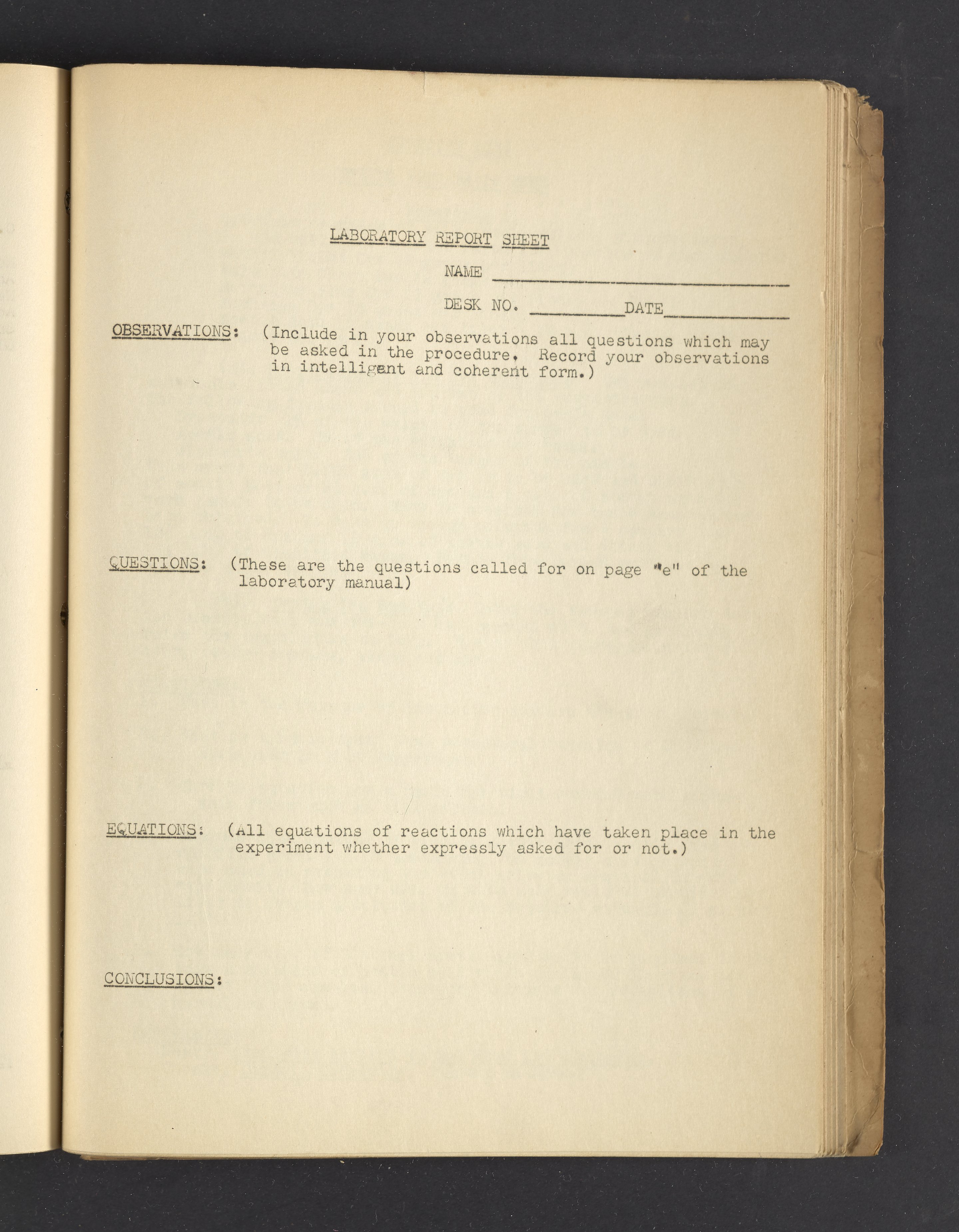 Laboratory exercises for Household and Organic Chemistry course at Pennsylvania State University