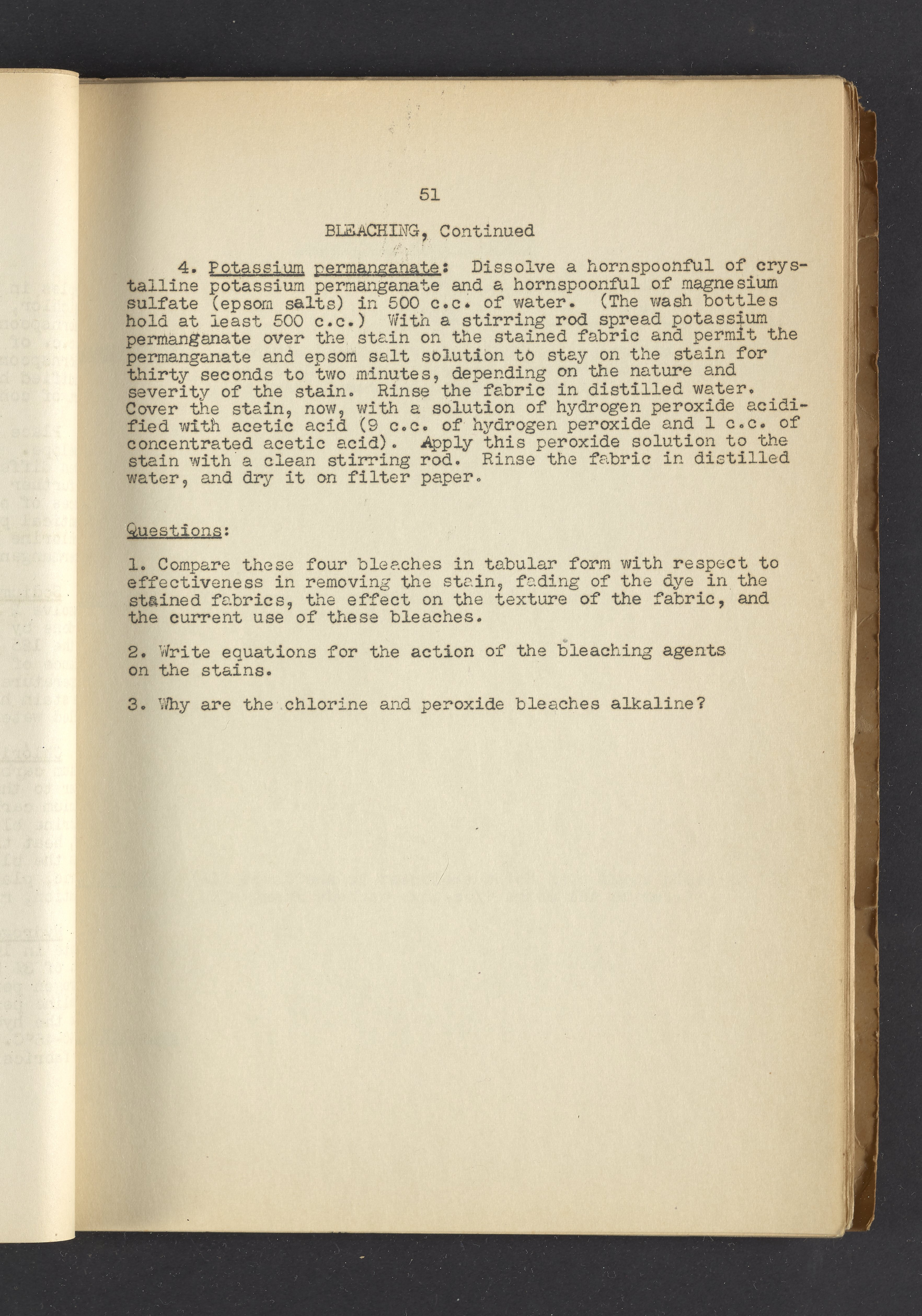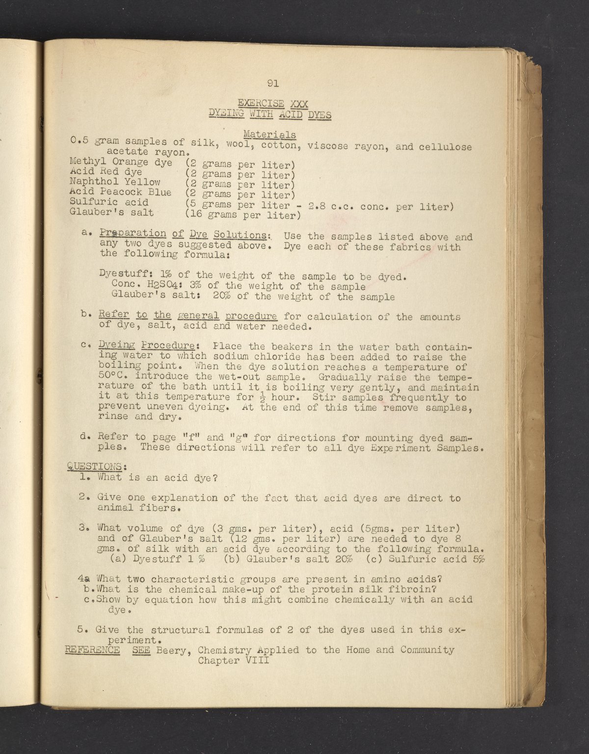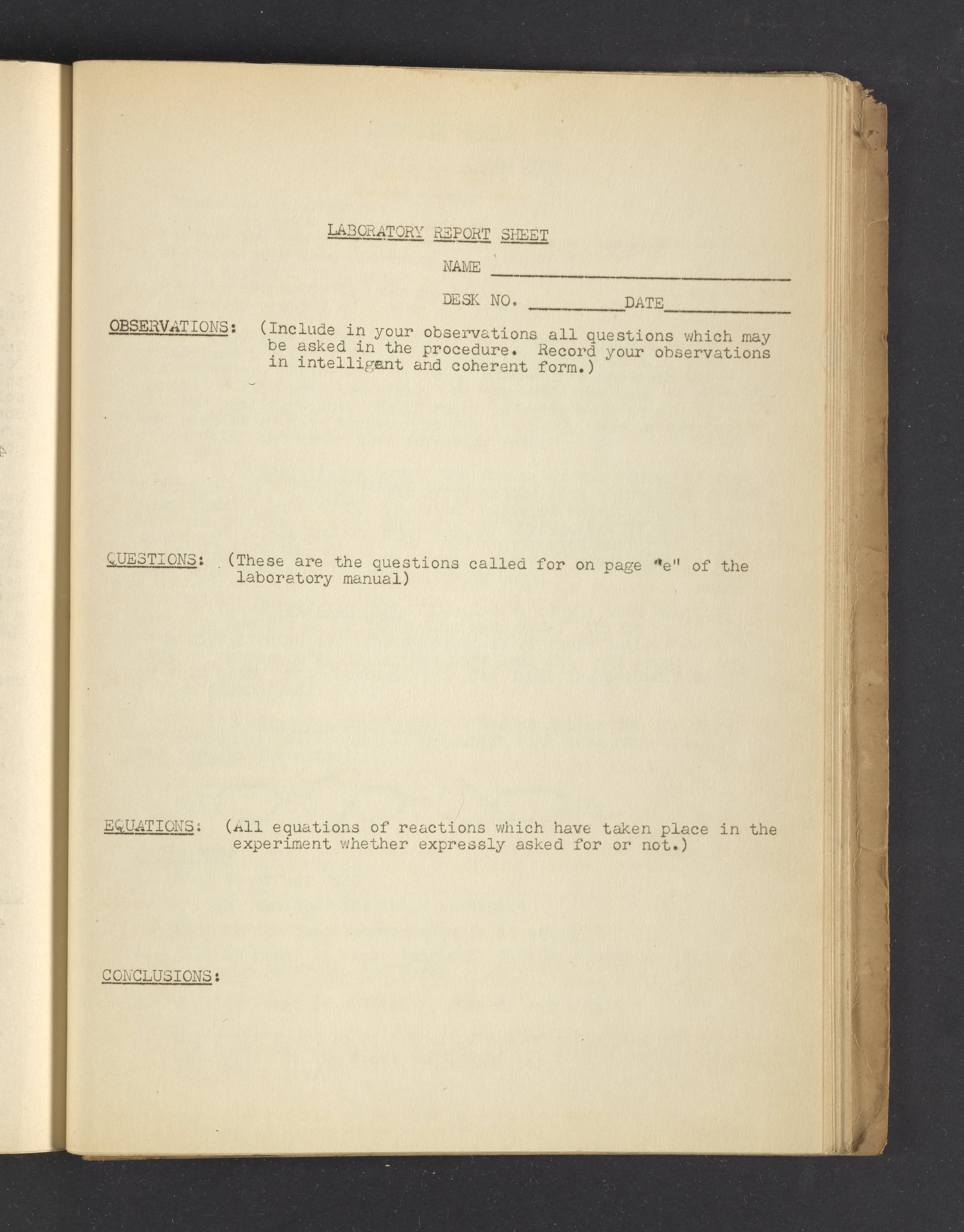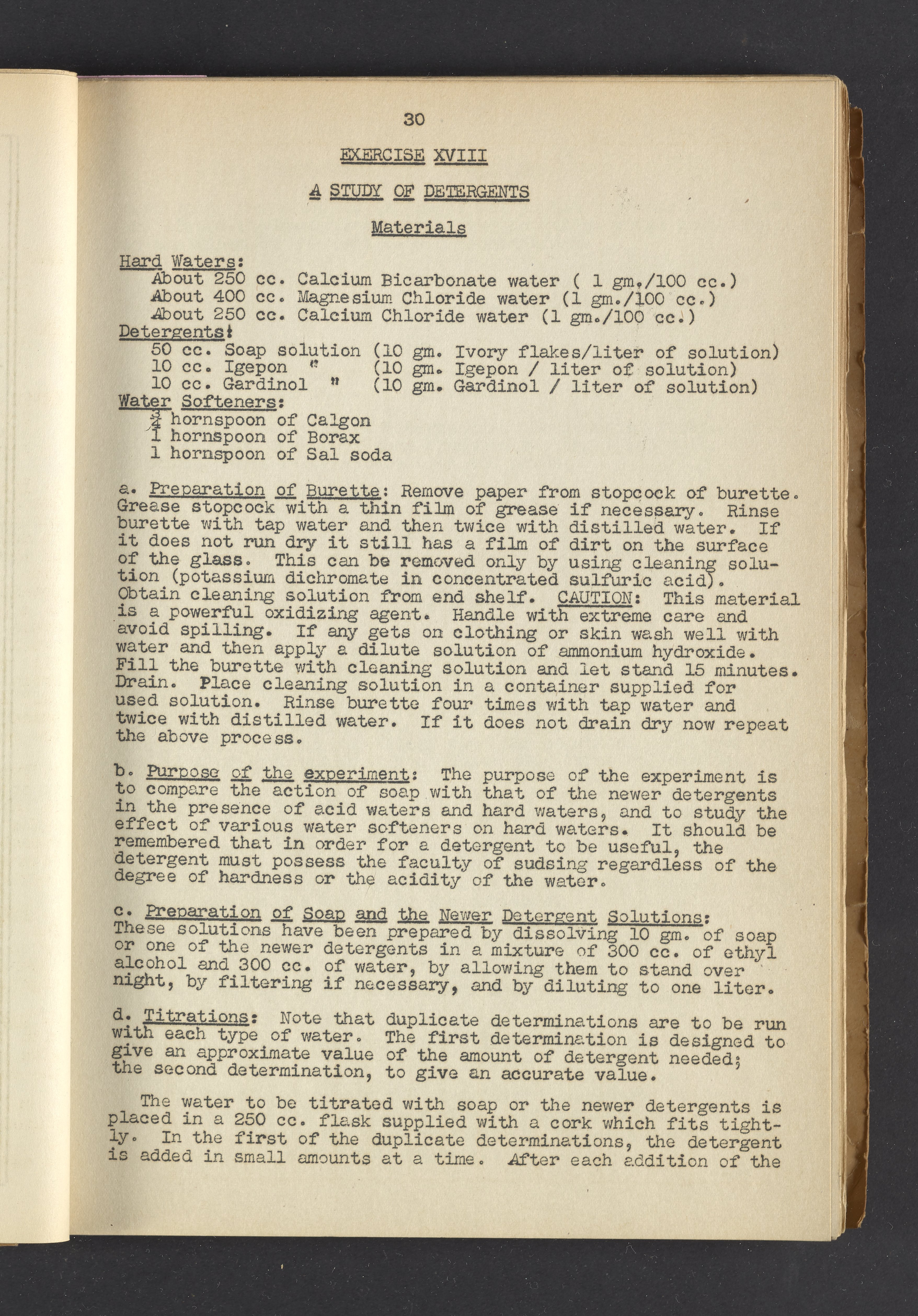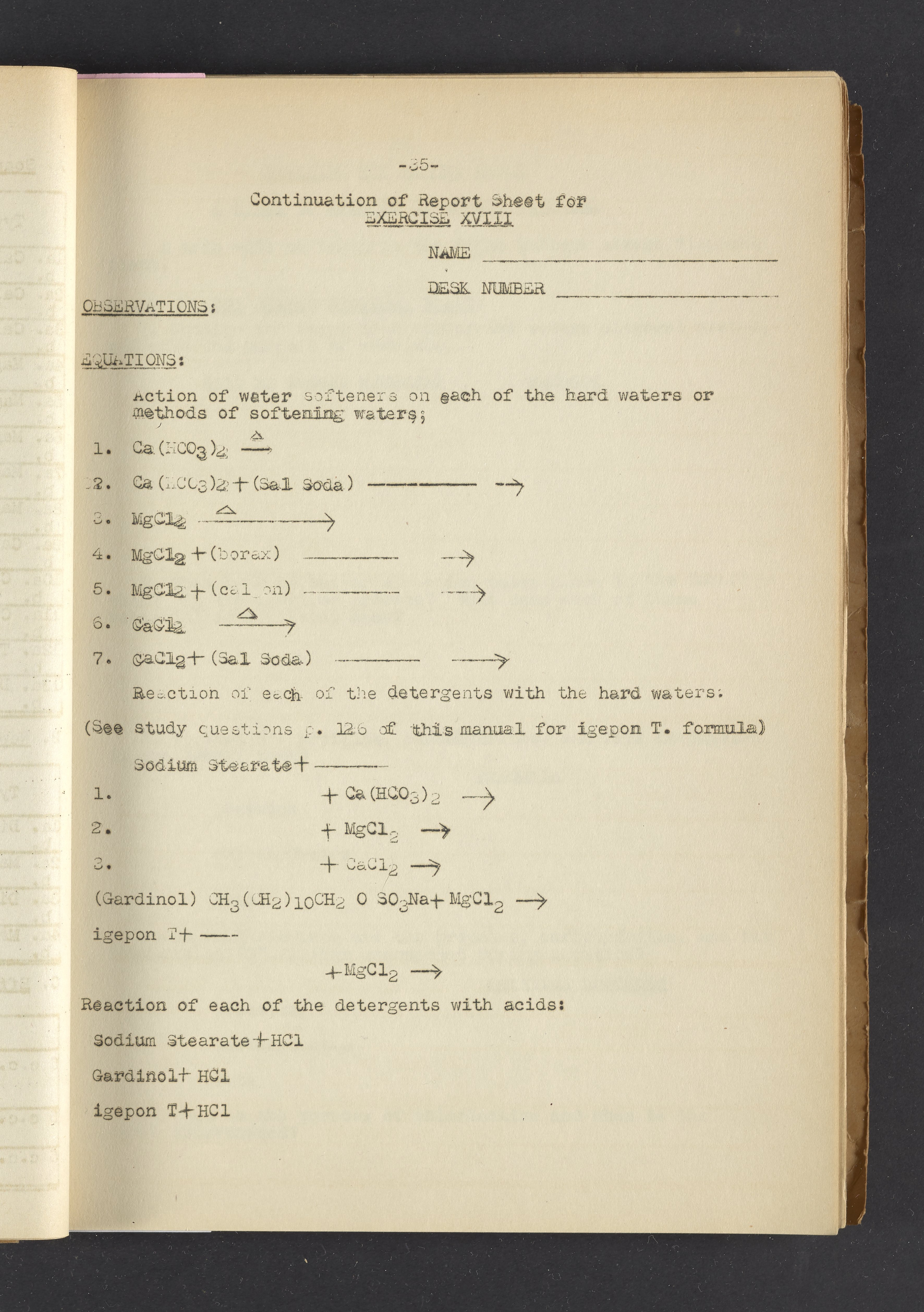 Laboratory exercises for Household and Organic Chemistry course at Pennsylvania State University