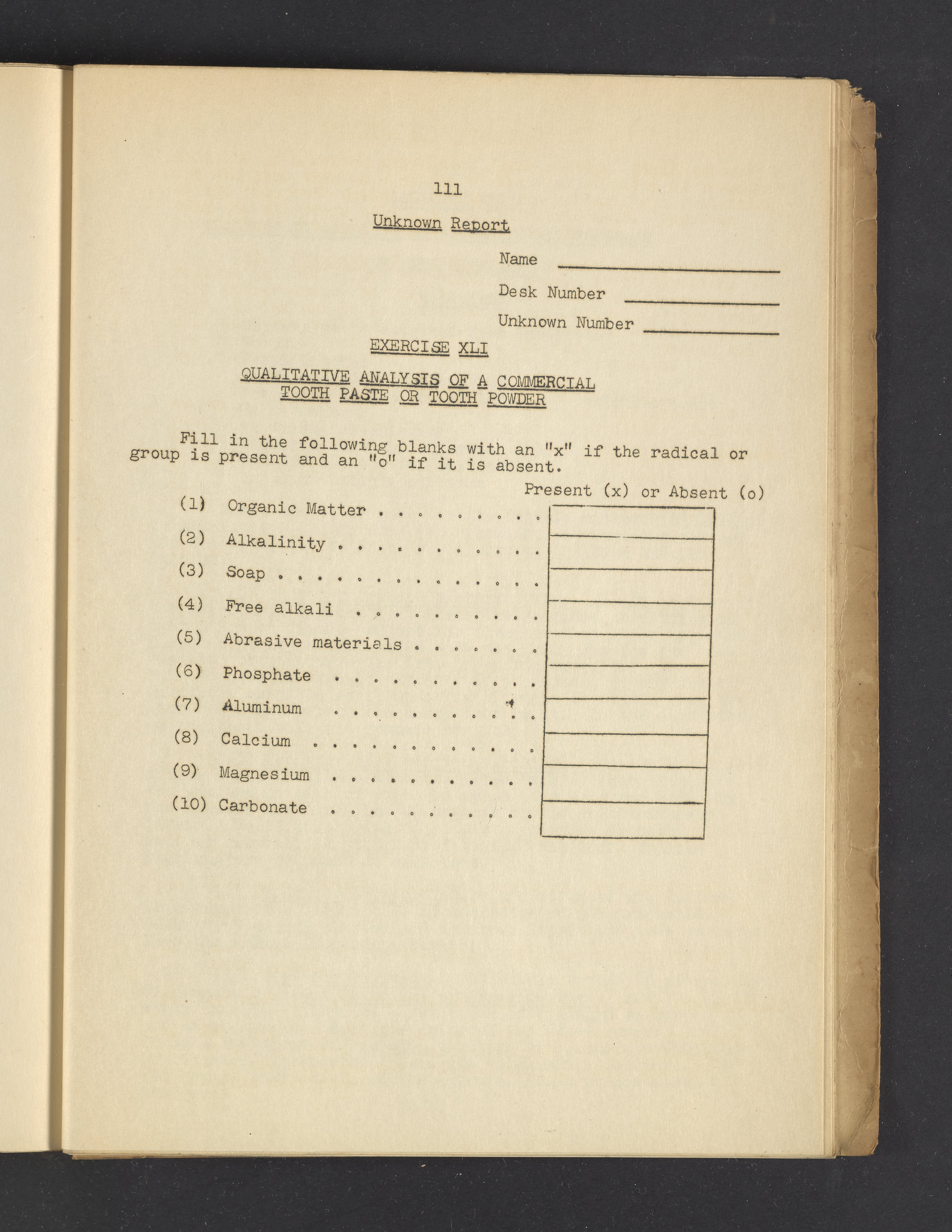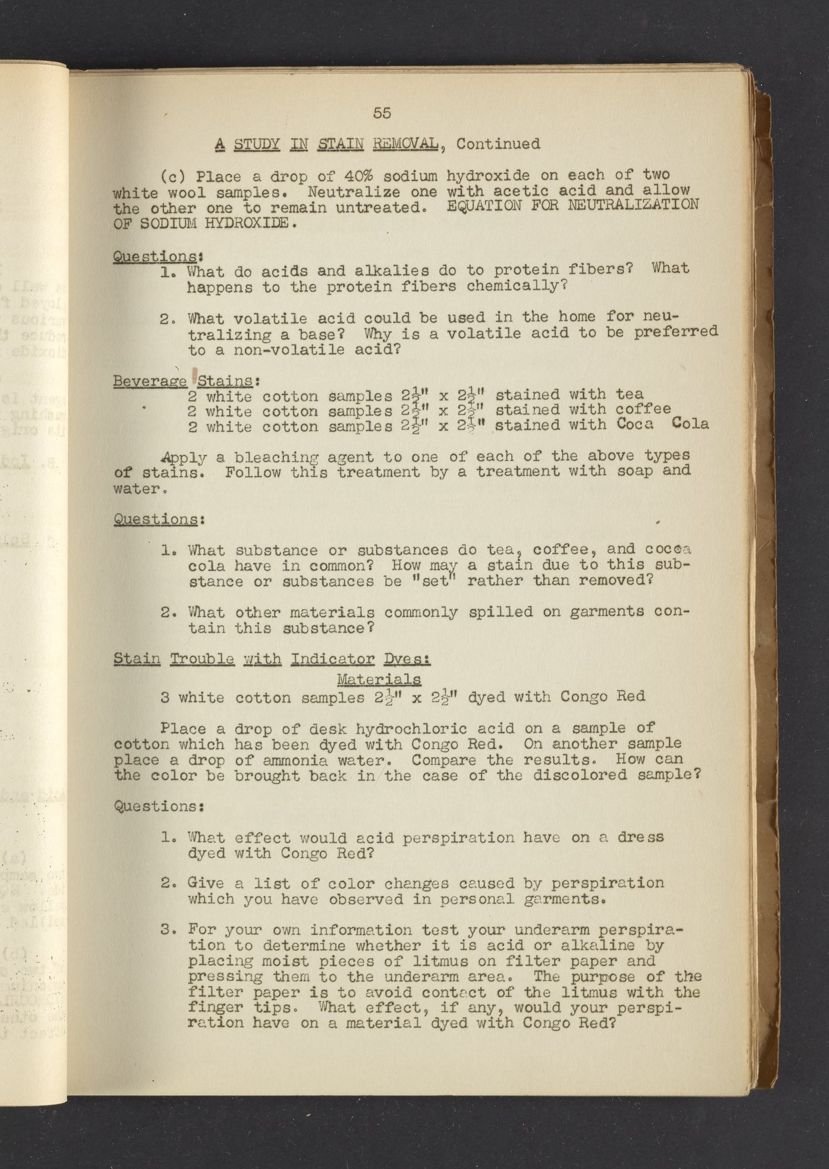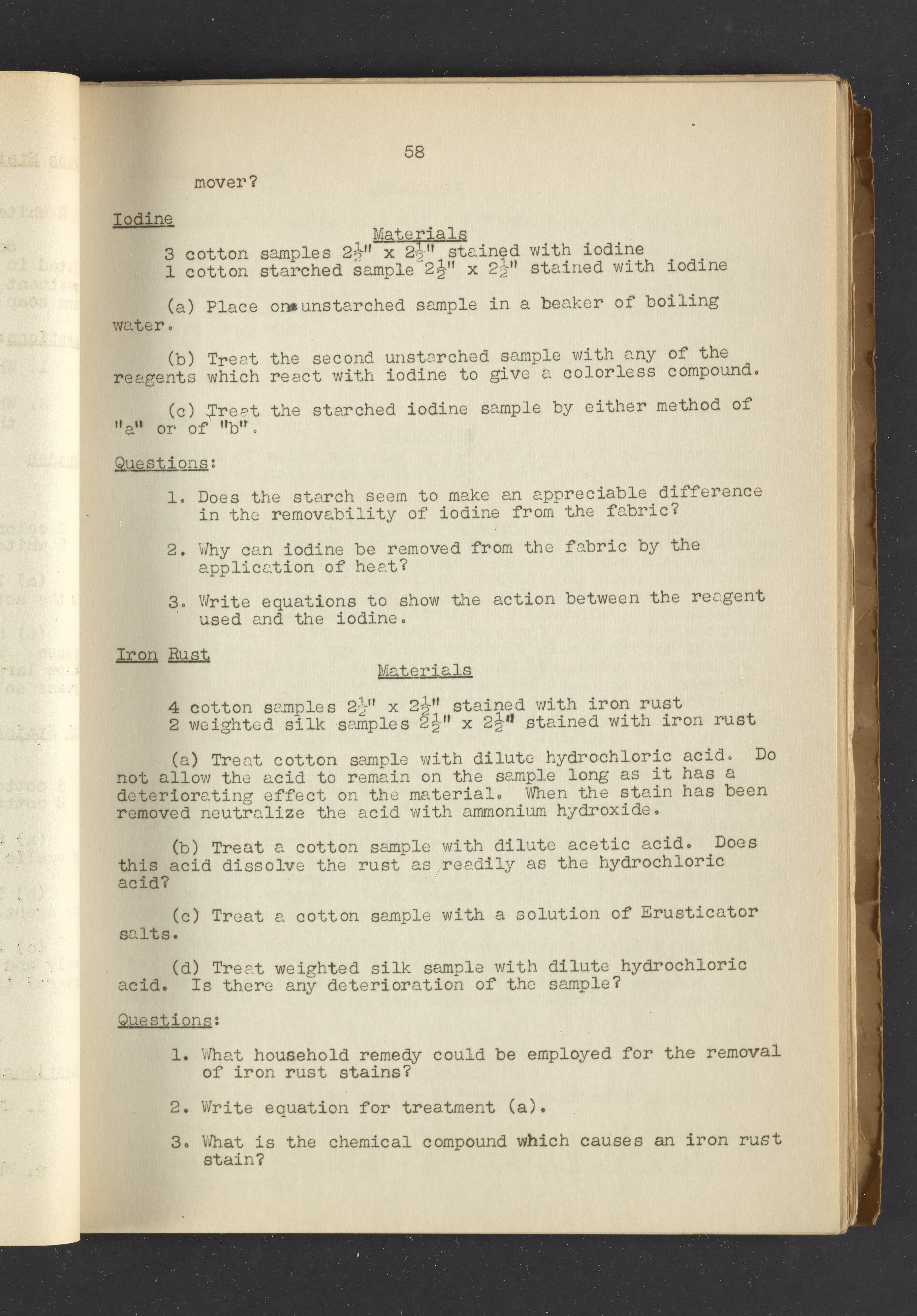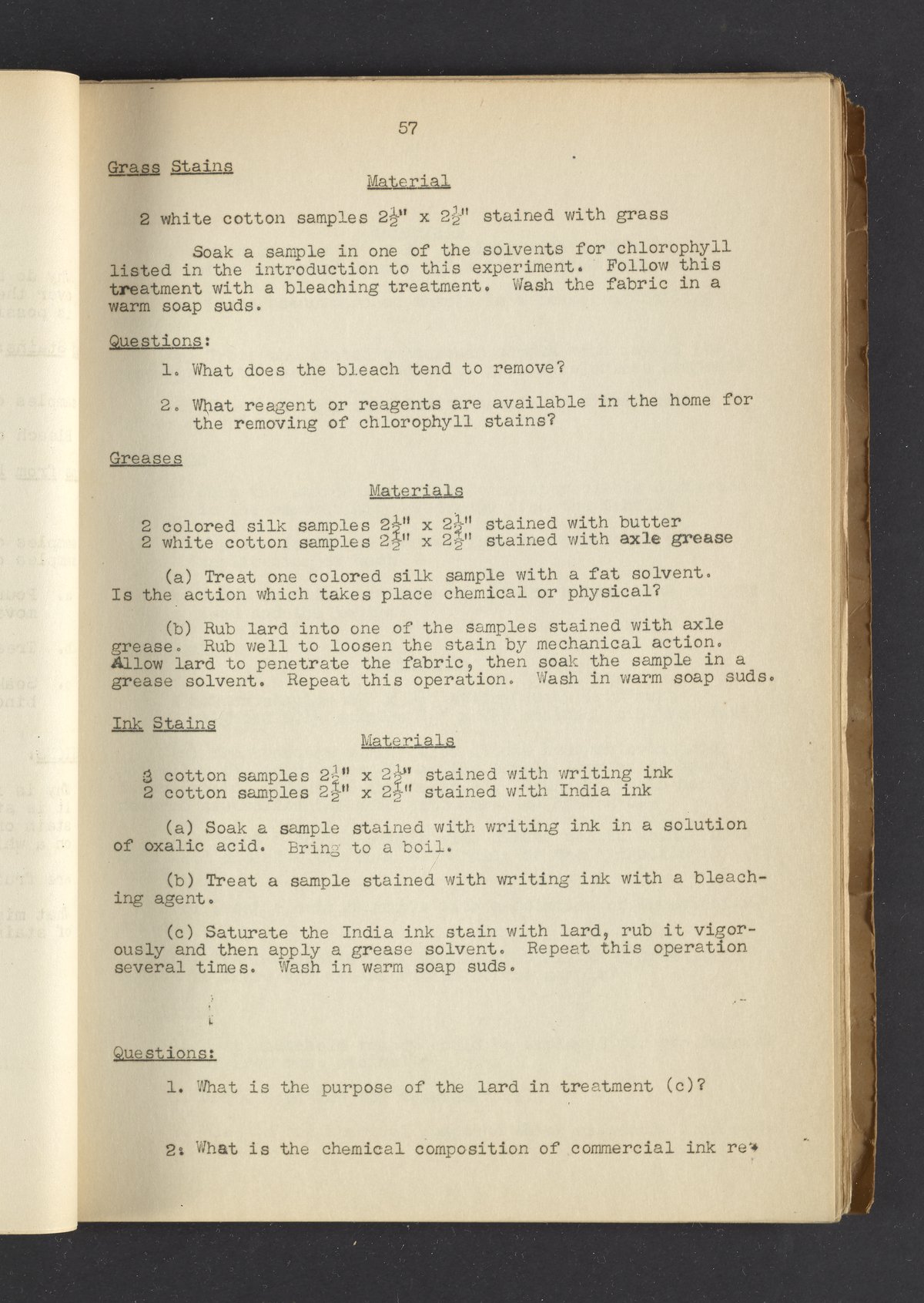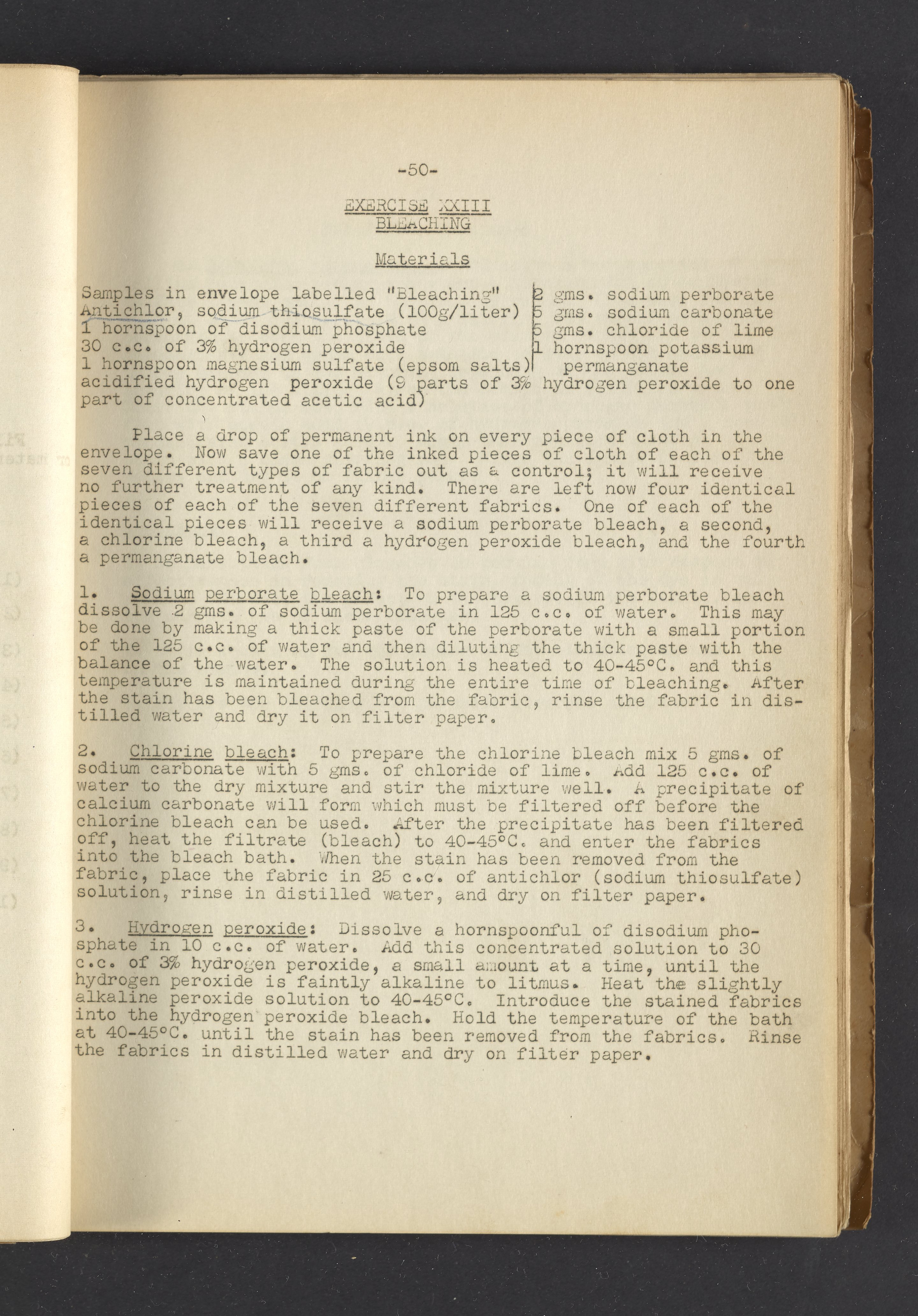Laboratory exercises for Household and Organic Chemistry course at Pennsylvania State University