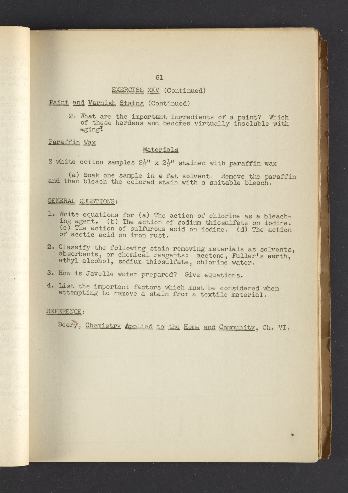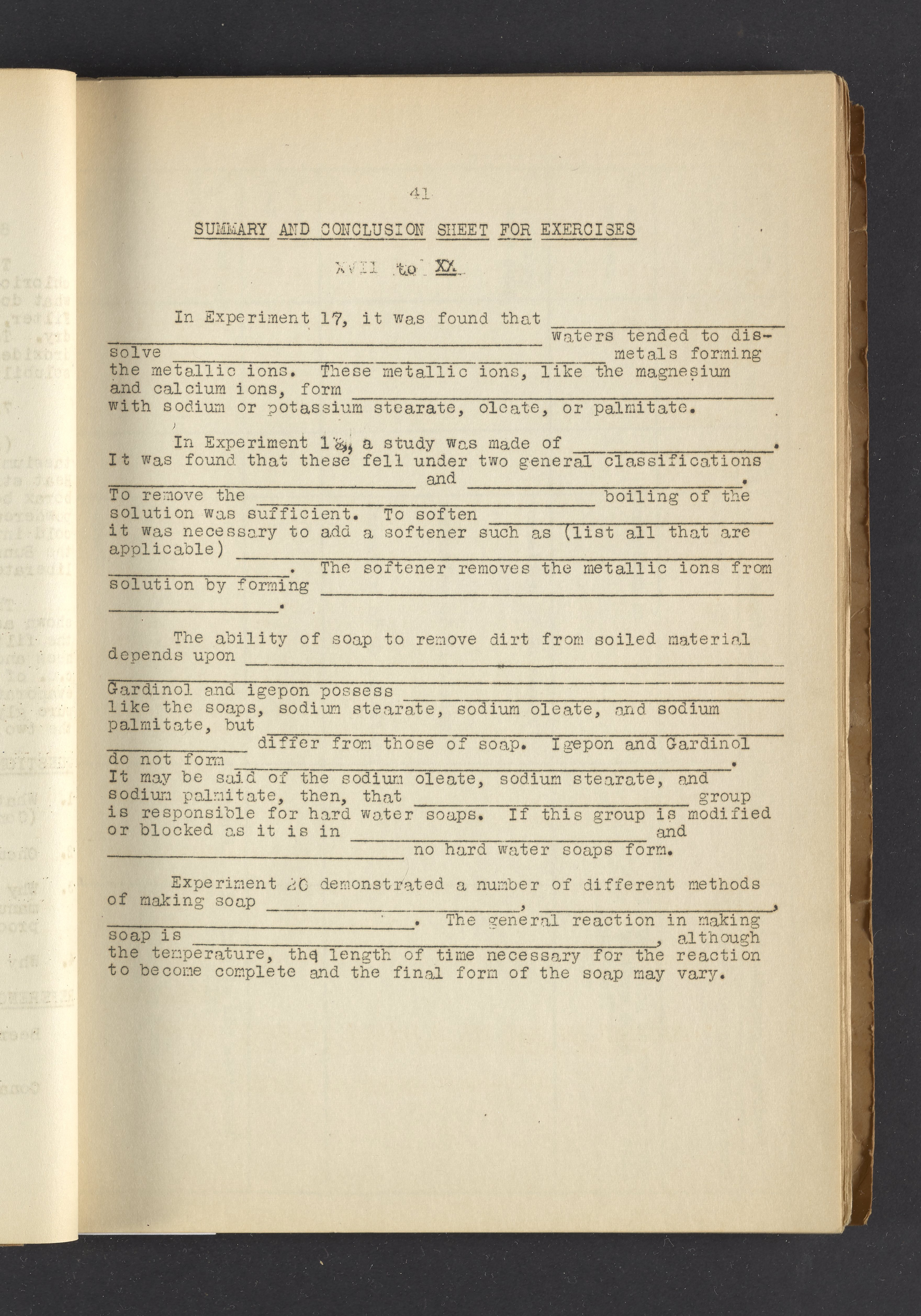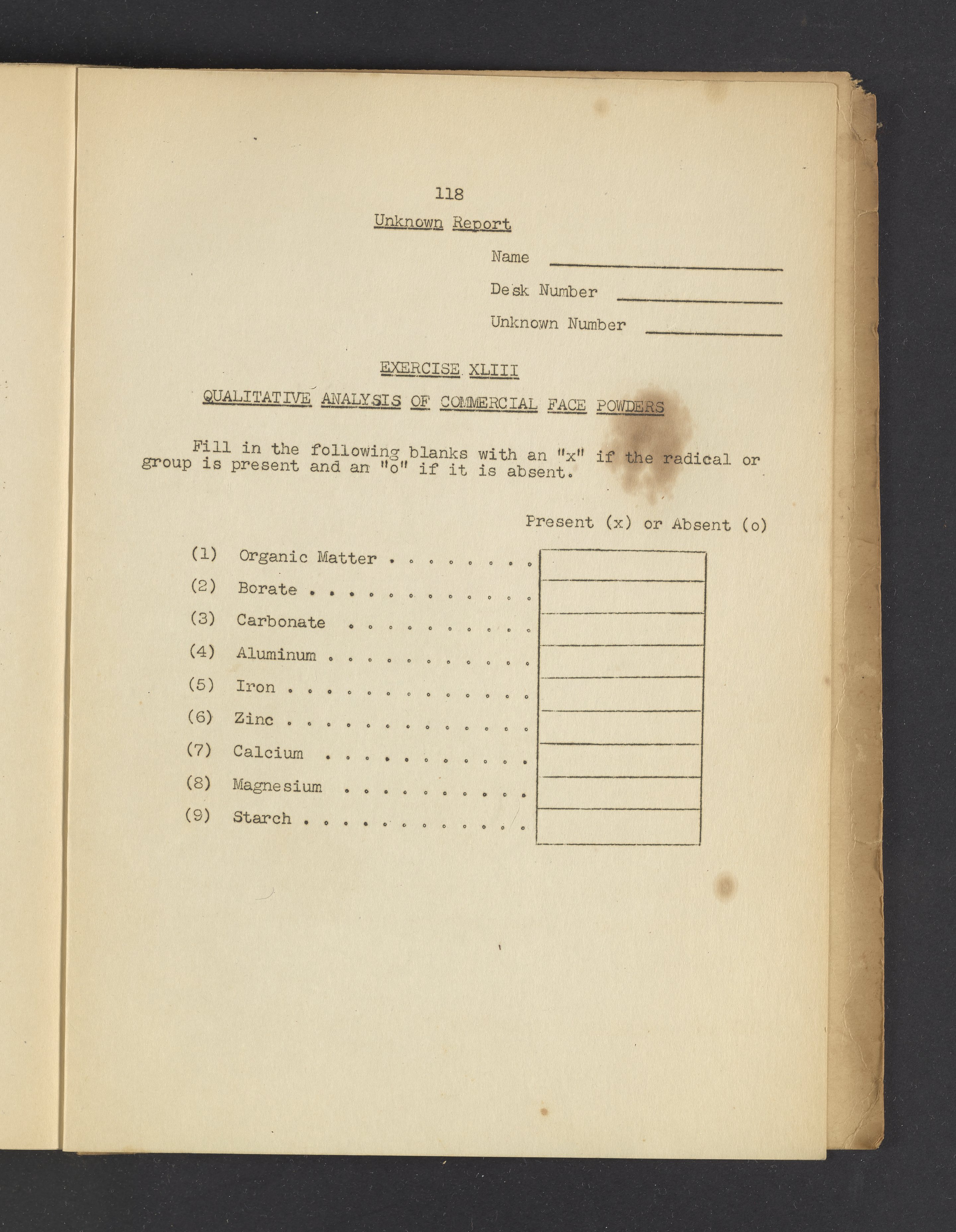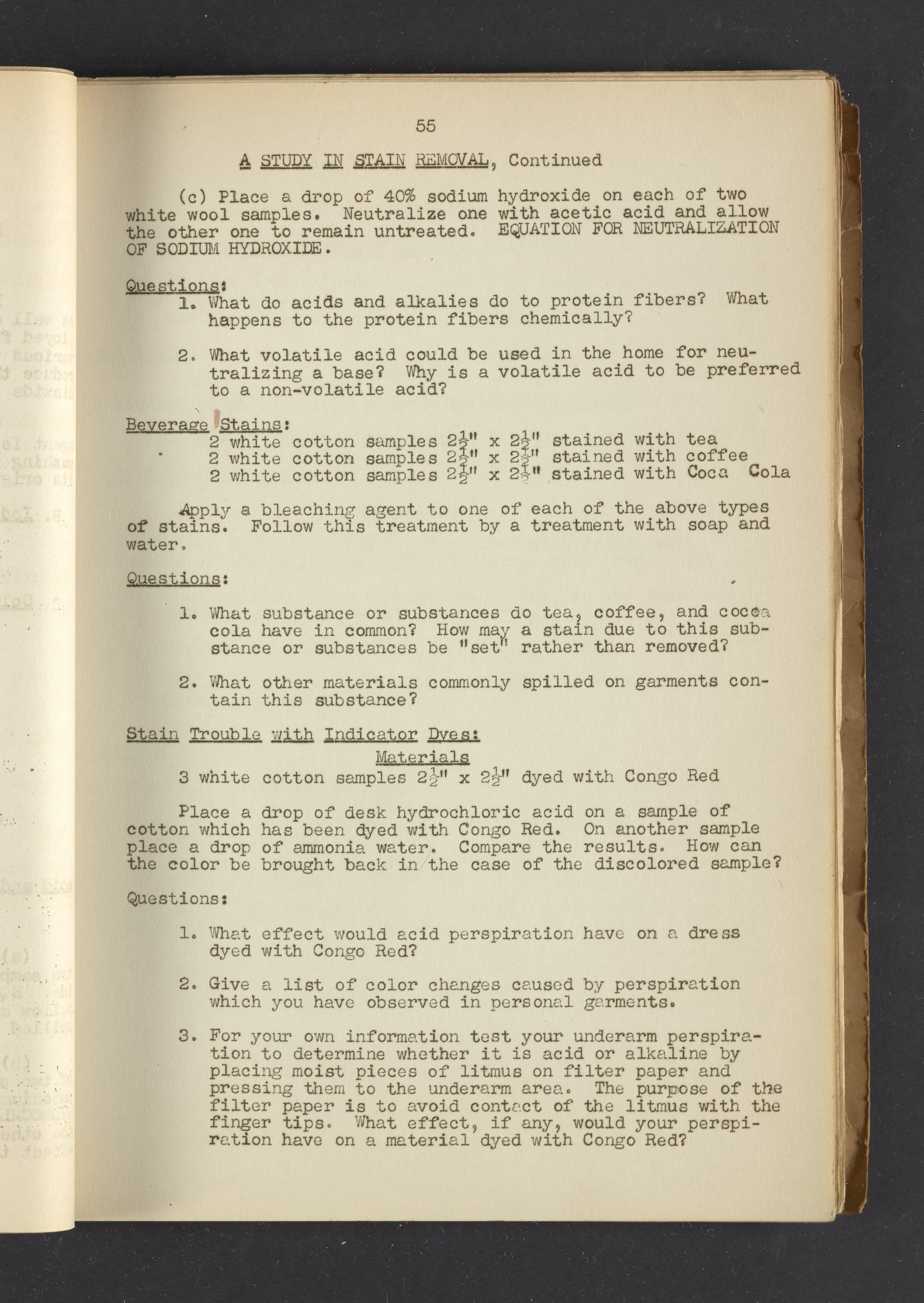 Laboratory exercises for Household and Organic Chemistry course at Pennsylvania State University