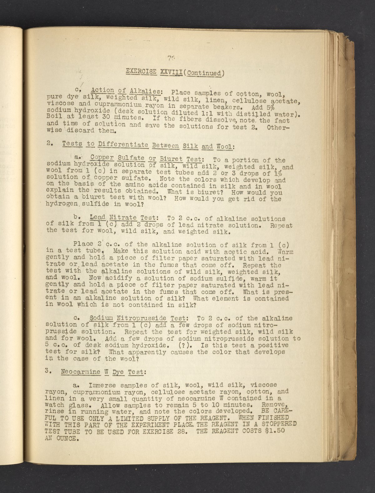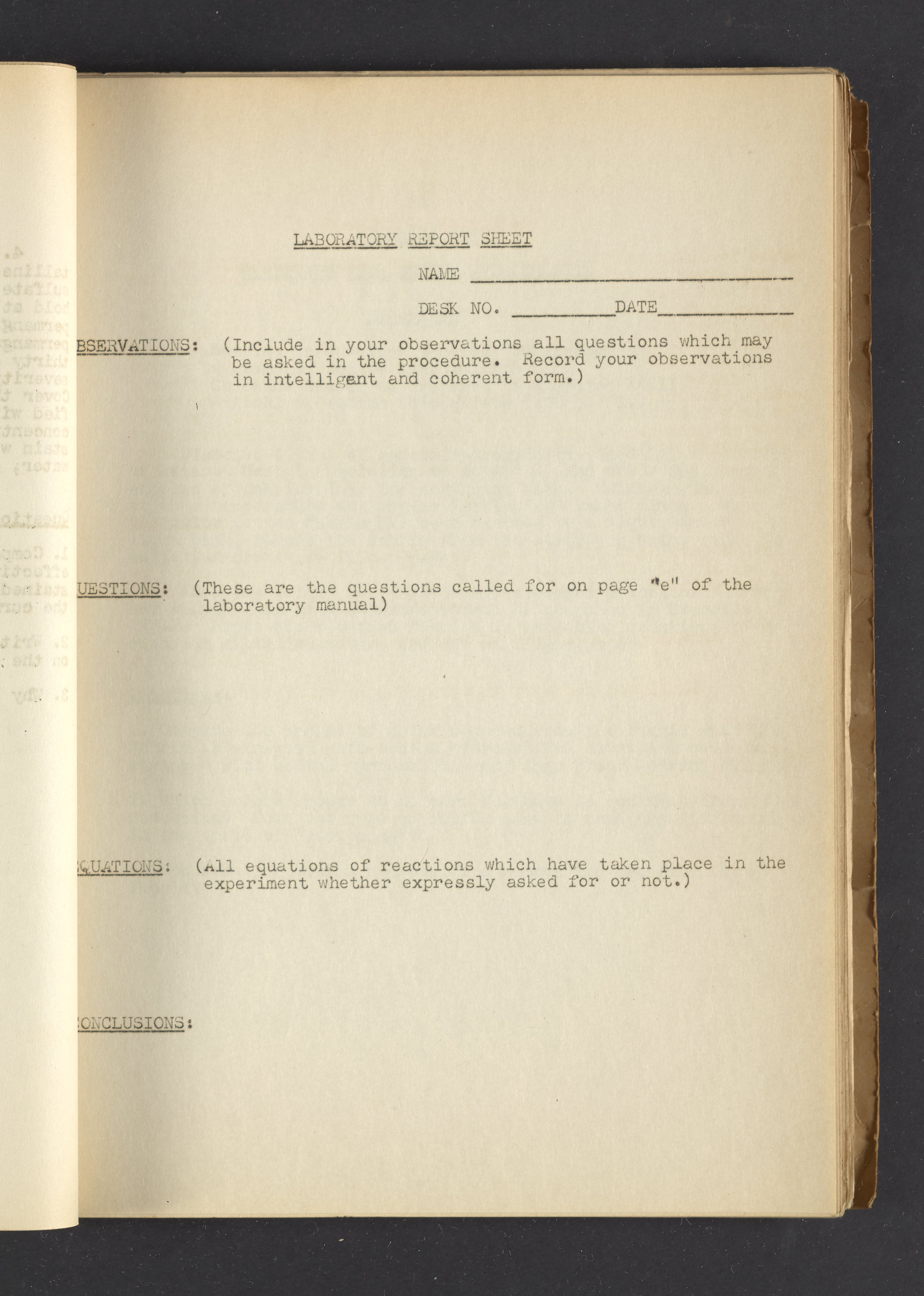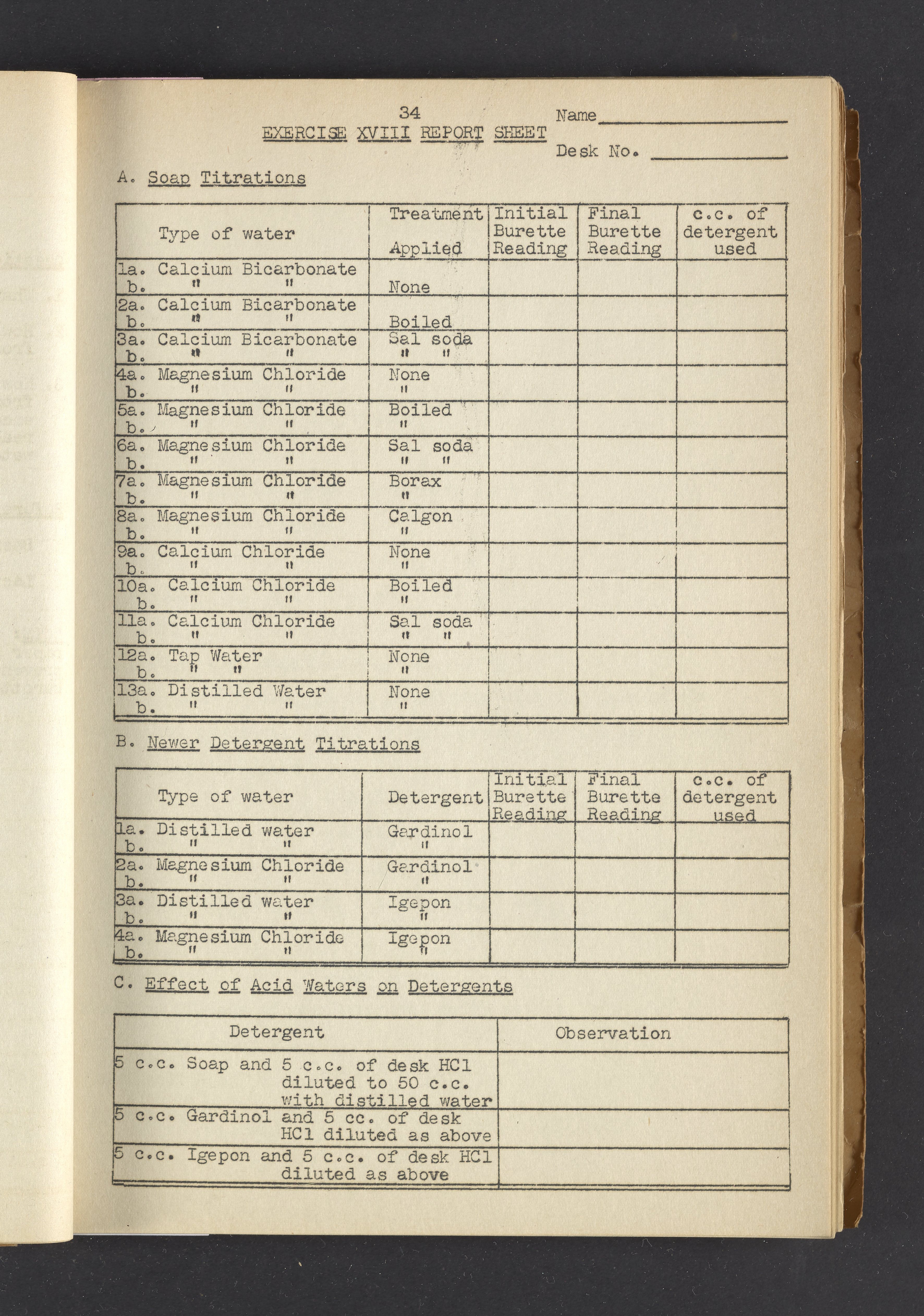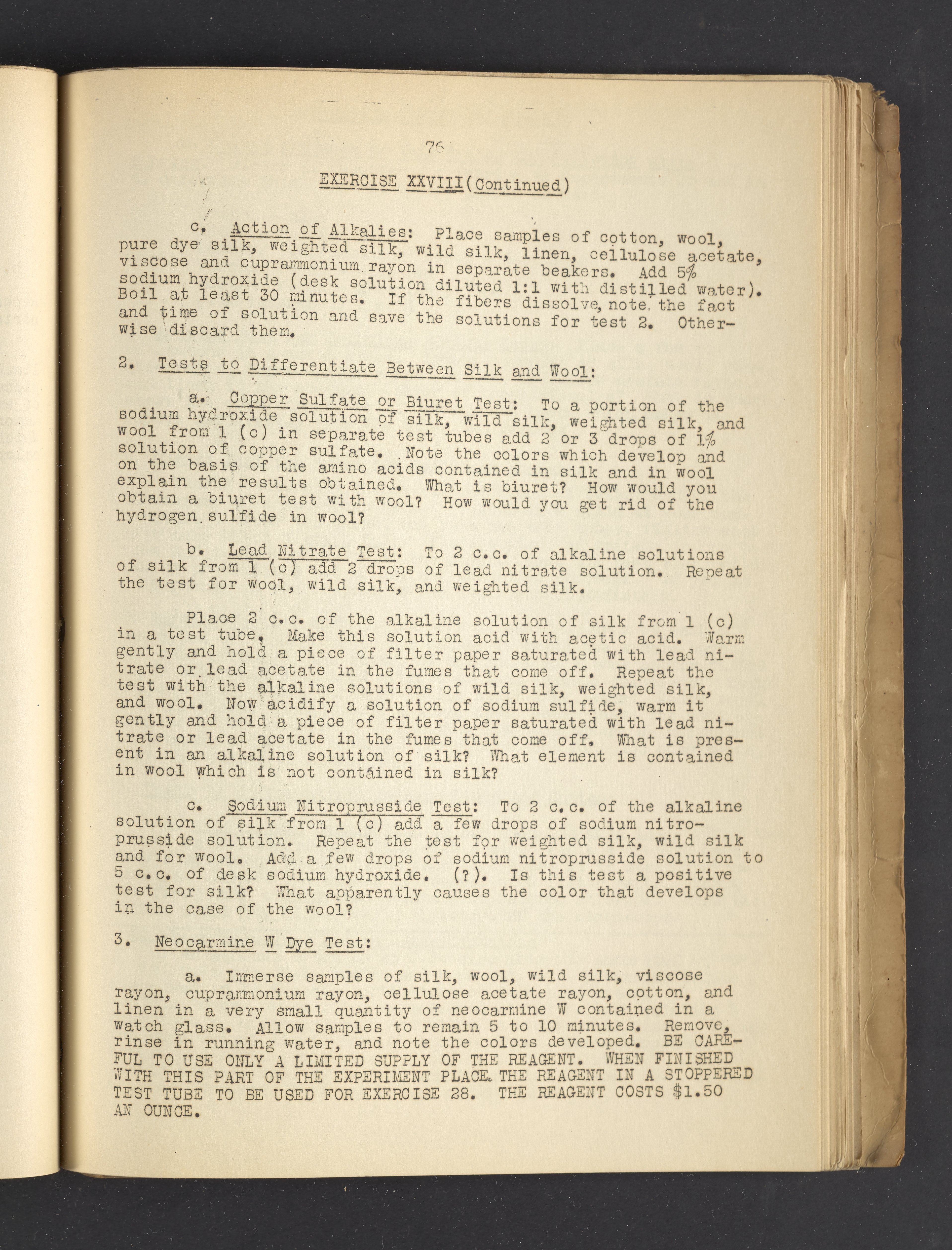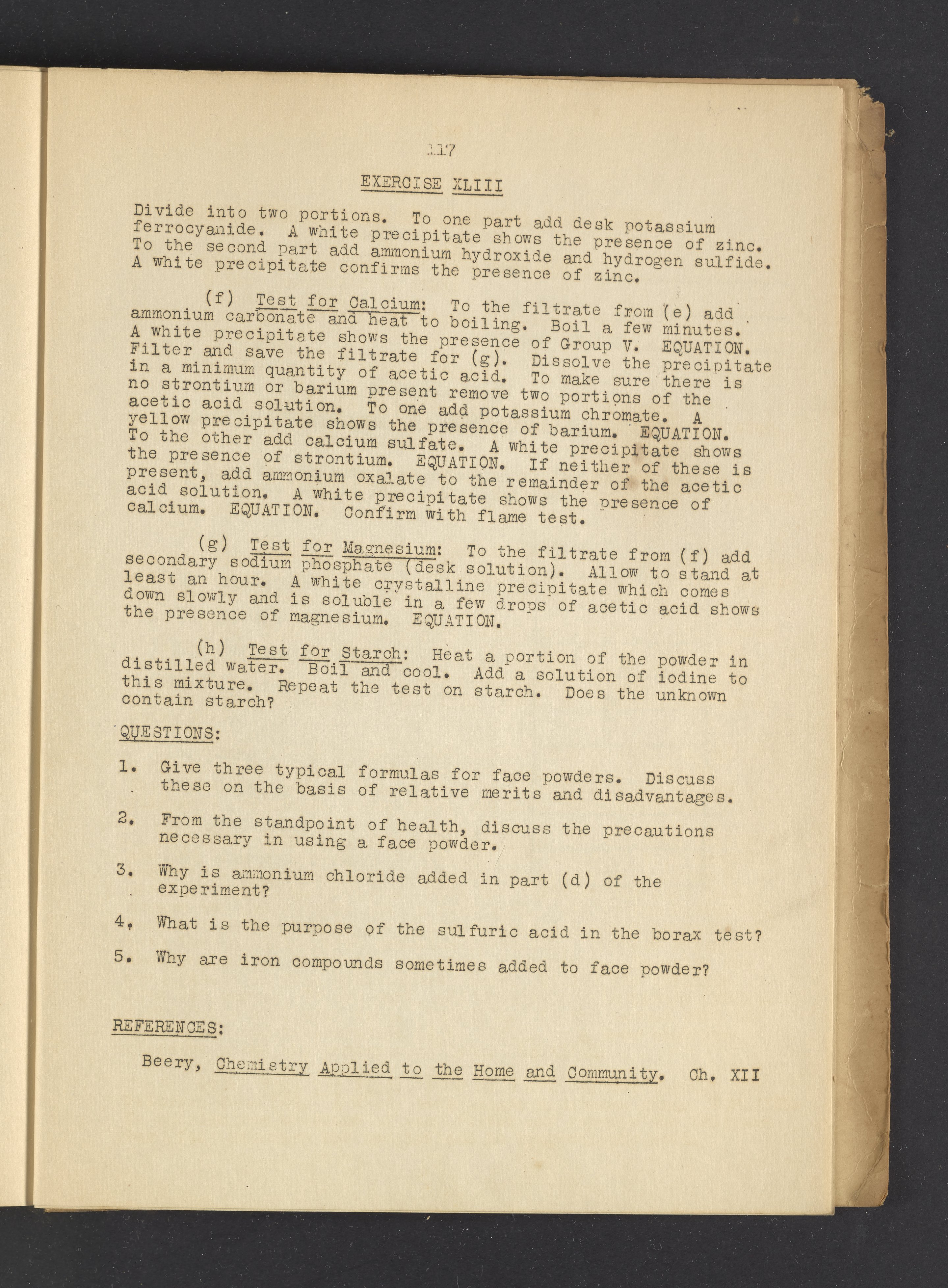 Laboratory exercises for Household and Organic Chemistry course at Pennsylvania State University