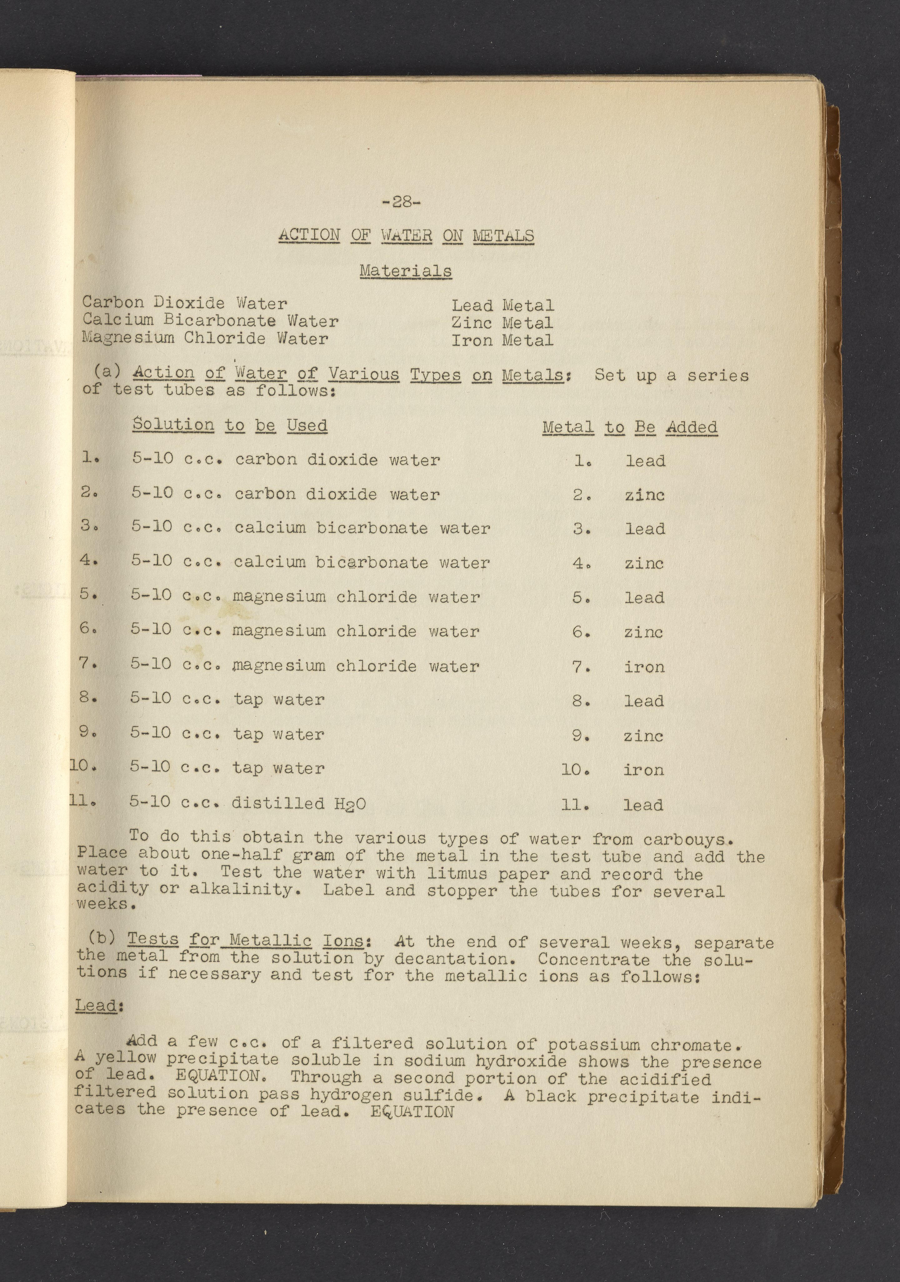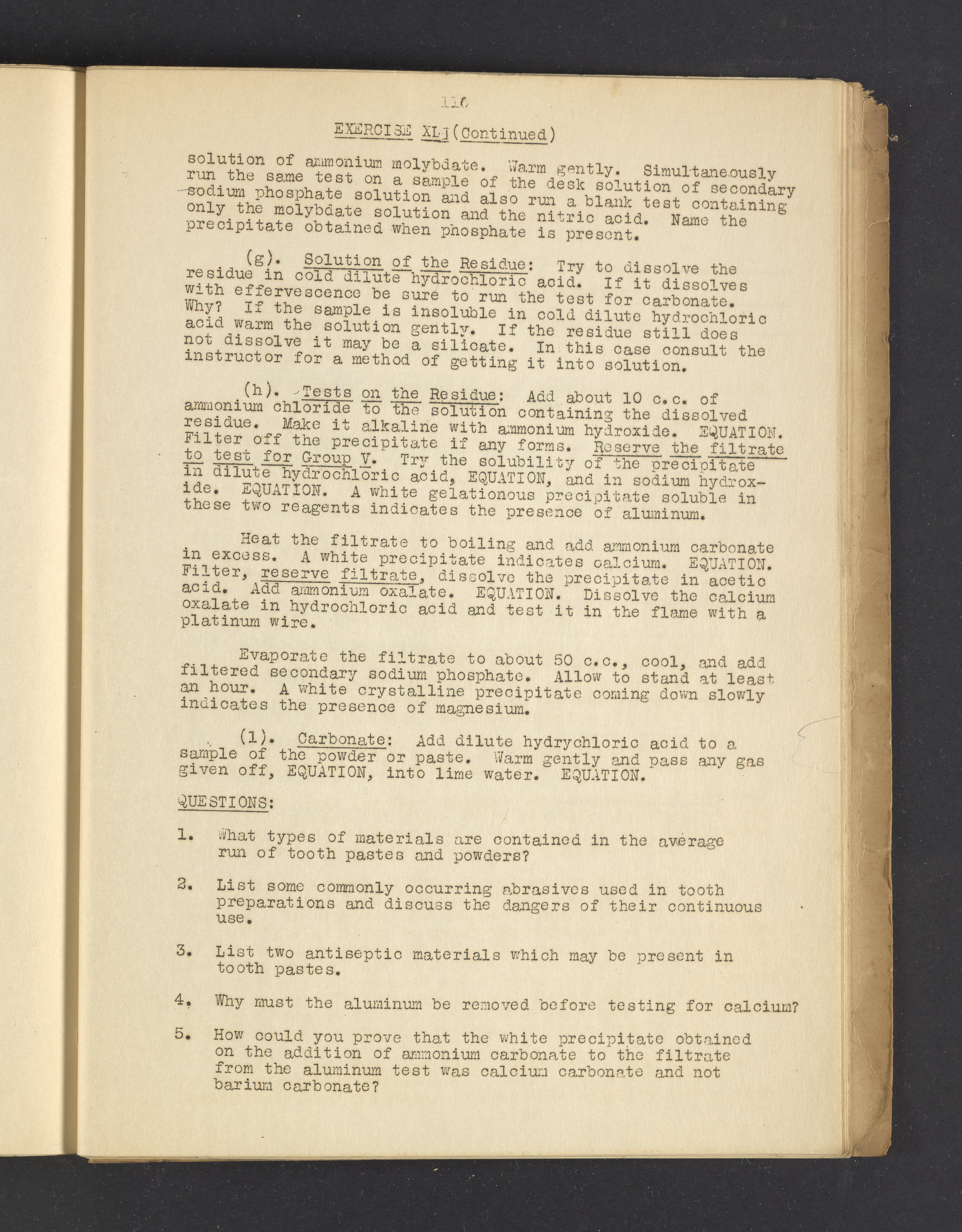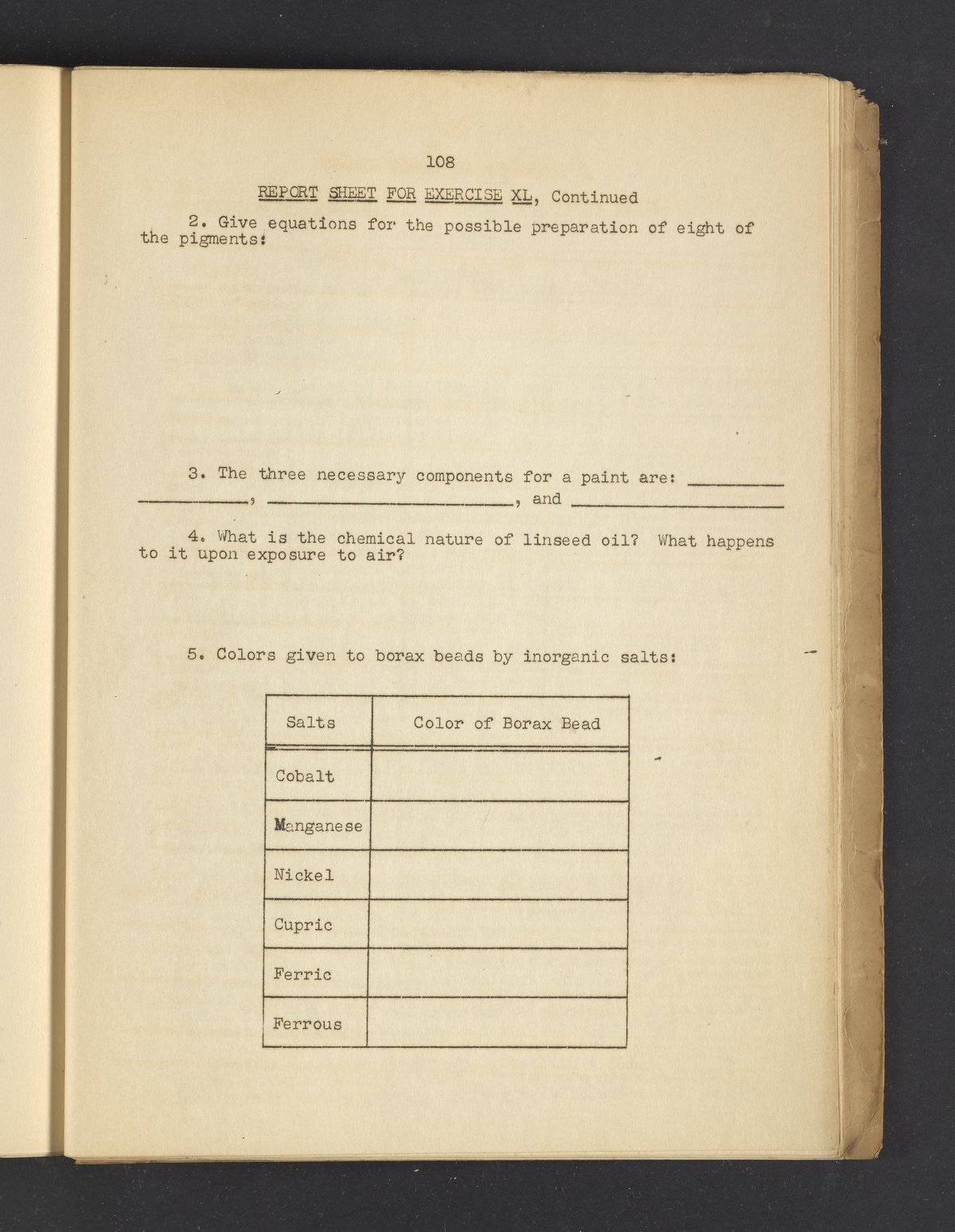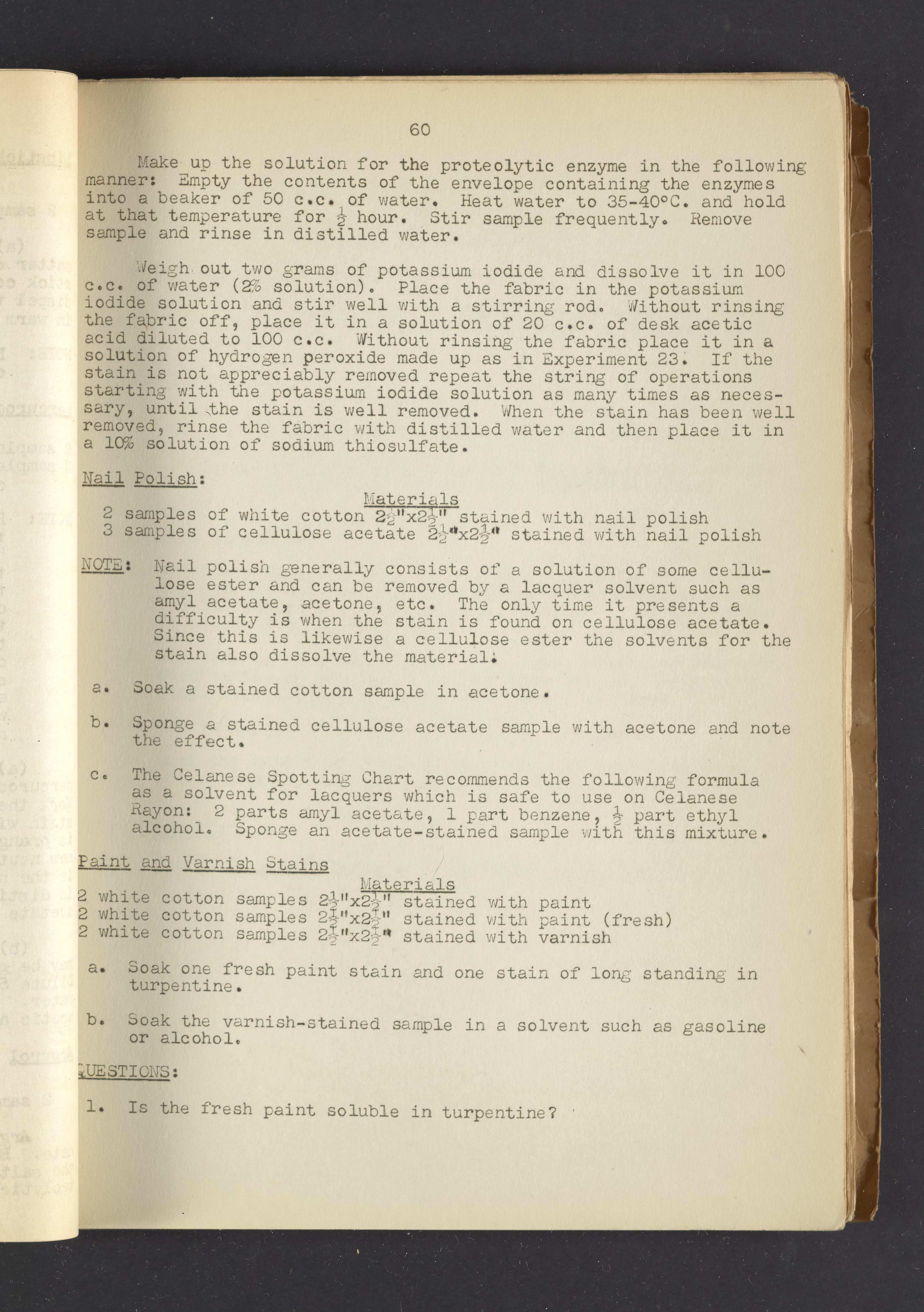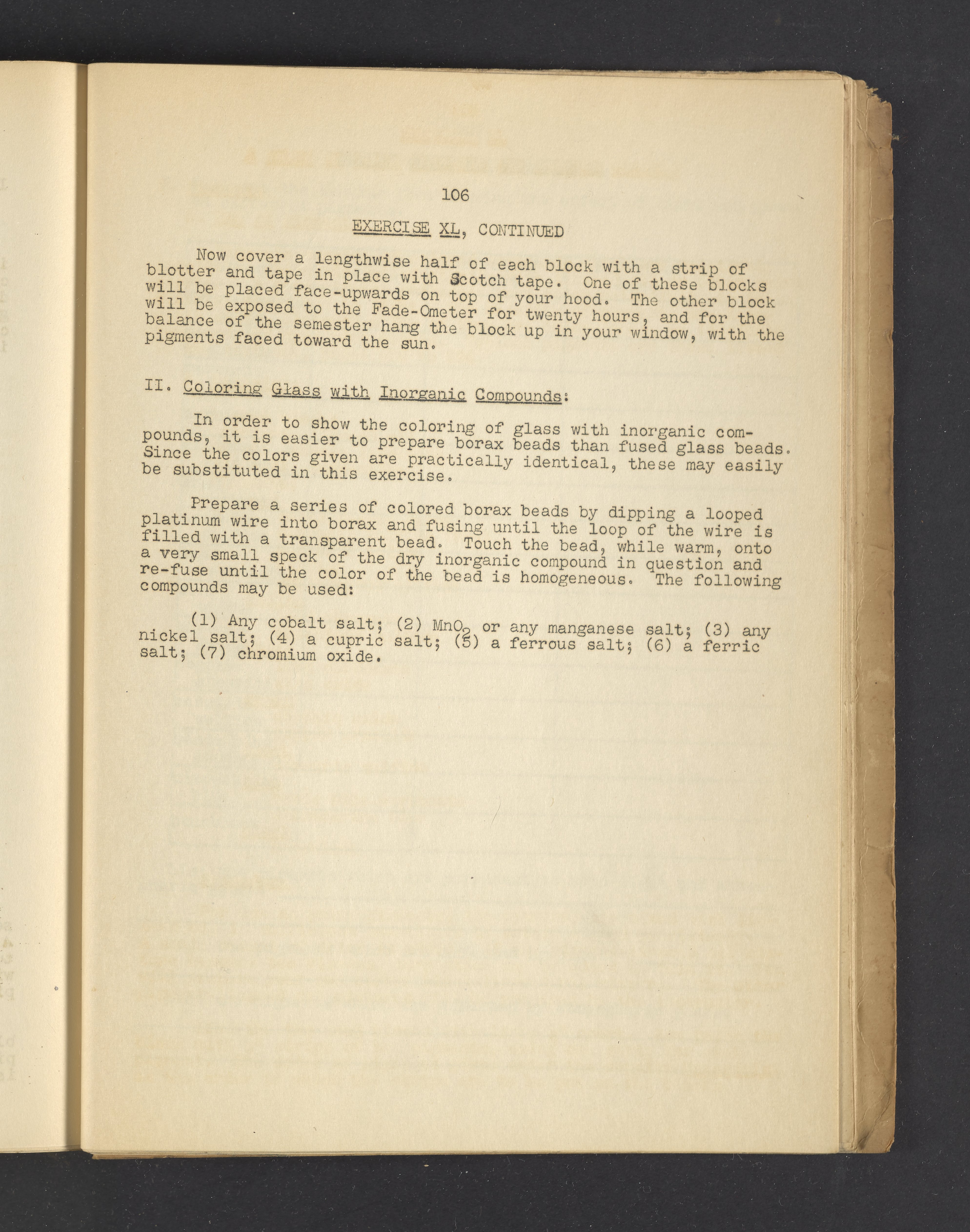 Laboratory exercises for Household and Organic Chemistry course at Pennsylvania State University